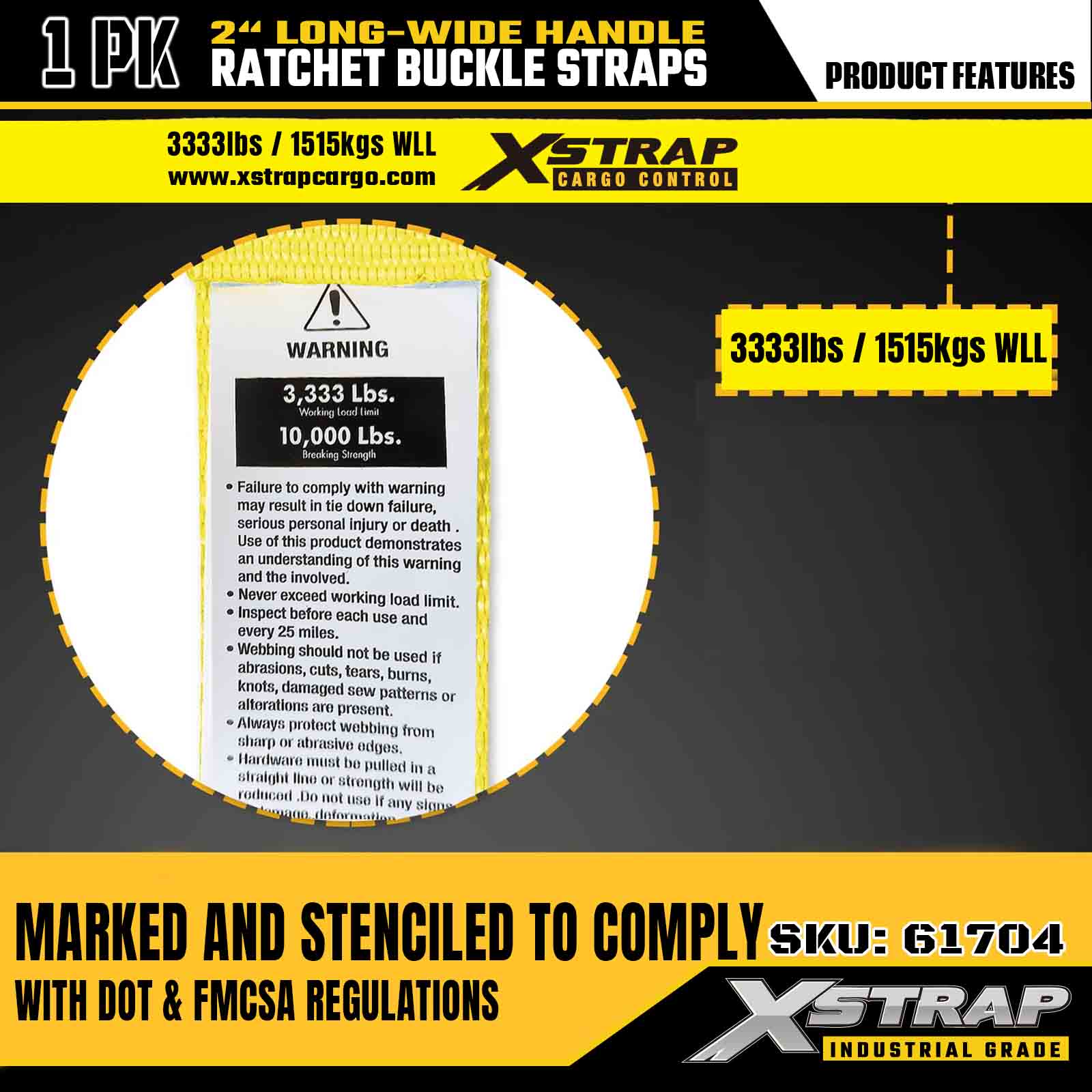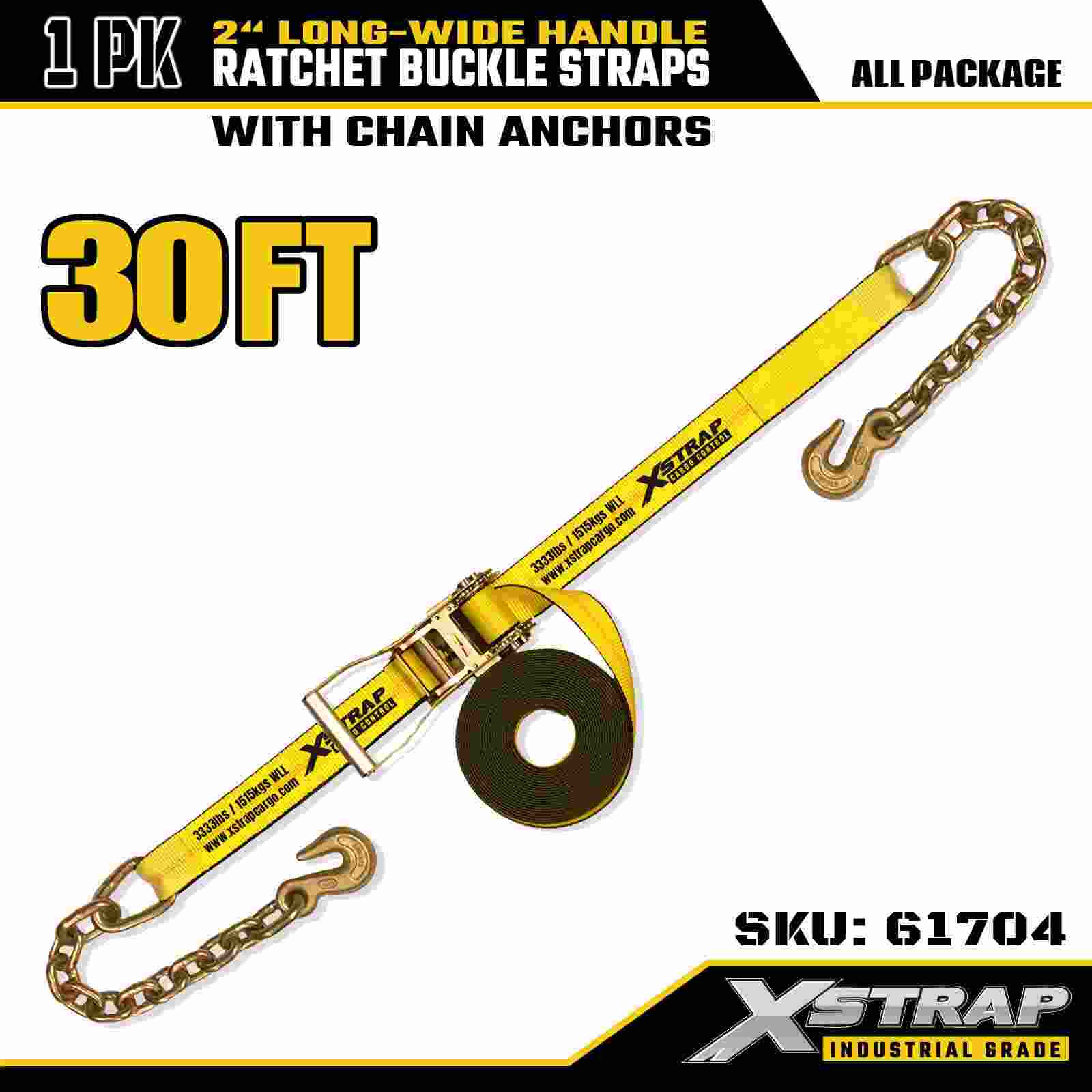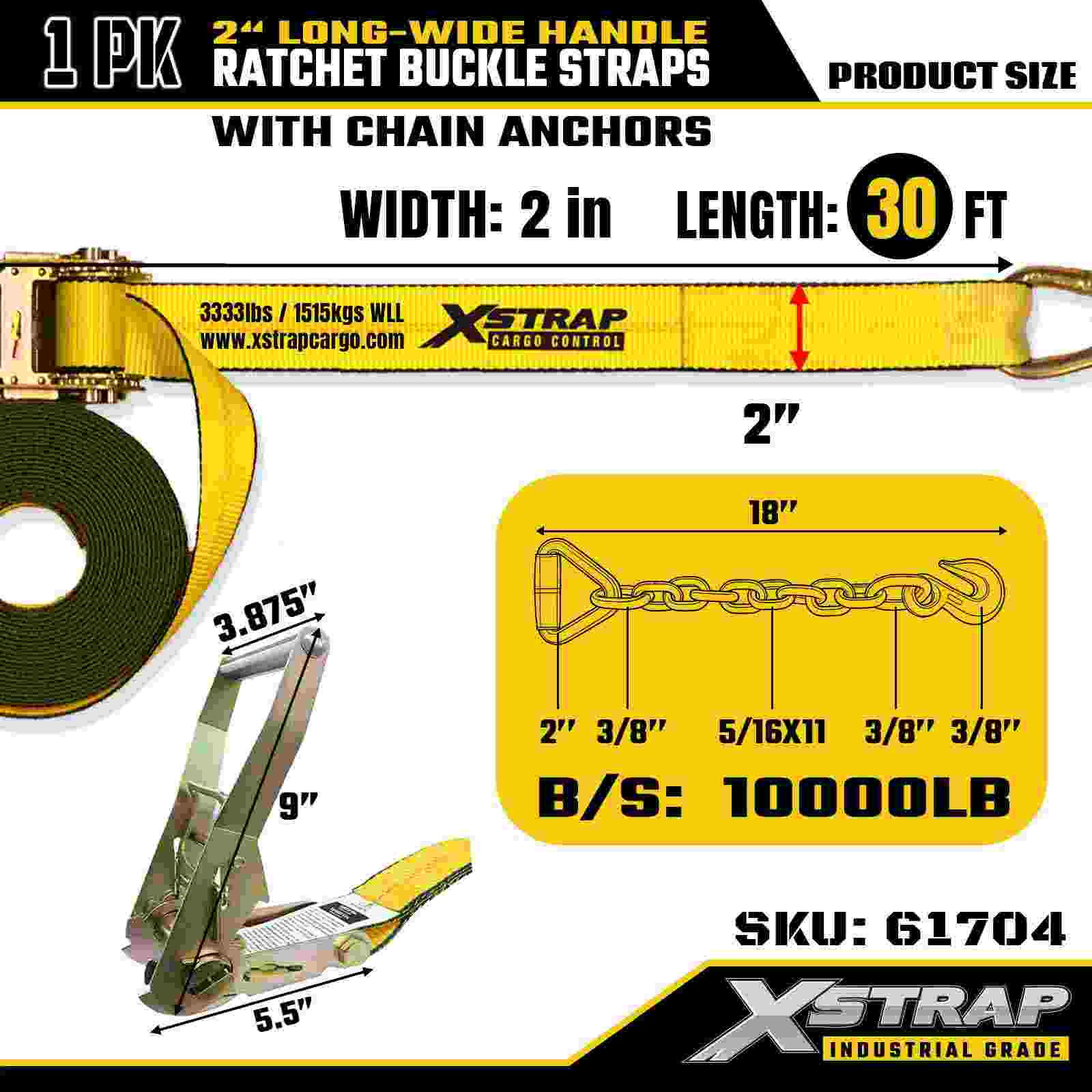 เอ็กซ์สแตรป 61704 สายรัดหัวเข็มขัดวงล้อแบบด้ามจับกว้างยาว 2 "x 30 ฟุต (1 แพ็ค) – ตะขอโซ่, ความแข็งแรงในการแตกหัก 10,000 ปอนด์, สายรัดแบบผูกลงสำหรับงานหนักสำหรับการขนส่งสินค้าและอุปกรณ์