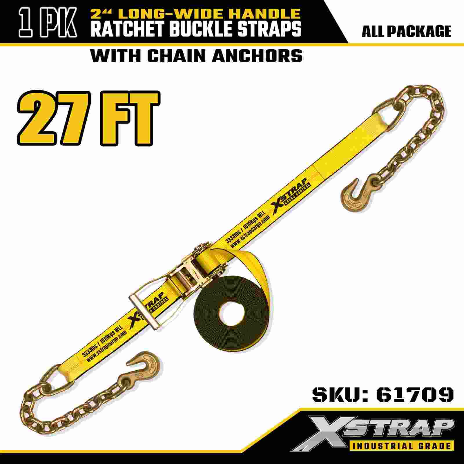 เอ็กซ์สแตรป 61709 สายรัดหัวเข็มขัดวงล้อด้ามจับกว้างยาว 2 "x 27 ฟุต (1 แพ็ค) ด้วย ตะขอโซ่, ความแข็งแรงในการแตกหัก 10,000 ปอนด์, สายรัดแบบผูกสำหรับงานหนักเพื่อการขนส่งที่ปลอดภัย