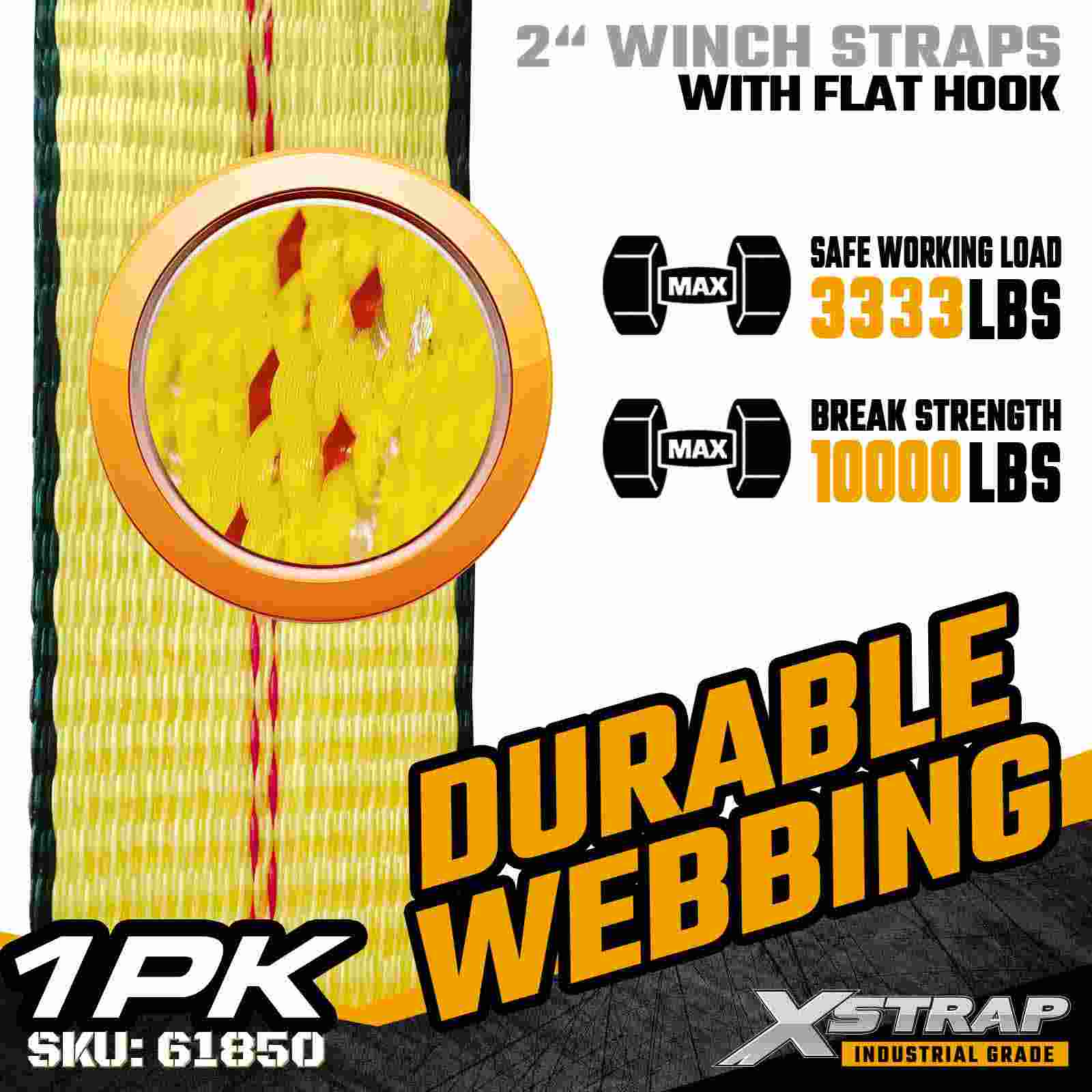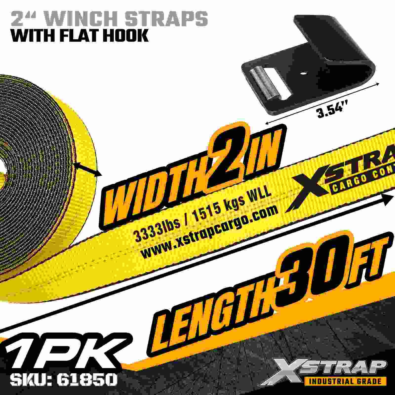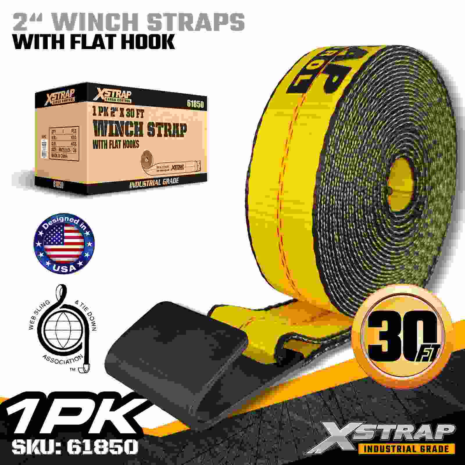 สายรัดกว้านมาตรฐาน Xstrap 61850 ขนาด 2 นิ้ว × 30 ฟุตสร้างขึ้นเพื่อความมั่นคงปลอดภัยของสินค้าแบบพื้นเรียบ โดยมีตะขอแบนเสริมความแข็งแรงและสายรัดโพลีเอสเตอร์ความแข็งแรงสูง ด้วยขีดจำกัดการรับน้ำหนักการทำงาน 3,333 ปอนด์ และความต้านทานการแตกหัก 10,000 ปอนด์ จึงให้ประสิทธิภาพที่เชื่อถือได้สำหรับการลากสินค้ารายวัน การบรรทุกพาเลท ไม้แปรรูป ท่อ และการใช้งานด้านลอจิสติกส์ทั่วไป