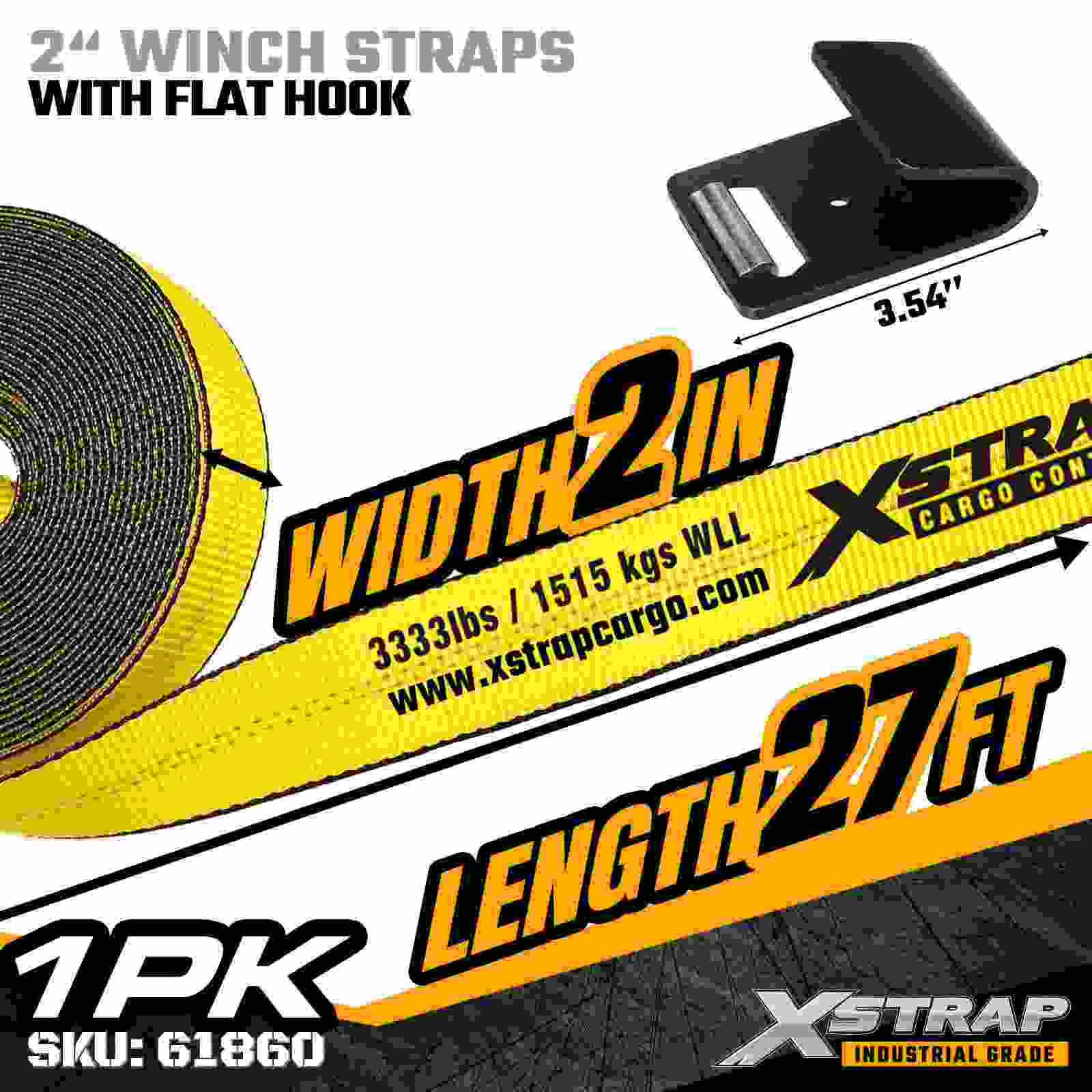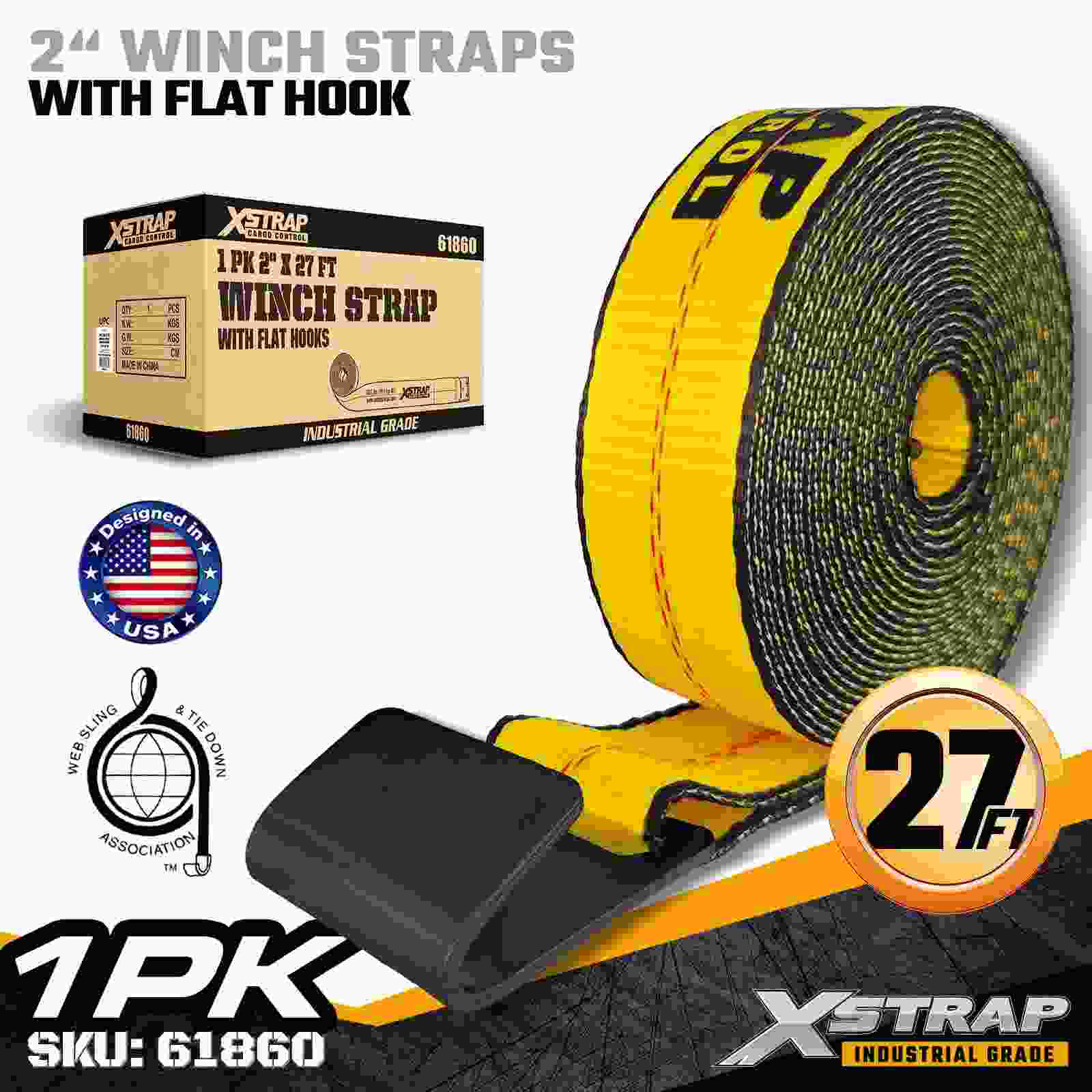 สายรัดกว้านมาตรฐาน Xstrap 61860 ขนาด 2 นิ้ว × 27 ฟุตสร้างขึ้นเพื่อความมั่นคงปลอดภัยของสินค้าแบบพื้นเรียบ โดยมีตะขอแบนเสริมความแข็งแรงและสายรัดโพลีเอสเตอร์ความแข็งแรงสูง ด้วยขีดจำกัดน้ำหนักการทำงาน 3,333 ปอนด์ และความต้านทานการแตกหัก 10,000 ปอนด์ จึงมอบประสิทธิภาพที่เชื่อถือได้สำหรับการลากสินค้ารายวัน การบรรทุกพาเลท ไม้แปรรูป และการใช้งานด้านลอจิสติกส์ทั่วไป