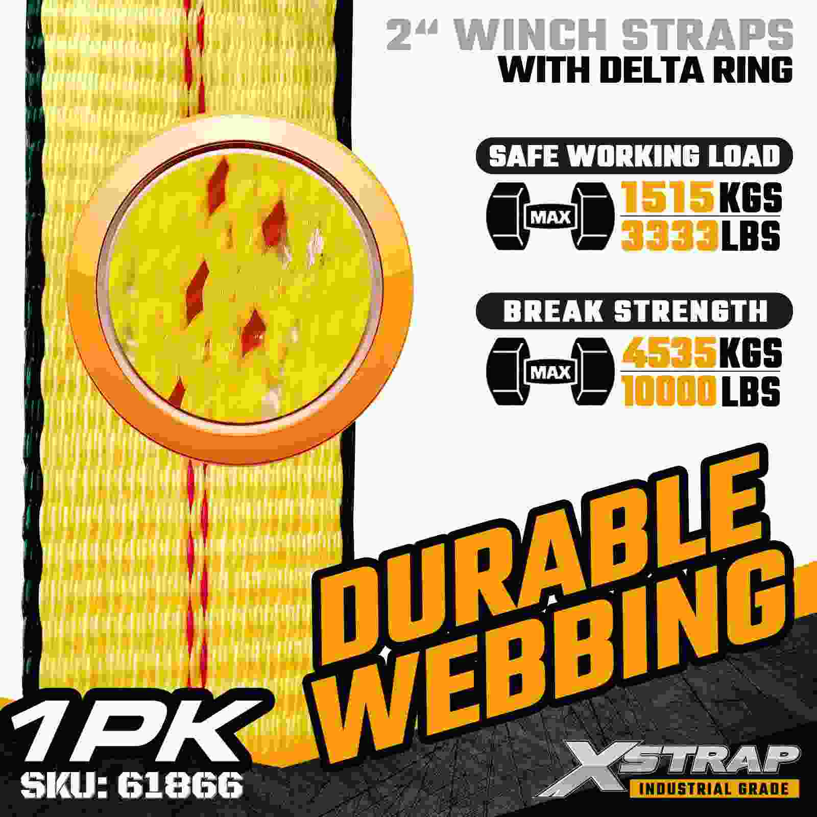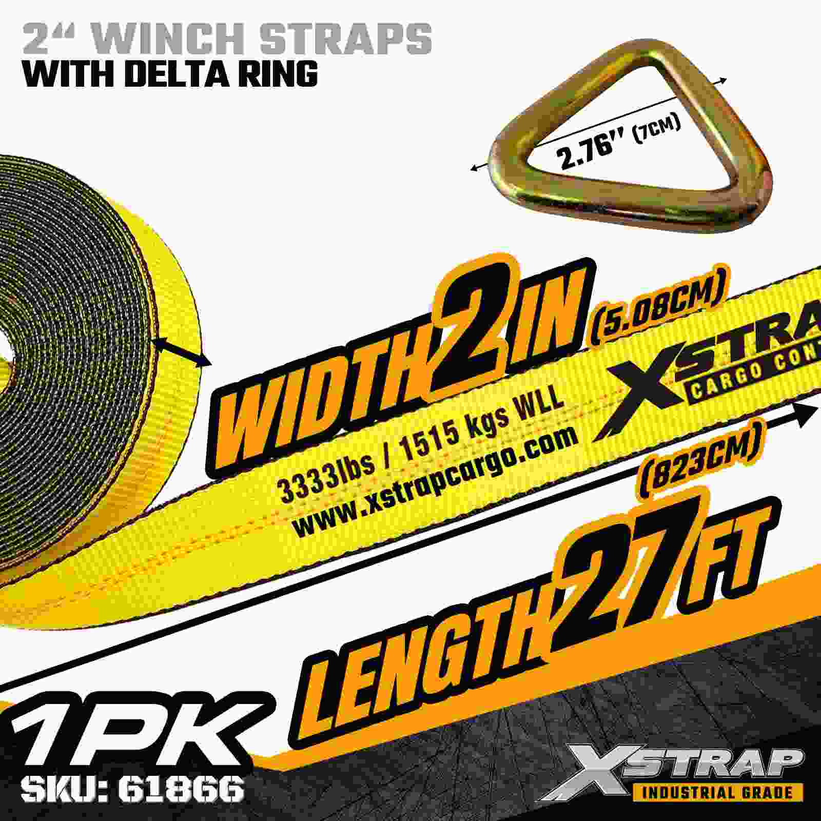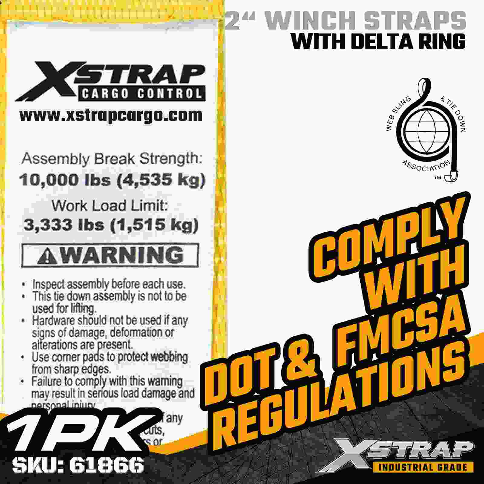 สายรัดกว้านมาตรฐาน Xstrap 61866 ขนาด 2 นิ้ว × 27 ฟุตเป็นสายรัดยึดสินค้าที่ทนทานและเชื่อถือได้ ออกแบบมาสำหรับรถพ่วงพื้นเรียบและการขนส่งแบบมืออาชีพ สายรัดกว้านขนาด 2 นิ้วมี เดลต้าริง ที่แข็งแกร่งและสายรัดโพลีเอสเตอร์ความแข็งแรงสูง ให้ขีดจำกัดน้ำหนักการทำงาน 3,333 ปอนด์ และความต้านทานการแตกหัก 10,000 ปอนด์ เหมาะอย่างยิ่งสำหรับการยึดพาเลท ไม้ ท่อ เครื่องจักร และสินค้าทั่วไประหว่างการลากในแต่ละวัน การดำเนินงาน