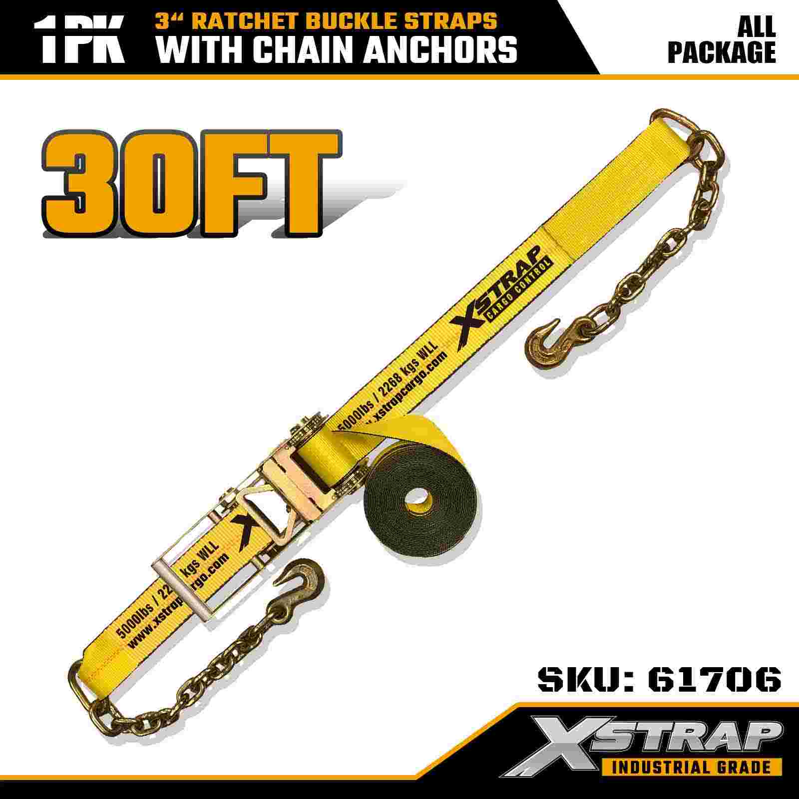 สายรัดหัวเข็มขัดเฟือง Xstrap 61706 ขนาด 3 นิ้ว × 30 ฟุต (แพ็ค 1 ชิ้น) ได้รับการออกแบบมาเพื่อการรักษาความปลอดภัยสินค้าสำหรับงานหนัก โดยมีพุกโซ่ปลอมแปลงและระบบเฟืองล้อแรงดึงสูง ด้วย WLL 5,000 ปอนด์และความต้านทานการแตกหัก 15,000 ปอนด์ จึงมอบประสิทธิภาพที่เชื่อถือได้สำหรับพื้นเรียบ การขนส่งเครื่องจักร และการลากจูงทางอุตสาหกรรม