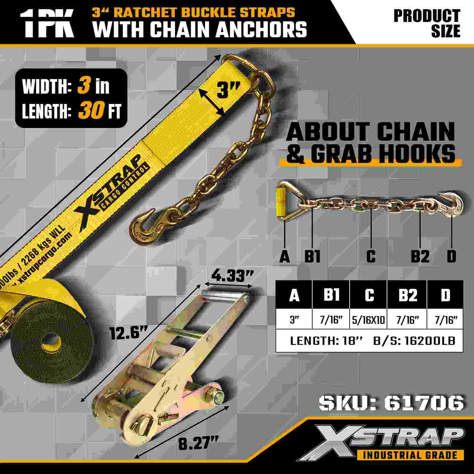 สายรัดหัวเข็มขัดวงล้อ 3 "× 30 ฟุตพร้อมพุกโซ่