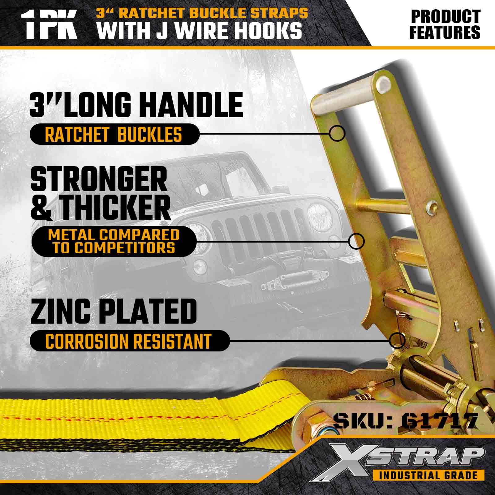 สายรัดหัวเข็มขัดเฟือง Xstrap 61717 ขนาด 3 นิ้ว × 30 ฟุต (1 แพ็ค) ได้รับการออกแบบมาเพื่อการใช้งานบรรทุกสินค้าที่มีความต้องการสูง โดยมีตะขอลวดเสริมแรงและระบบเฟืองวงล้อแรงดึงสูง ด้วยขีดจำกัดการรับน้ำหนักการทำงาน 5,000 ปอนด์ และความต้านทานการแตกหัก 15,000 ปอนด์ สายรัดนี้ให้ประสิทธิภาพที่เชื่อถือได้สำหรับพื้นเรียบ การขนส่งอุปกรณ์ และโลจิสติกส์ทางอุตสาหกรรม