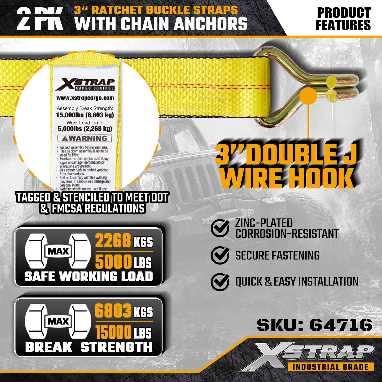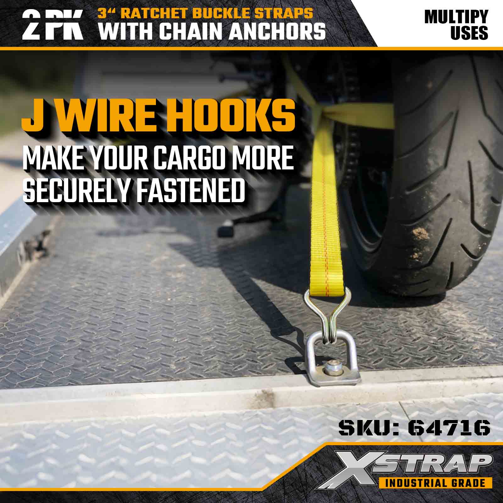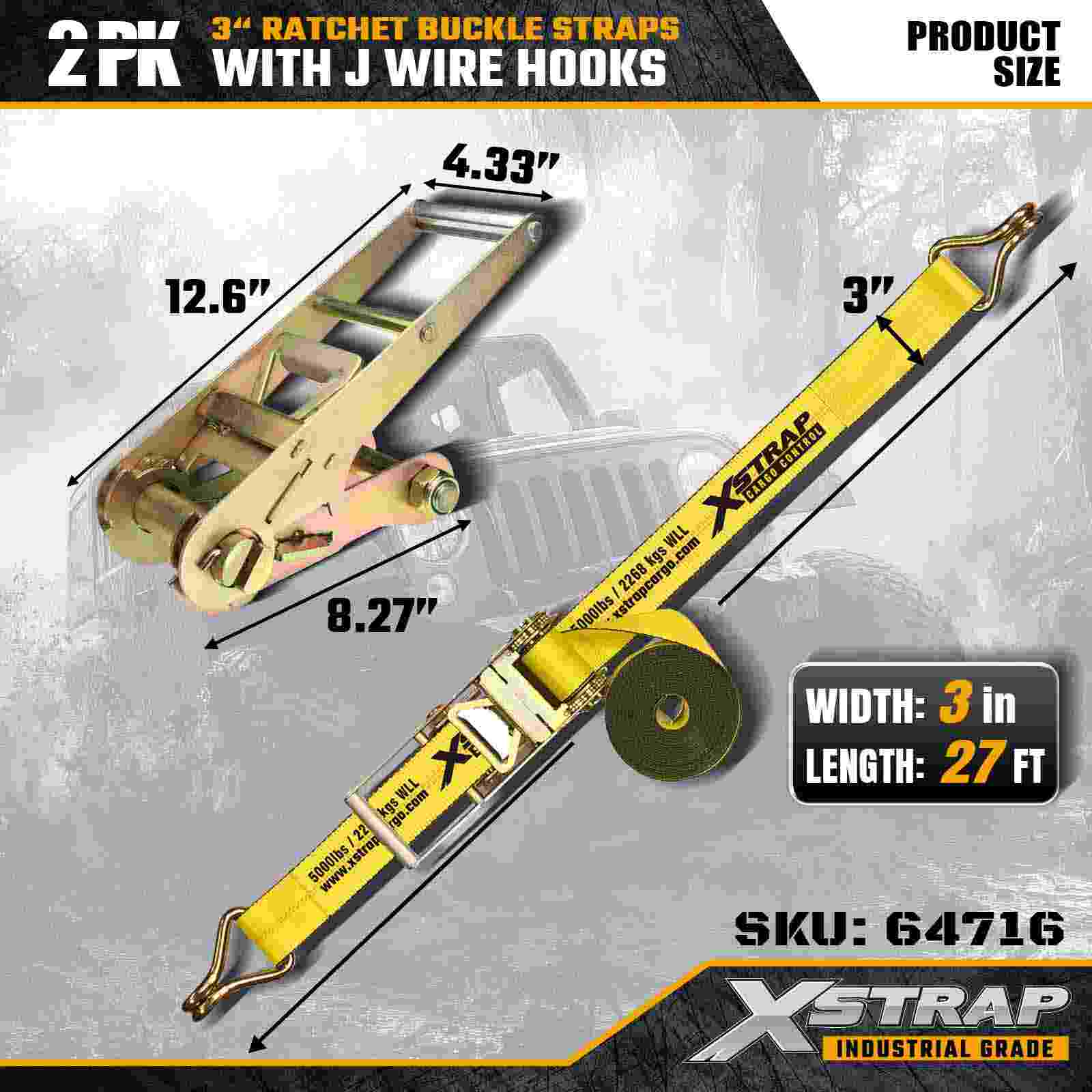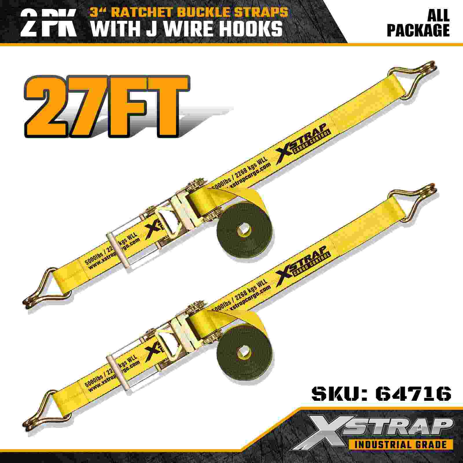 Xstrap 64716 สายรัดหัวเข็มขัดแบบวงล้อขนาด 3" × 27 ฟุต (แพ็ค 2 ชิ้น) ได้รับการออกแบบมาเพื่อการรักษาความปลอดภัยสินค้าอย่างมืออาชีพ โดยมีตะขอลวดที่มีความแข็งแรงสูงและกลไกเฟืองล้อที่ทนทาน ด้วยขีดจำกัดการรับน้ำหนักการทำงาน 5,000 ปอนด์ และความต้านทานการแตกหัก 15,000 ปอนด์ สายรัดเหล่านี้จึงมอบประสิทธิภาพที่เชื่อถือได้สำหรับพื้นเรียบ การขนส่งอุปกรณ์ และงานลากจูงทางอุตสาหกรรม