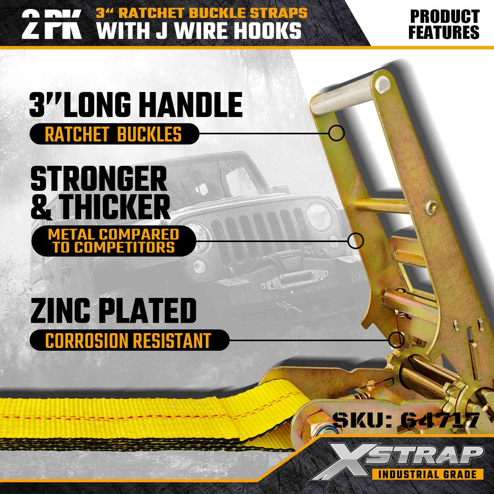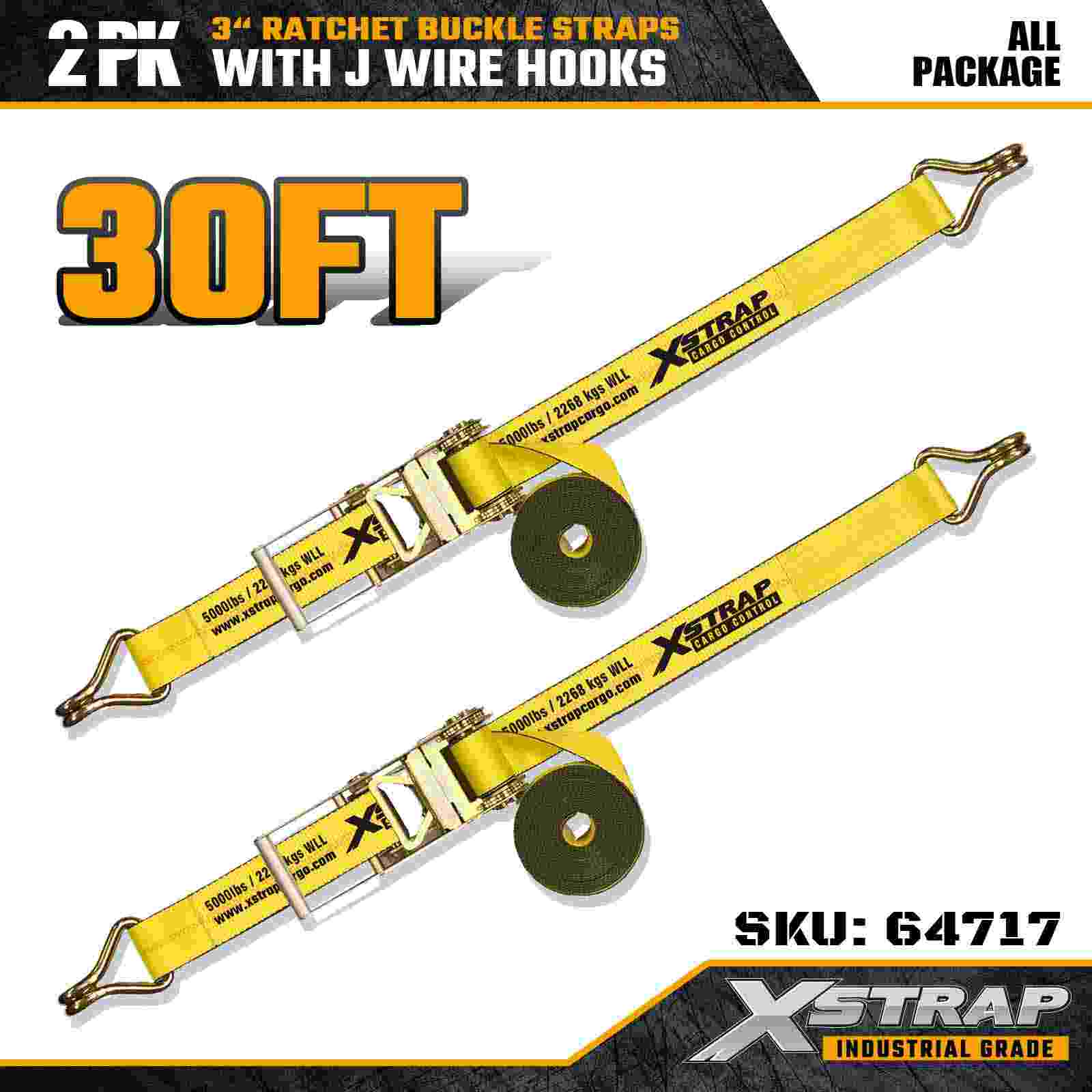 Xstrap 64717 สายรัดหัวเข็มขัดแบบวงล้อขนาด 3" × 30 ฟุต (แพ็ค 2 ชิ้น) ได้รับการออกแบบมาเพื่อการรักษาความปลอดภัยสินค้าอย่างมืออาชีพ โดยมีตะขอลวดเสริมแรงและกลไกเฟืองล้อสำหรับงานหนัก ด้วยขีดจำกัดการรับน้ำหนักการทำงาน 5,000 ปอนด์ และความต้านทานการแตกหัก 15,000 ปอนด์ สายรัดเหล่านี้ให้ประสิทธิภาพที่เชื่อถือได้และระยะเอื้อมไกลสำหรับรถพื้นเรียบ การขนส่งเครื่องจักร และการลากจูงทางอุตสาหกรรม