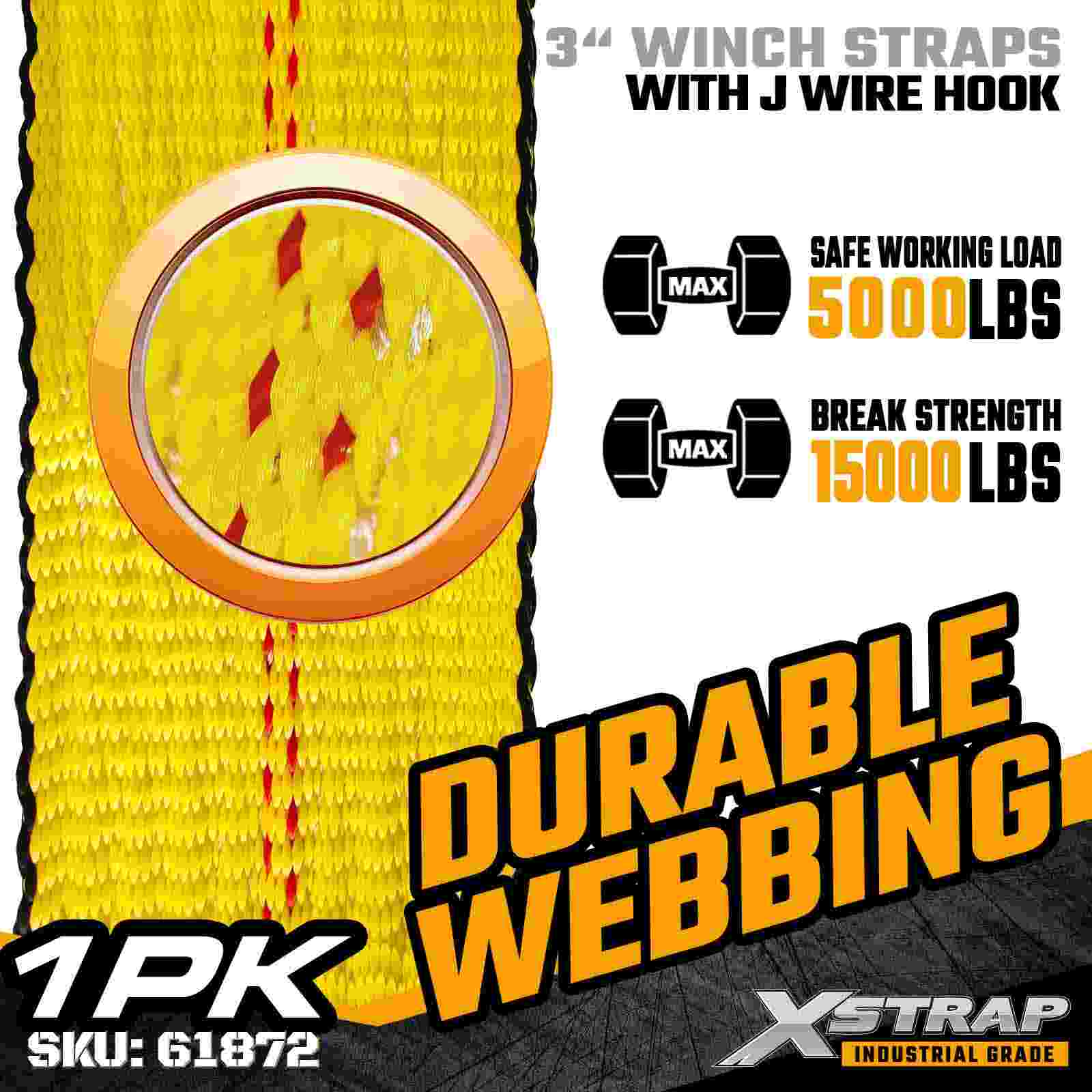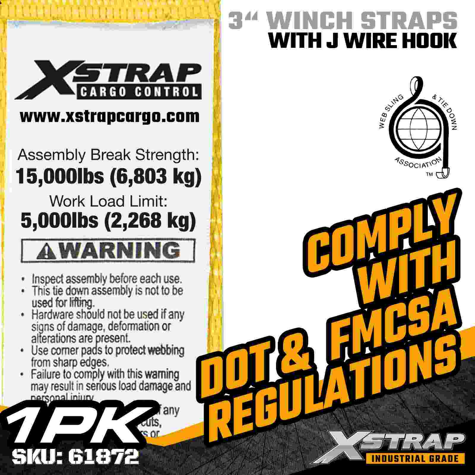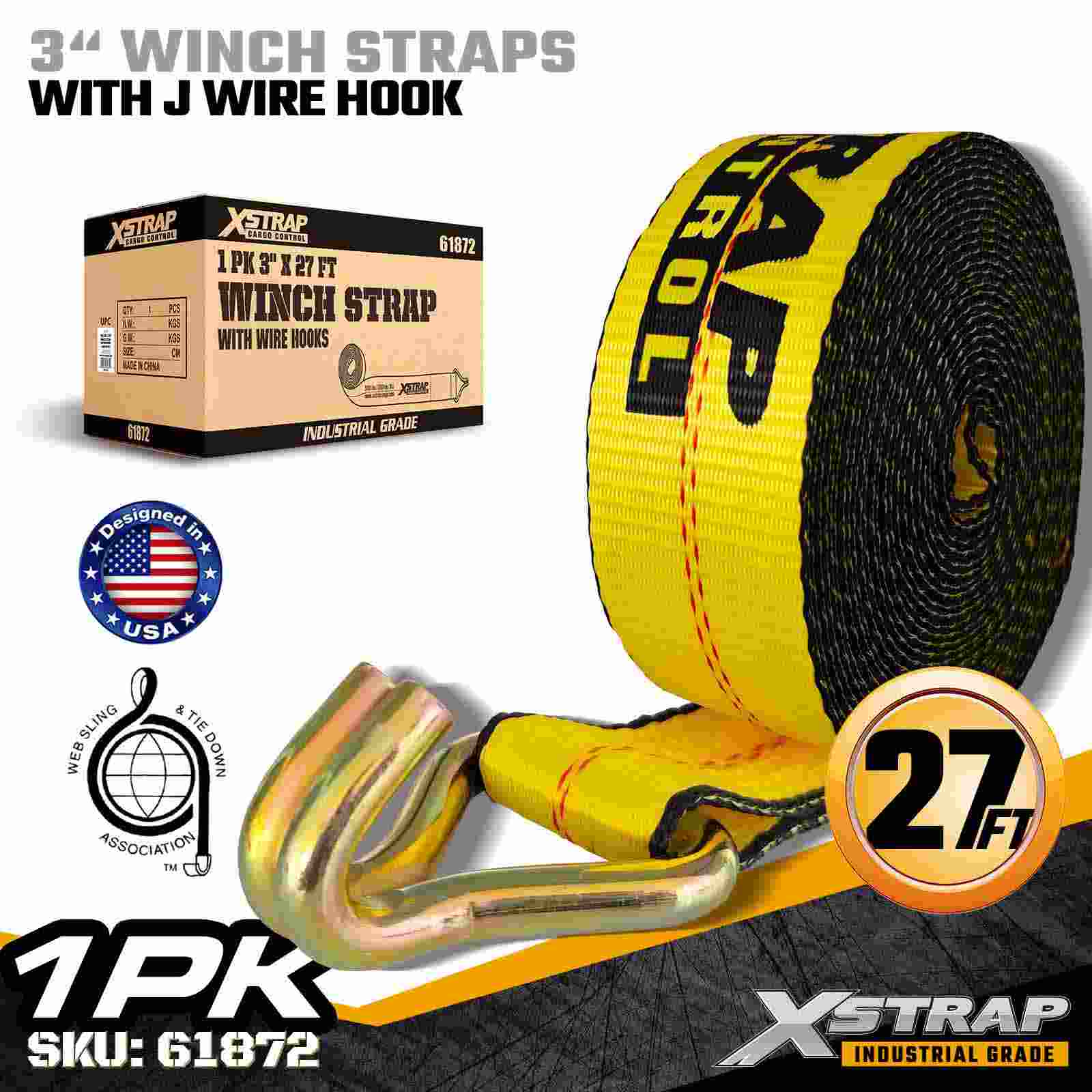 สายรัดกว้านมาตรฐาน Xstrap 61872 ขนาด 3 นิ้ว × 27 ฟุตเป็นโซลูชันการรักษาความปลอดภัยสินค้าสำหรับงานหนักที่ออกแบบมาสำหรับรถพ่วงพื้นเรียบและการขนส่งทางอุตสาหกรรม มาพร้อมกับตะขอลวดเสริมแรงและสายรัดโพลีเอสเตอร์กว้างพิเศษขนาด 3 นิ้ว สายรัดกว้านขนาด 3 นิ้วนี้ให้ขีดจำกัดการรับน้ำหนักการทำงาน 5,000 ปอนด์ และความต้านทานการแตกหัก 15,000 ปอนด์ การออกแบบตะขอลวดให้ตัวเลือกการติดที่ยืดหยุ่น ทำให้เหมาะสำหรับผู้ปฏิบัติงานที่ต้องการความรวดเร็ว จุดเชื่อมต่ออเนกประสงค์ระหว่างการดำเนินการลากในแต่ละวัน