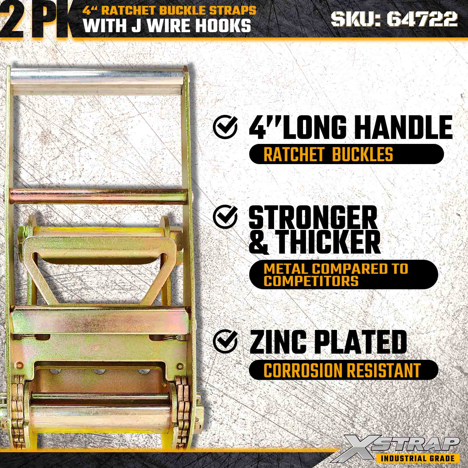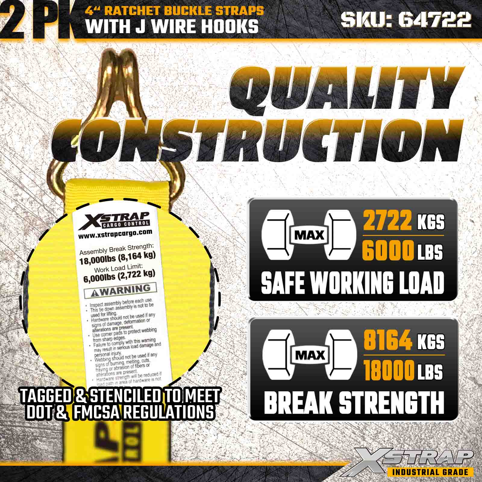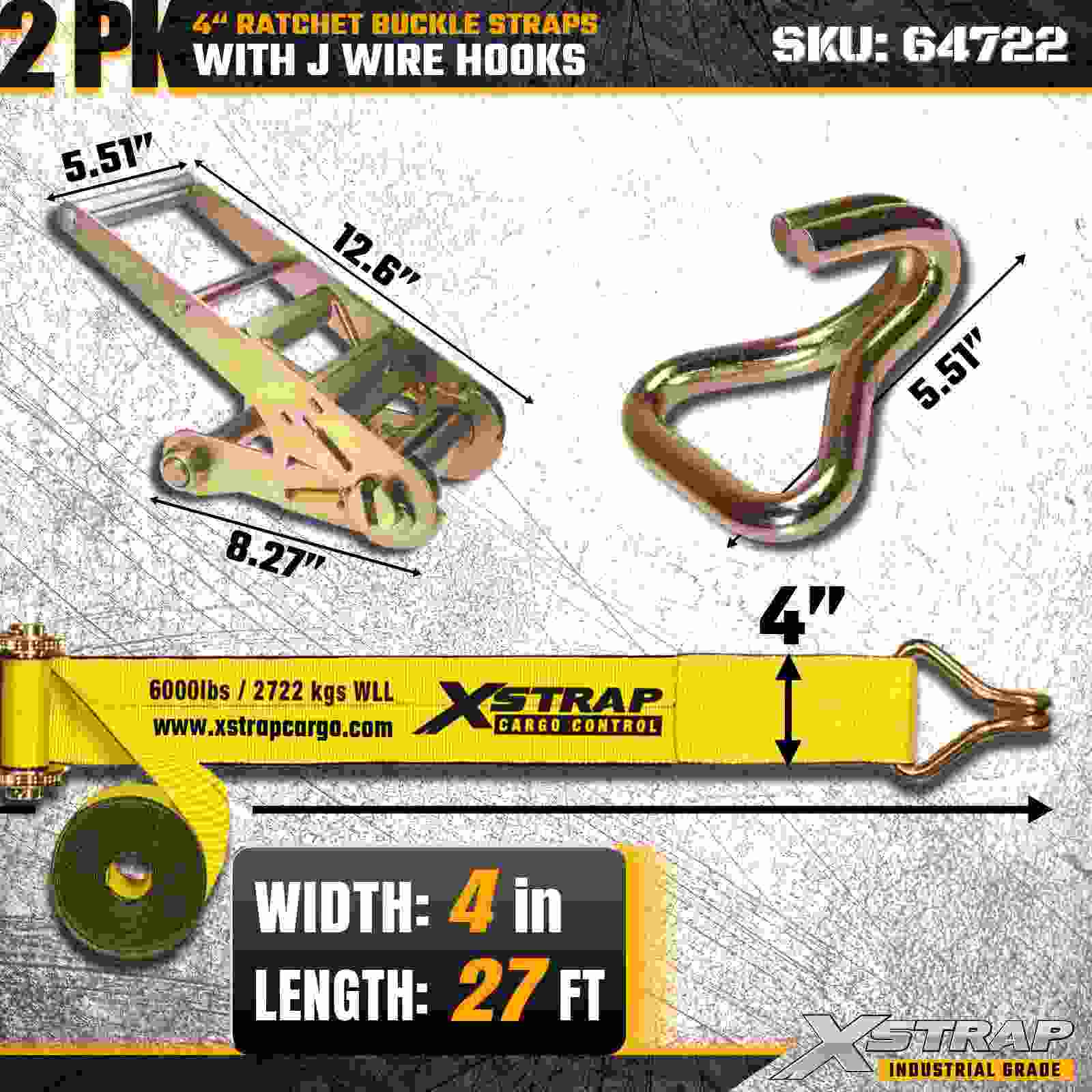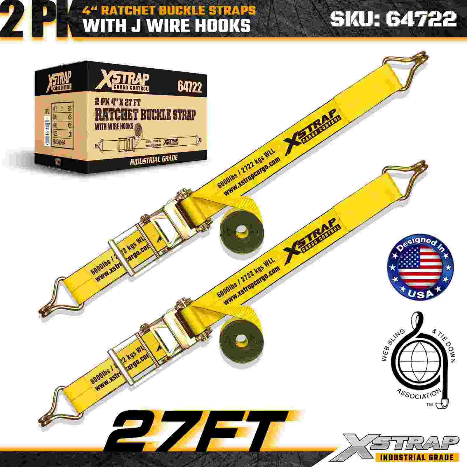 สายรัดหัวเข็มขัดแบบวงล้อ Xstrap 64722 ขนาด 4" × 27 ฟุต (แพ็ค 2 ชิ้น) ได้รับการออกแบบมาเพื่อการรักษาความปลอดภัยสินค้าสำหรับงานหนัก โดยมีตะขอลวดเสริมแรงและกลไกวงล้อที่ทนทาน ด้วยขีดจำกัดการรับน้ำหนักการทำงาน 6,000 ปอนด์ และความต้านทานการแตกหัก 18,000 ปอนด์ สายรัดเหล่านี้จึงเหมาะอย่างยิ่งสำหรับการลากบนพื้นเรียบ การขนส่งเครื่องจักร ไม้แปรรูป โหลดเหล็ก และการใช้งานในการขนส่งสินค้าทางอุตสาหกรรม