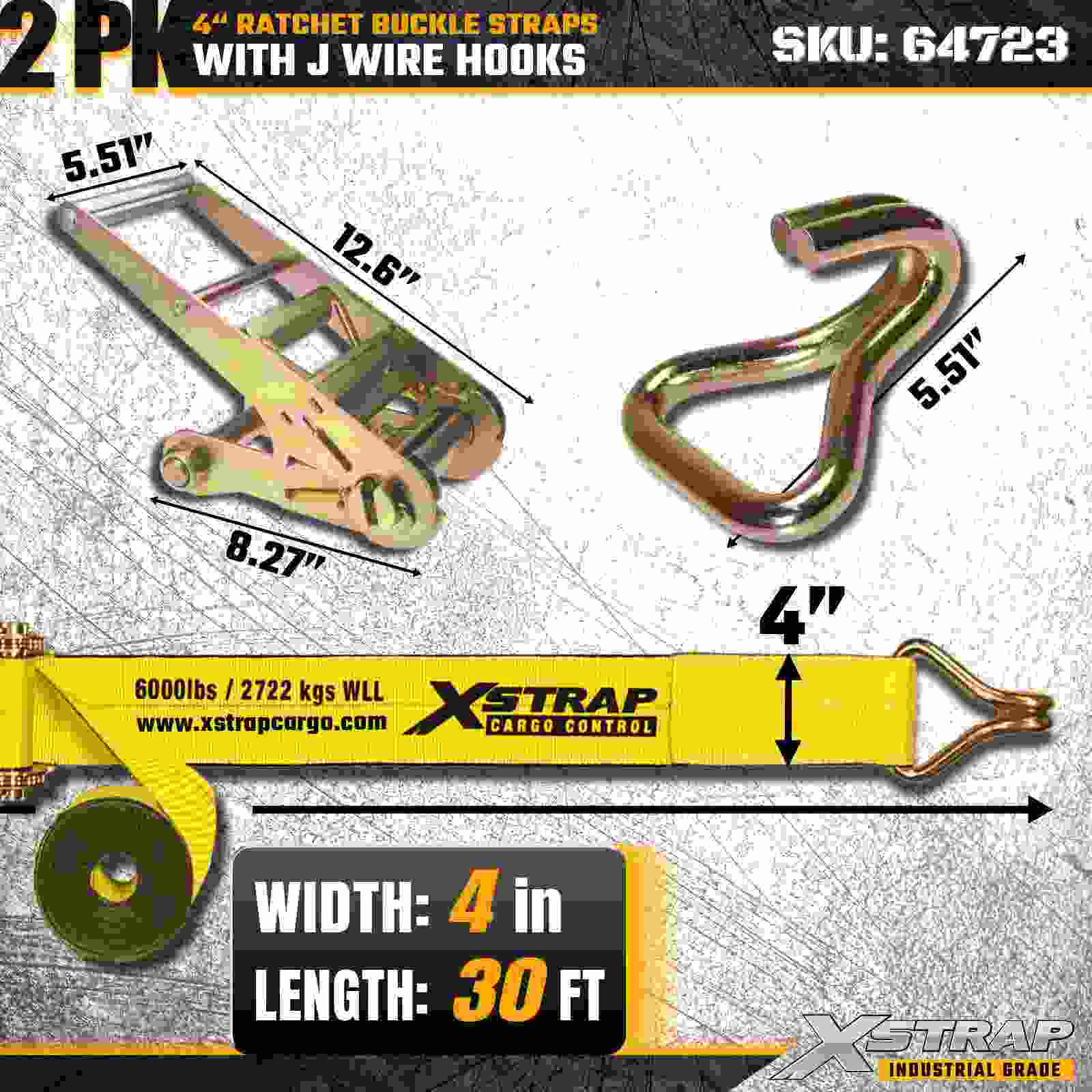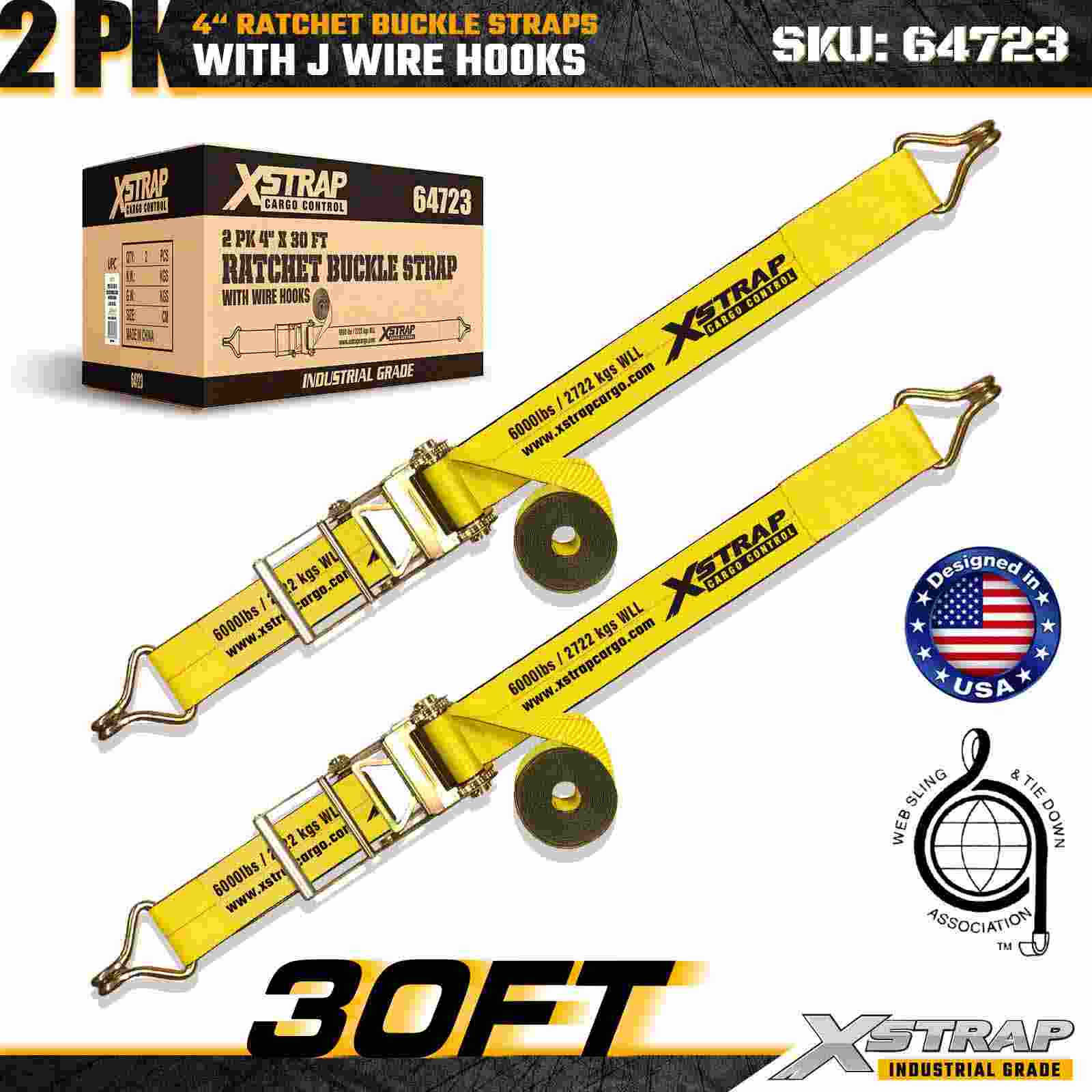 สายรัดหัวเข็มขัดแบบวงล้อ Xstrap 64723 ขนาด 4" × 30 ฟุต (แพ็ค 2 ชิ้น) ได้รับการออกแบบมาเพื่อการรักษาความปลอดภัยในการบรรทุกสินค้าหนัก โดยมีตะขอลวดเสริมแรงและกลไกวงล้อที่ทนทาน ด้วยขีดจำกัดการรับน้ำหนักการทำงาน 6,000 ปอนด์ และความต้านทานการแตกหัก 18,000 ปอนด์ สายรัดเหล่านี้เหมาะอย่างยิ่งสำหรับการลากบนพื้นเรียบ การขนส่งเครื่องจักร ไม้แปรรูป โหลดเหล็ก และการใช้งานบรรทุกสินค้าทางอุตสาหกรรม