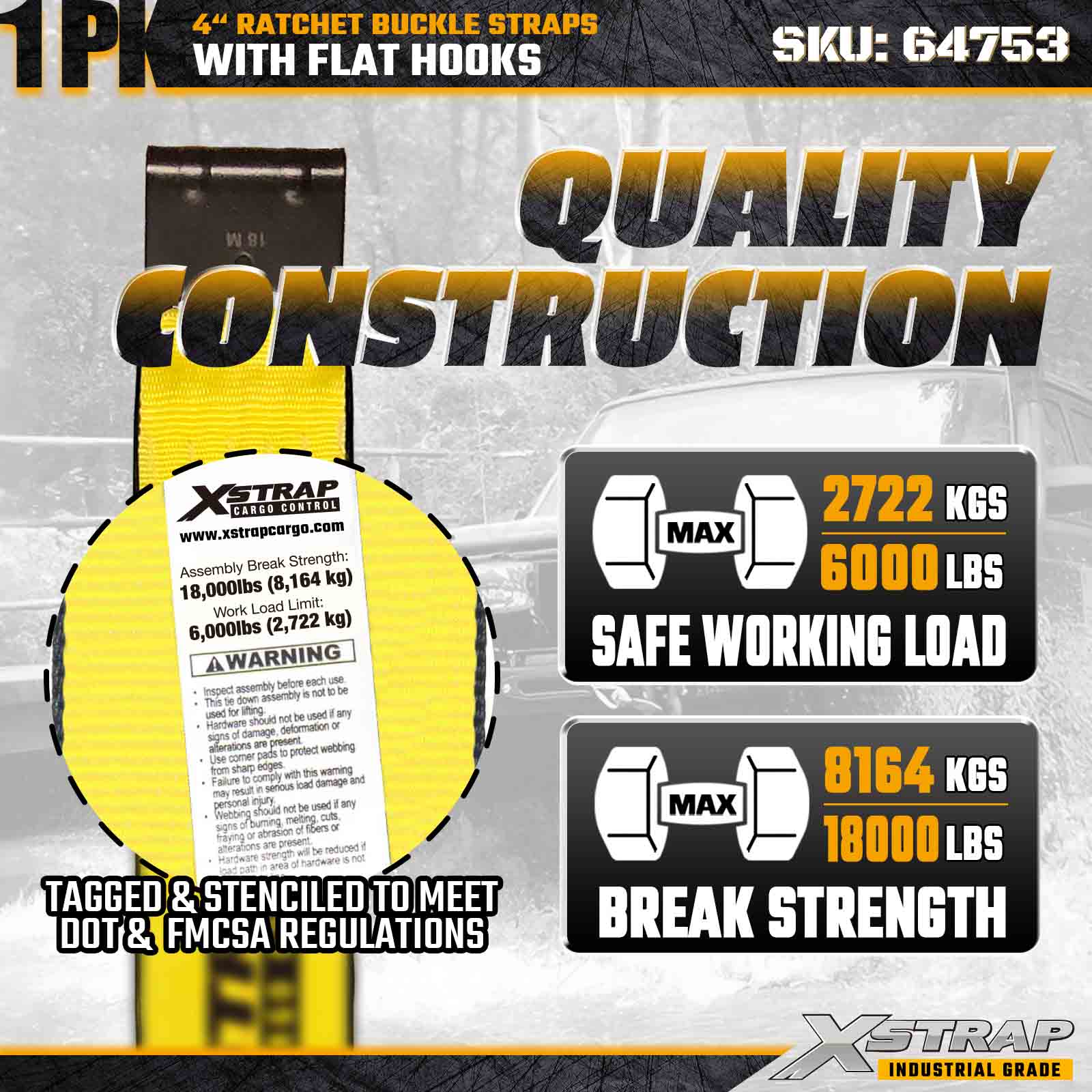 - ออกแบบมาเพื่อมาตรฐานการขนส่งระดับมืออาชีพ: สายรัดนี้รับแรงแตกหักได้ 18,000 ปอนด์ และ WLL 6,000 ปอนด์ ตรงตามข้อกำหนดของกลุ่มรถบรรทุก ผู้รับเหมา และโลจิสติกส์อุตสาหกรรมที่ต้องการความทนทานและประสิทธิภาพสูงสุด