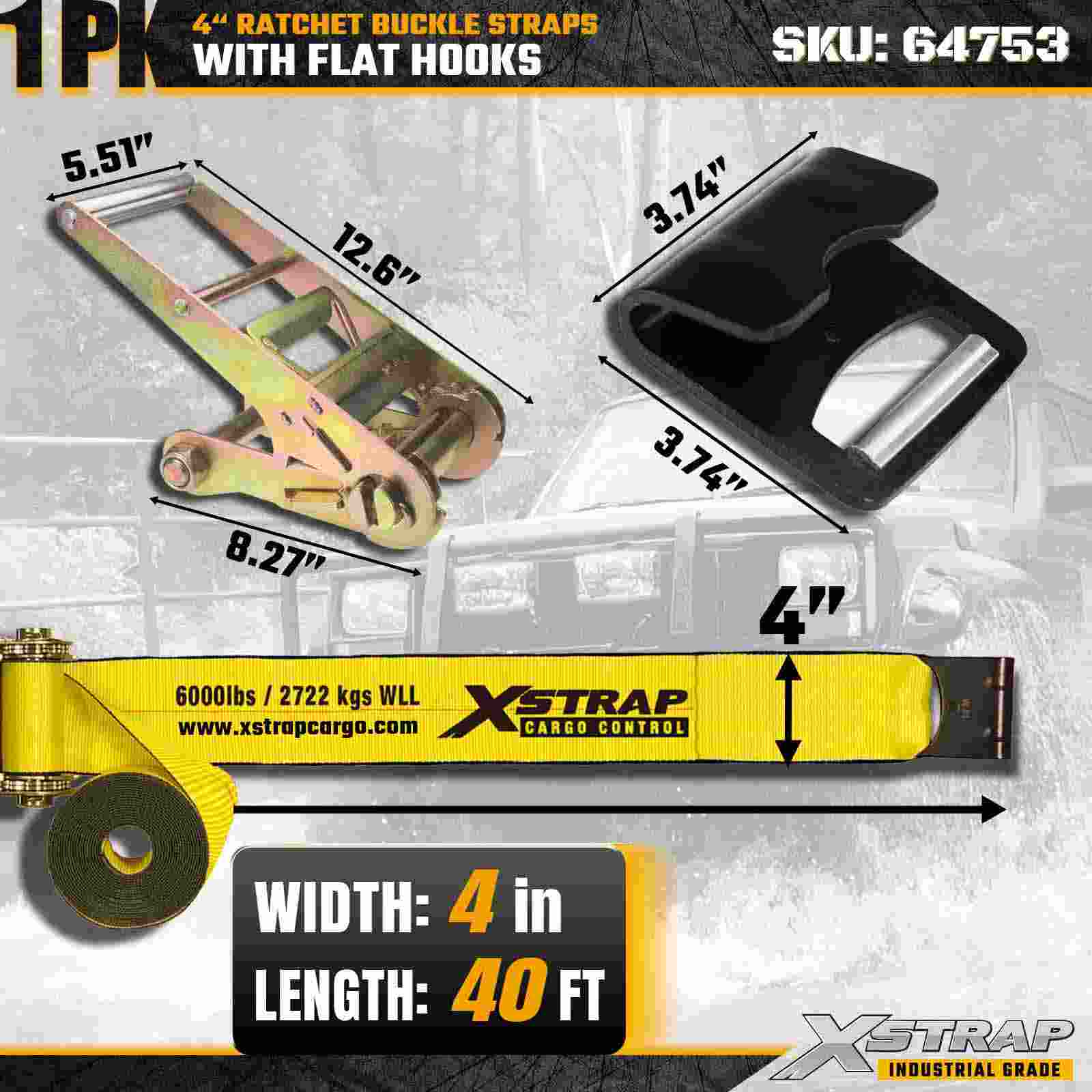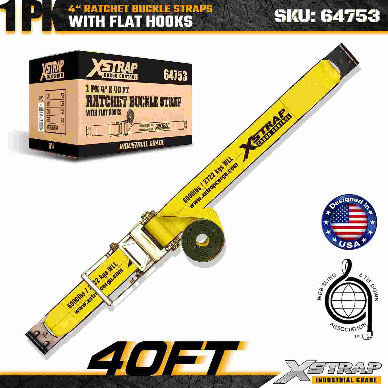 สายรัดหัวเข็มขัดเฟืองล้อ Xstrap 64753 ขนาด 4" × 40 ฟุต (1 แพ็ค) ได้รับการออกแบบมาเพื่อการรักษาความปลอดภัยสินค้าสำหรับงานหนัก โดยมีตะขอแบนเสริมความแข็งแรงและกลไกเฟืองล้อที่ทนทาน ด้วยขีดจำกัดการรับน้ำหนักการทำงาน 6,000 ปอนด์ และความต้านทานการแตกหัก 18,000 ปอนด์ สายรัดยาวพิเศษนี้เหมาะอย่างยิ่งสำหรับการลากบนพื้นเรียบ น้ำหนักบรรทุกขนาดใหญ่ การขนส่งเครื่องจักร และการใช้งานบรรทุกสินค้าทางอุตสาหกรรม
