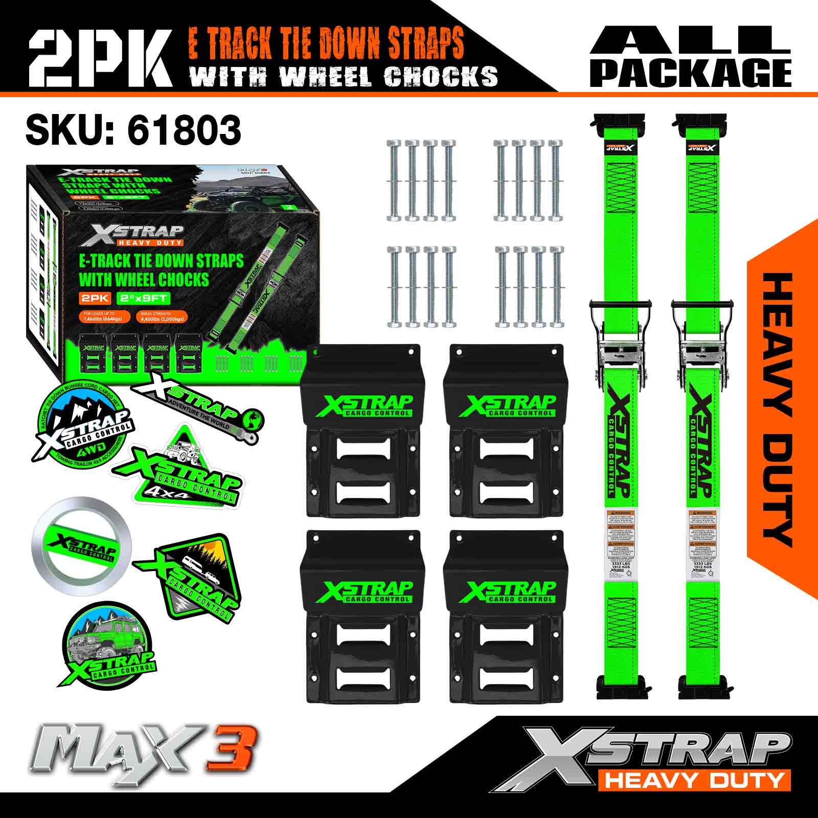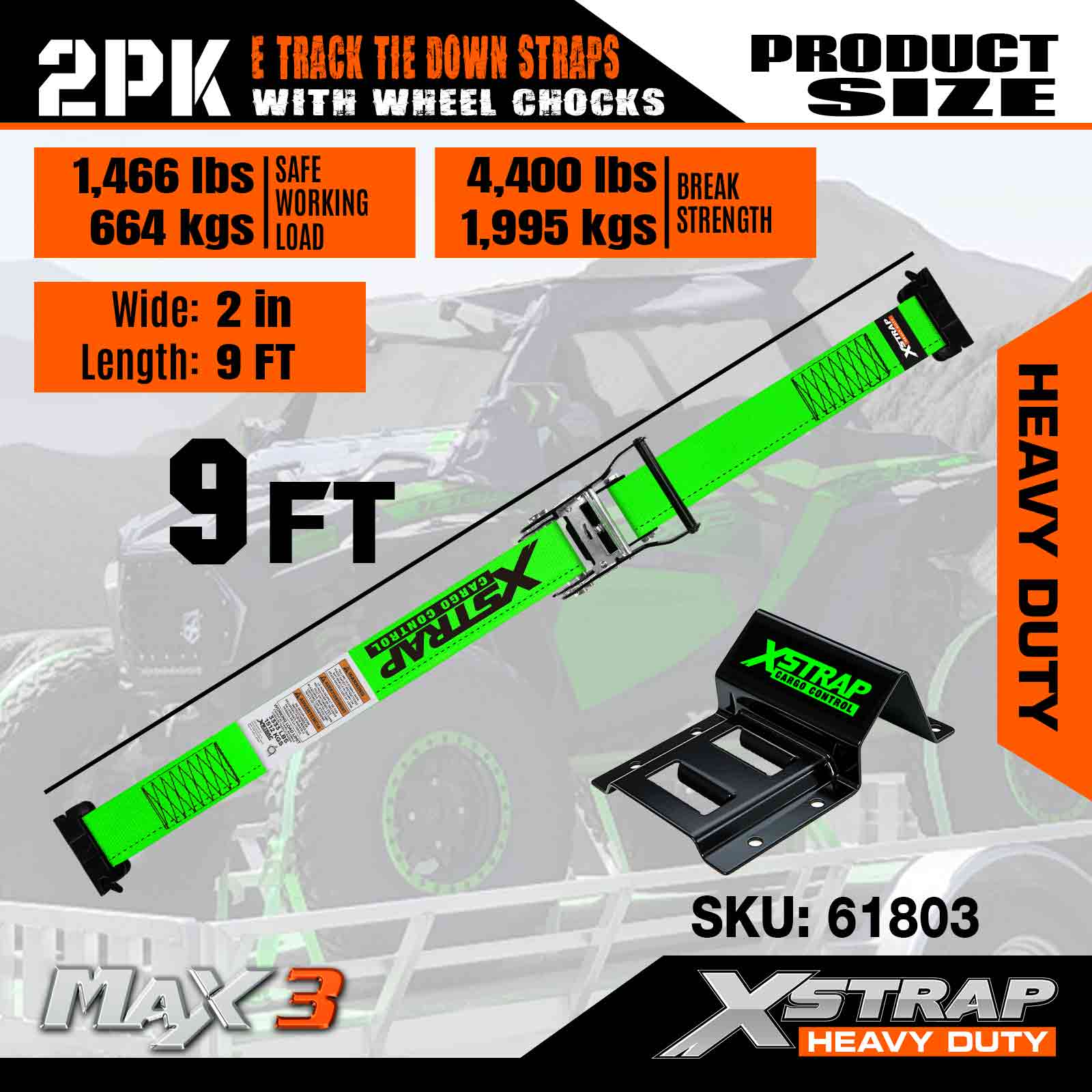 Xstrap E-Track ล้อ Chock Tie Down Kit, 2in * 9ft Heavy Duty สำหรับรถพ่วงรถ UTV ATV, วงล้อ Tie Downs พร้อมสายรัดยาง (2 แพ็ค)