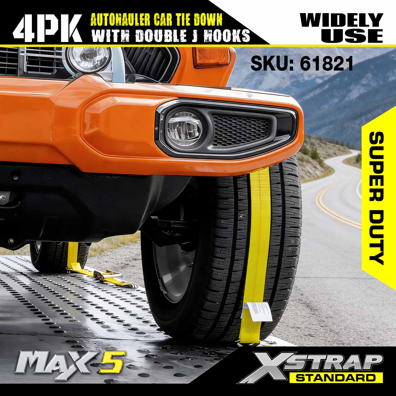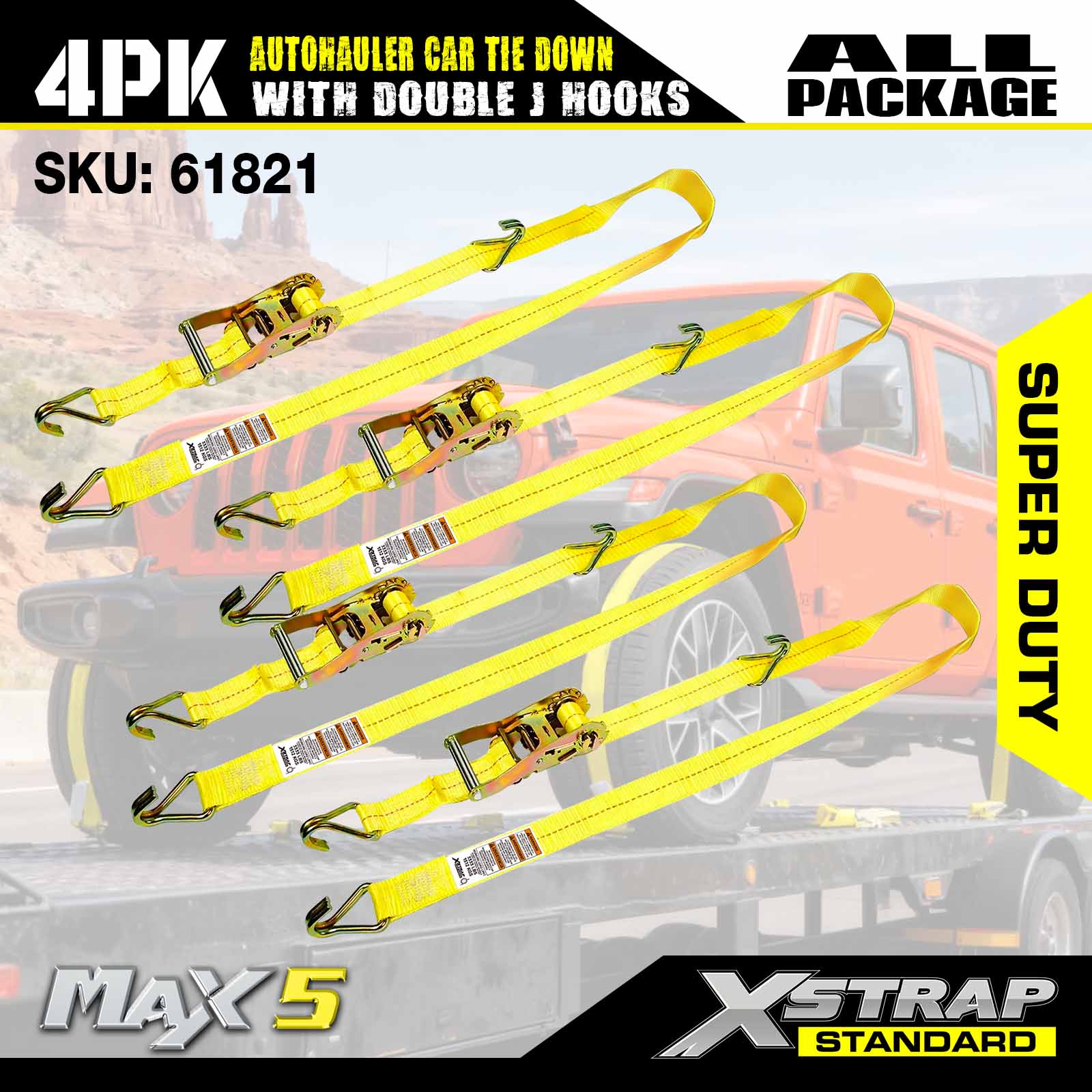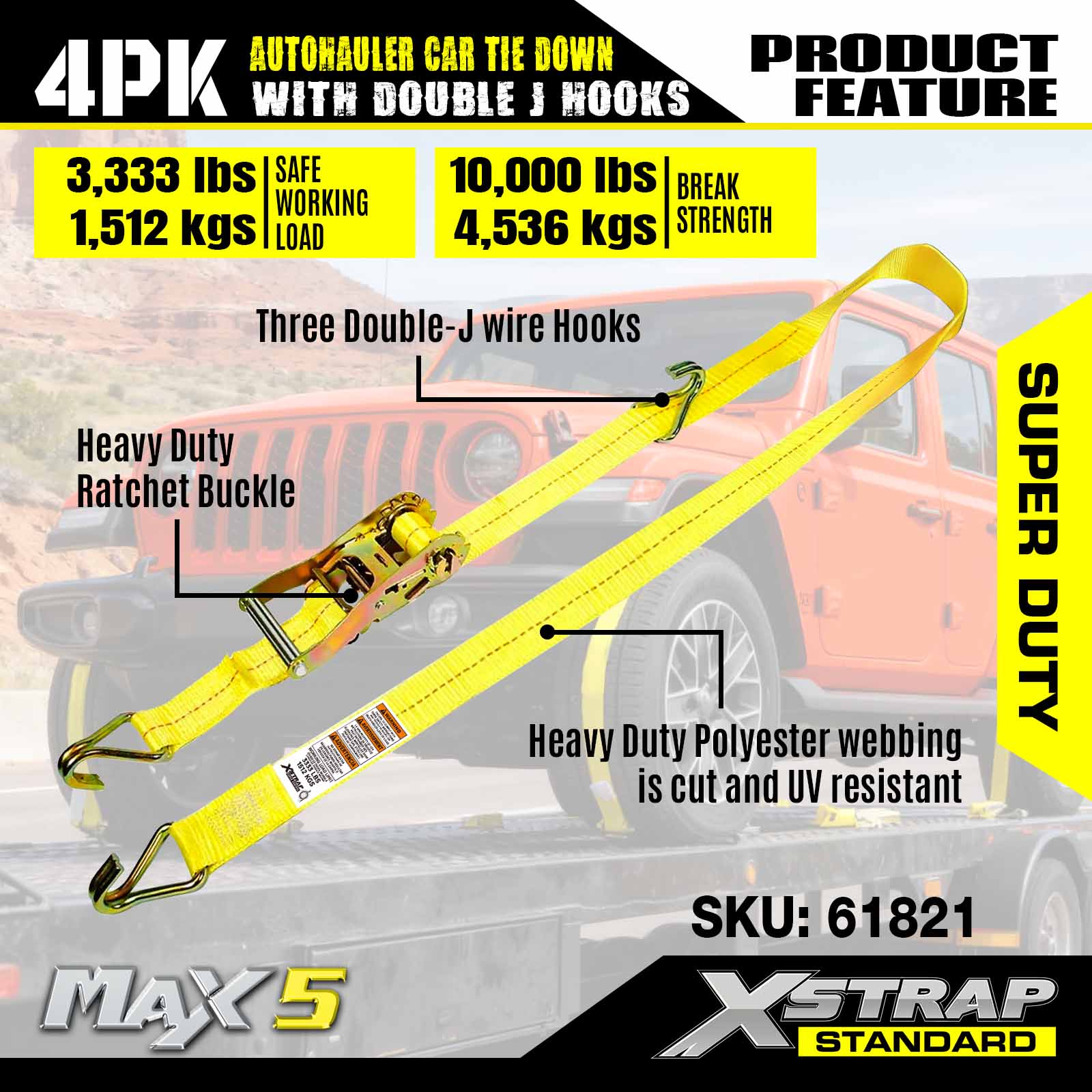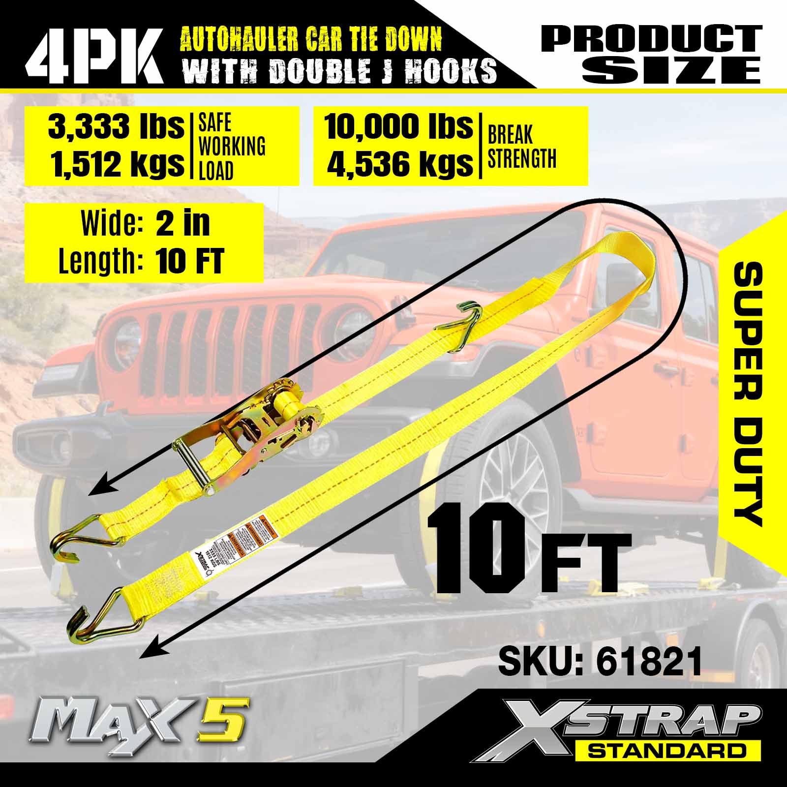 Xstrap Car Hauler Straps Heavy Duty 10,000 lbs Break Strength - สายรัดยางสำหรับรถพ่วง, เหนือล้อ Tie Downs พร้อม Cleats ยางสำหรับ SUV, รถบรรทุก, ATV, UTV