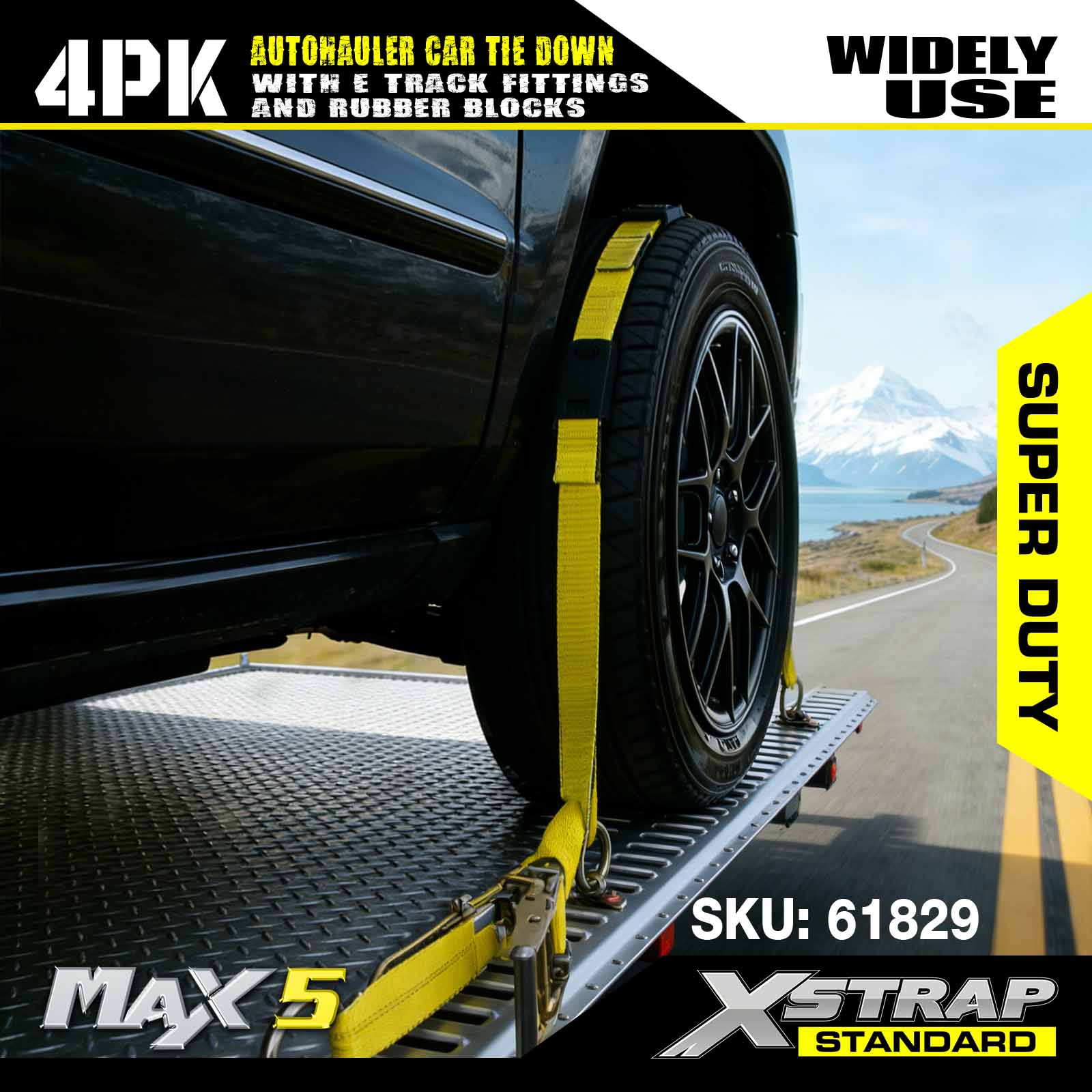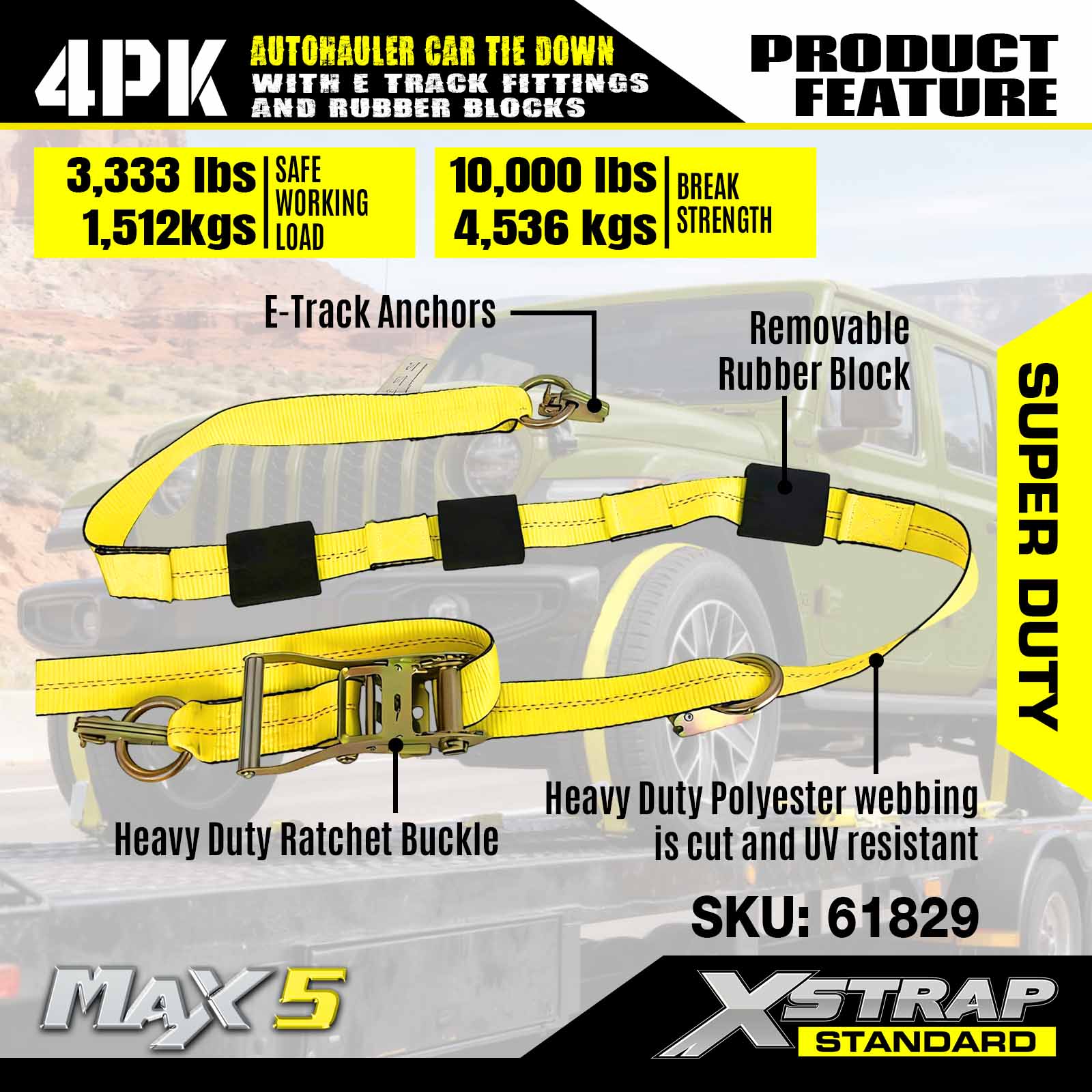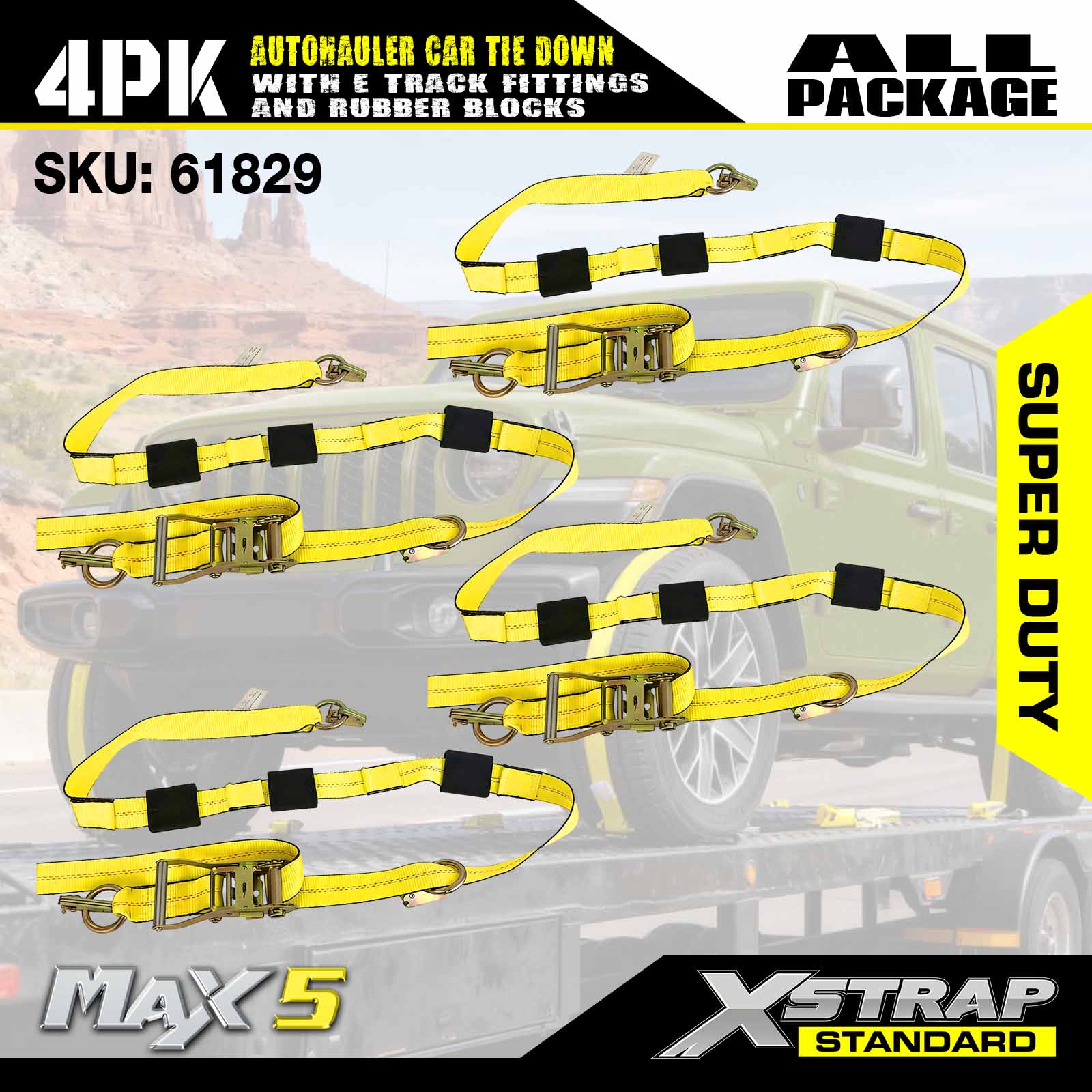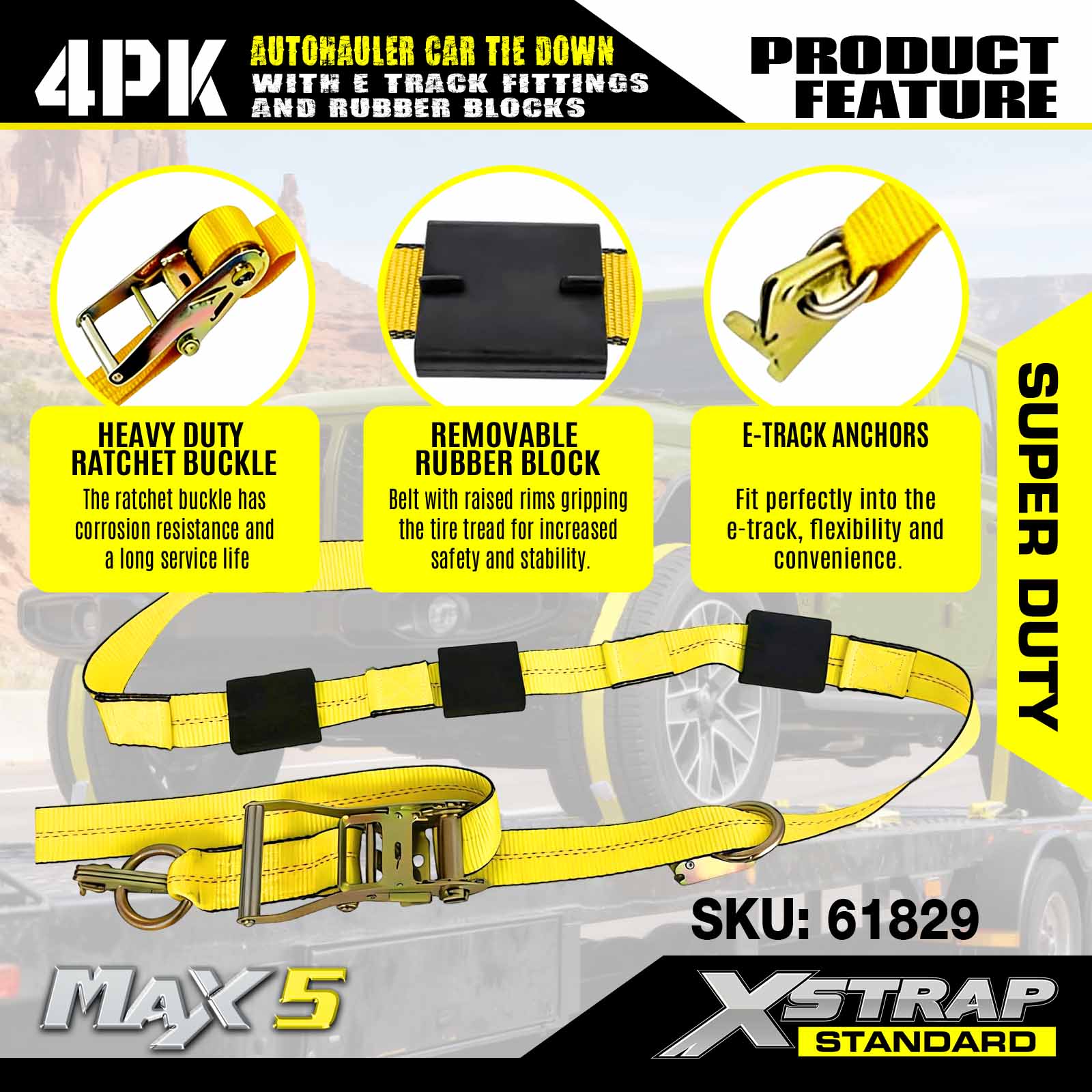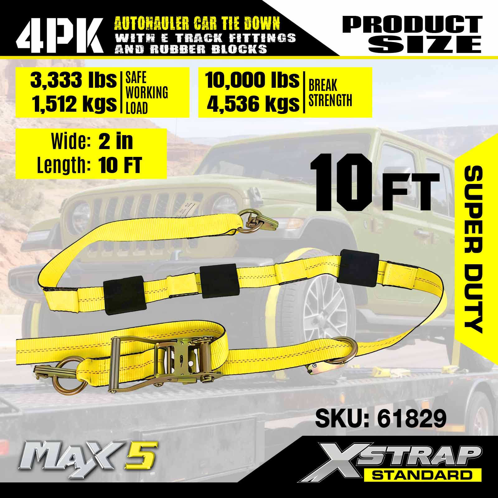 Xstrap E Track สายรัดยางสำหรับรถพ่วง Heavy Duty 2 "x 10' Auto Hauler Strap-10,000lb รับประกัน Break Strength-(4) ชุดผูกยานพาหนะระดับพรีเมียมพร้อมบล็อกยาง Tie-Downs ล้อสำหรับรถบรรทุก, UTV