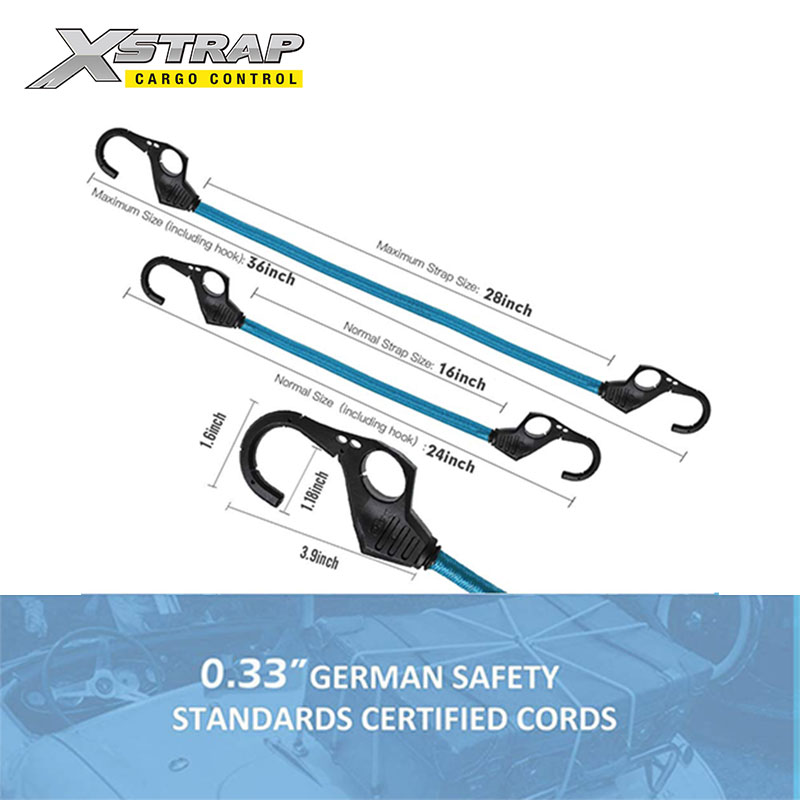 สายบันจี้จัมพร้อมตะขอเกี่ยวนิ้วทำจากยางทอไขว้ที่ทนทานต่อรังสียูวีและลาเท็กซ์ จะไม่สึกหรอบางหรือแตกหักเมื่อใช้งานในแต่ละวันหรือในสภาพอากาศที่แตกต่างกัน