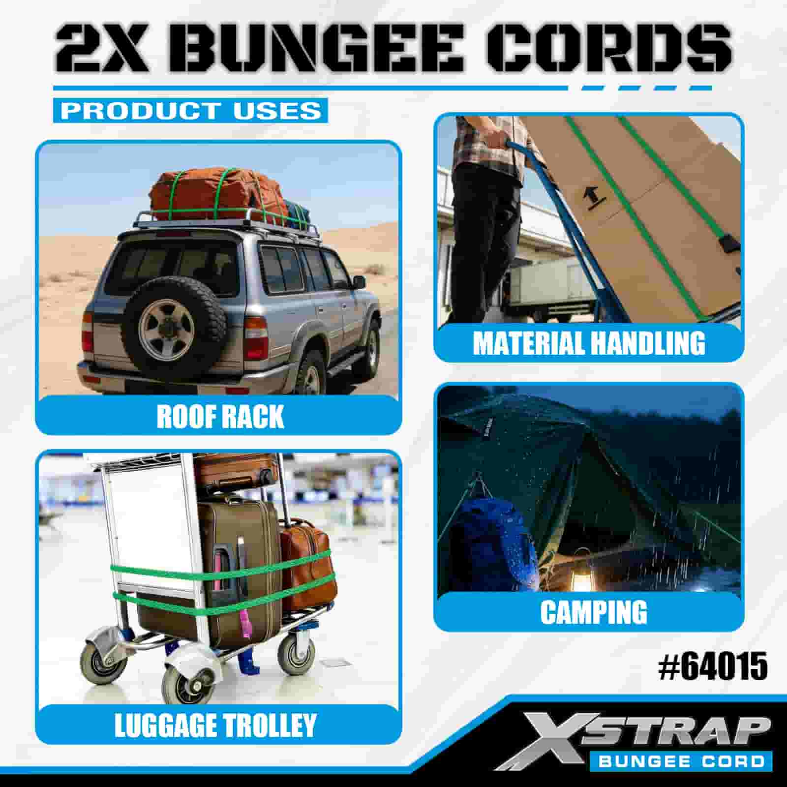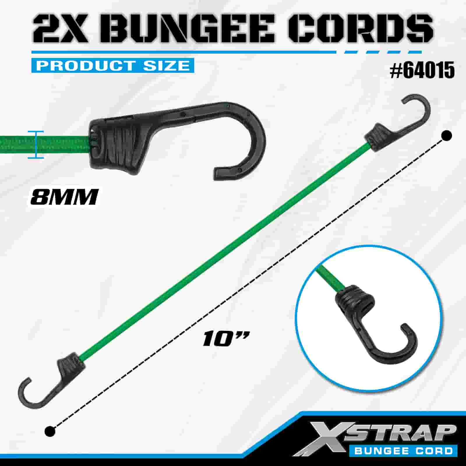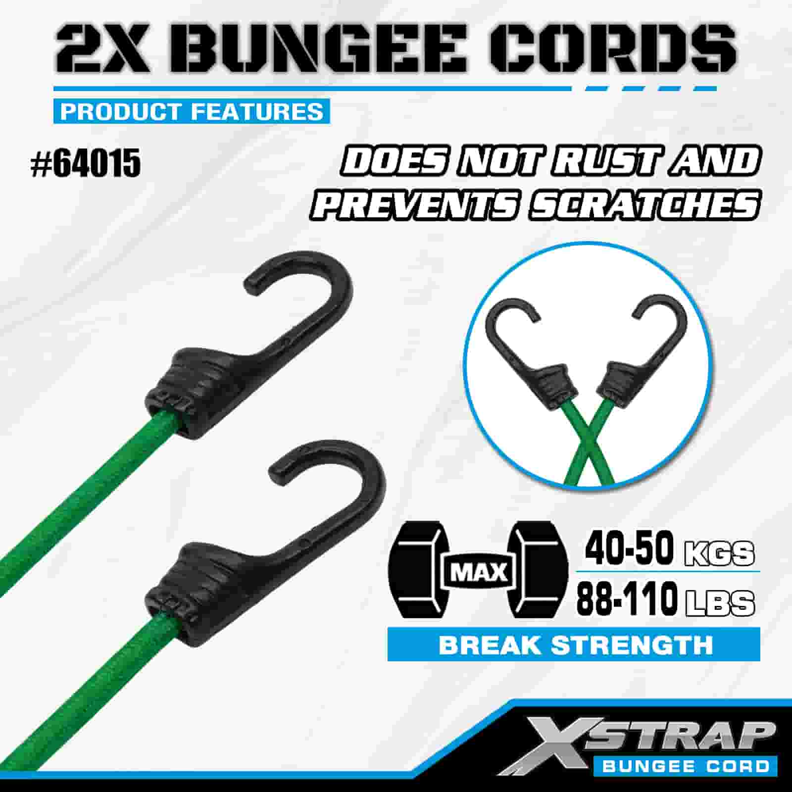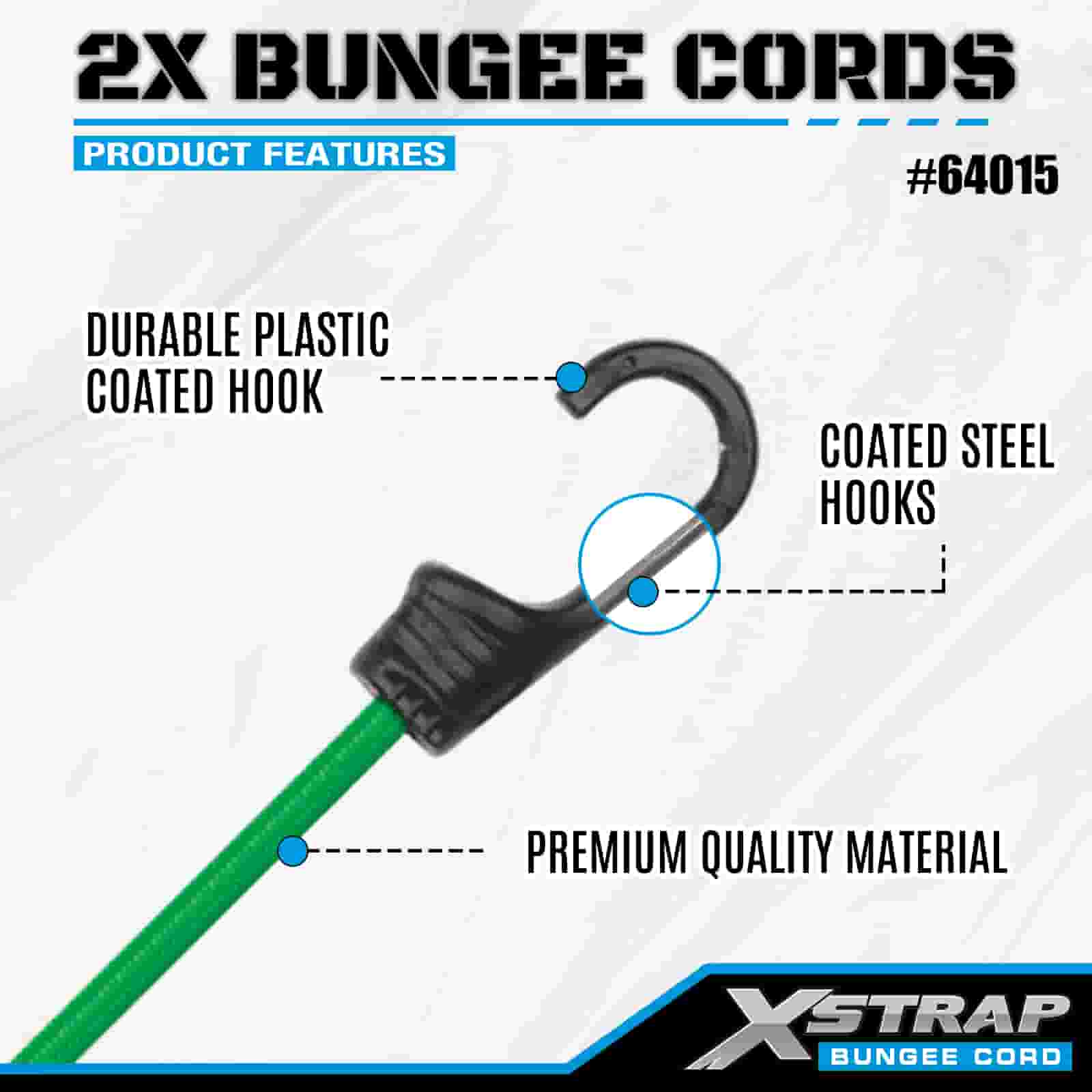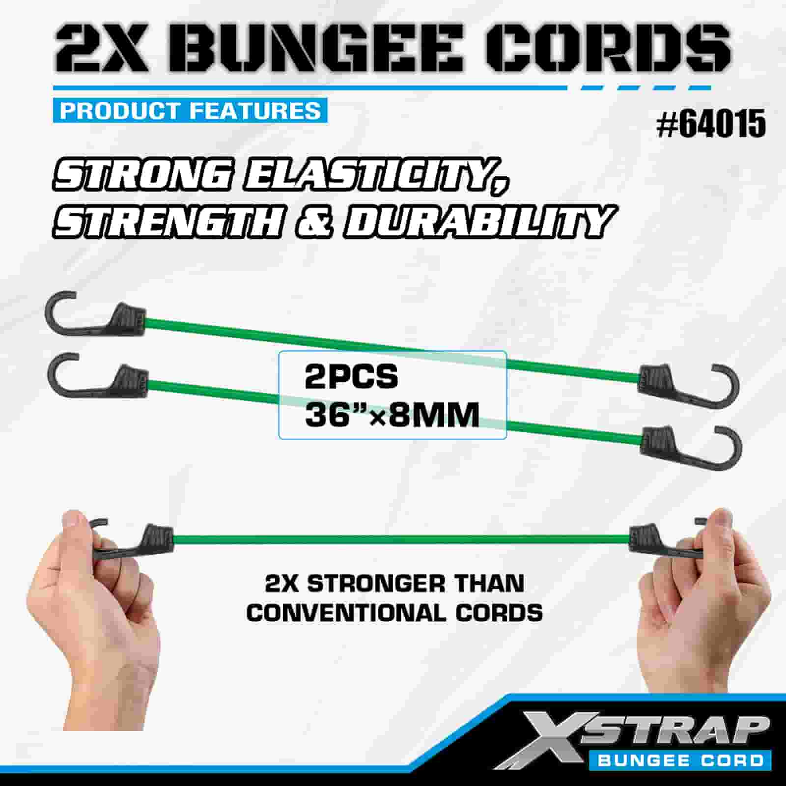 Xstrap 2PK 2X Bungee Cords 8 มม. x 36 นิ้ว, แรงแตกหัก 88-110 ปอนด์ พร้อมตะขอที่แข็งแรงสำหรับควบคุมสินค้า