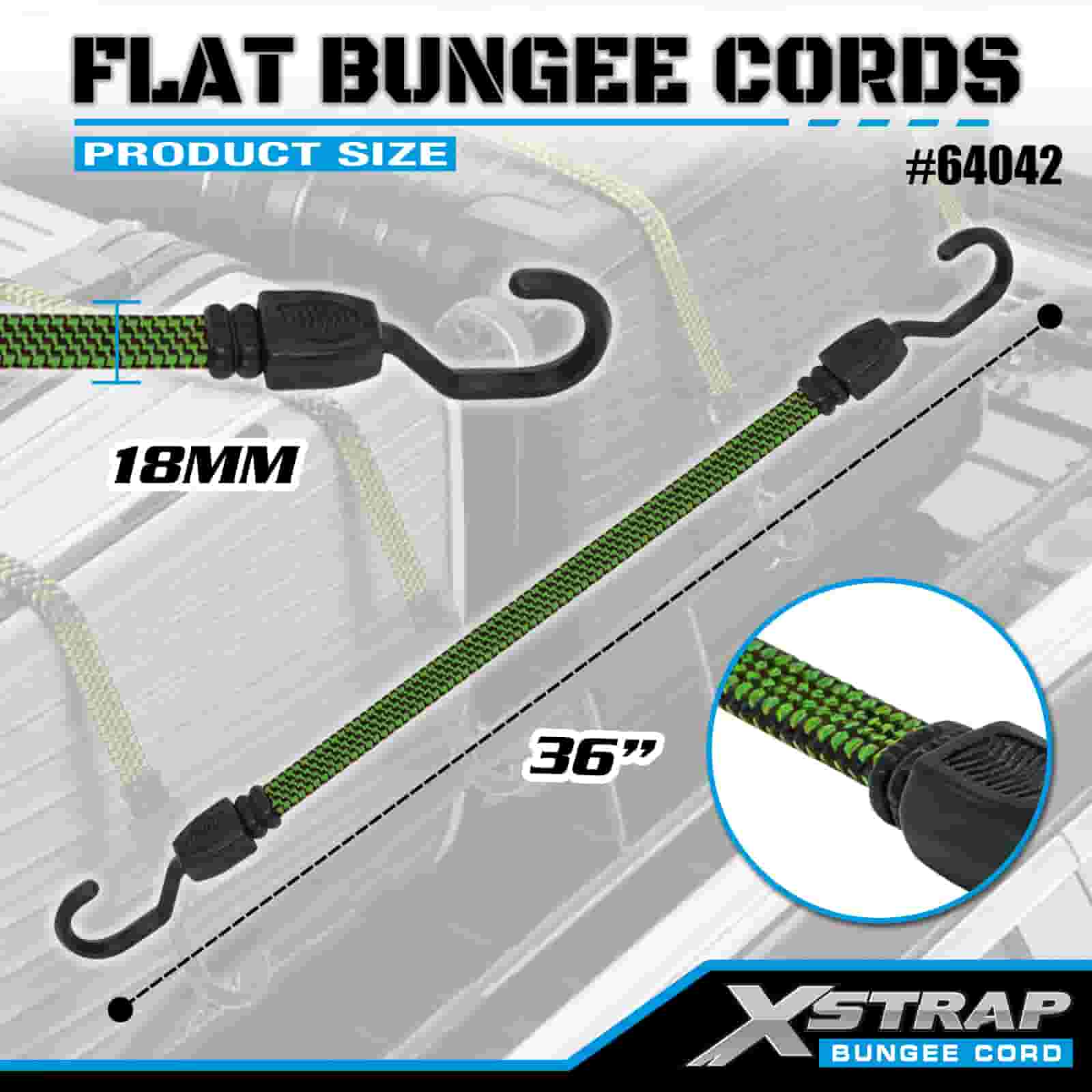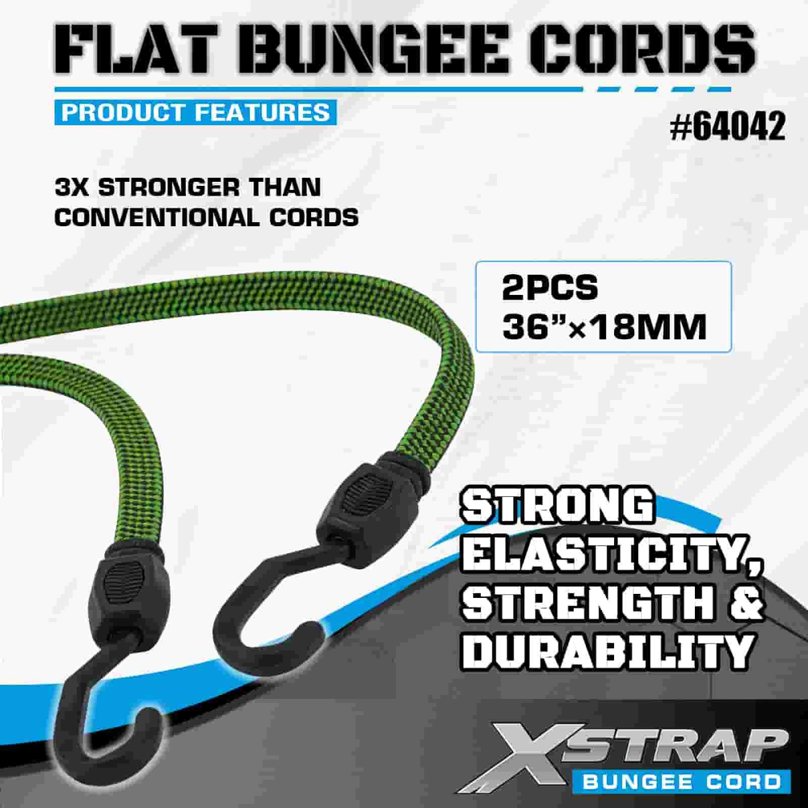 สายบันจี้จัม Xstrap 2PK 18 มม. x 36 นิ้ว แรงแตกหัก 132-165 ปอนด์พร้อมตะขอที่แข็งแรง เพื่อควบคุมสินค้า .