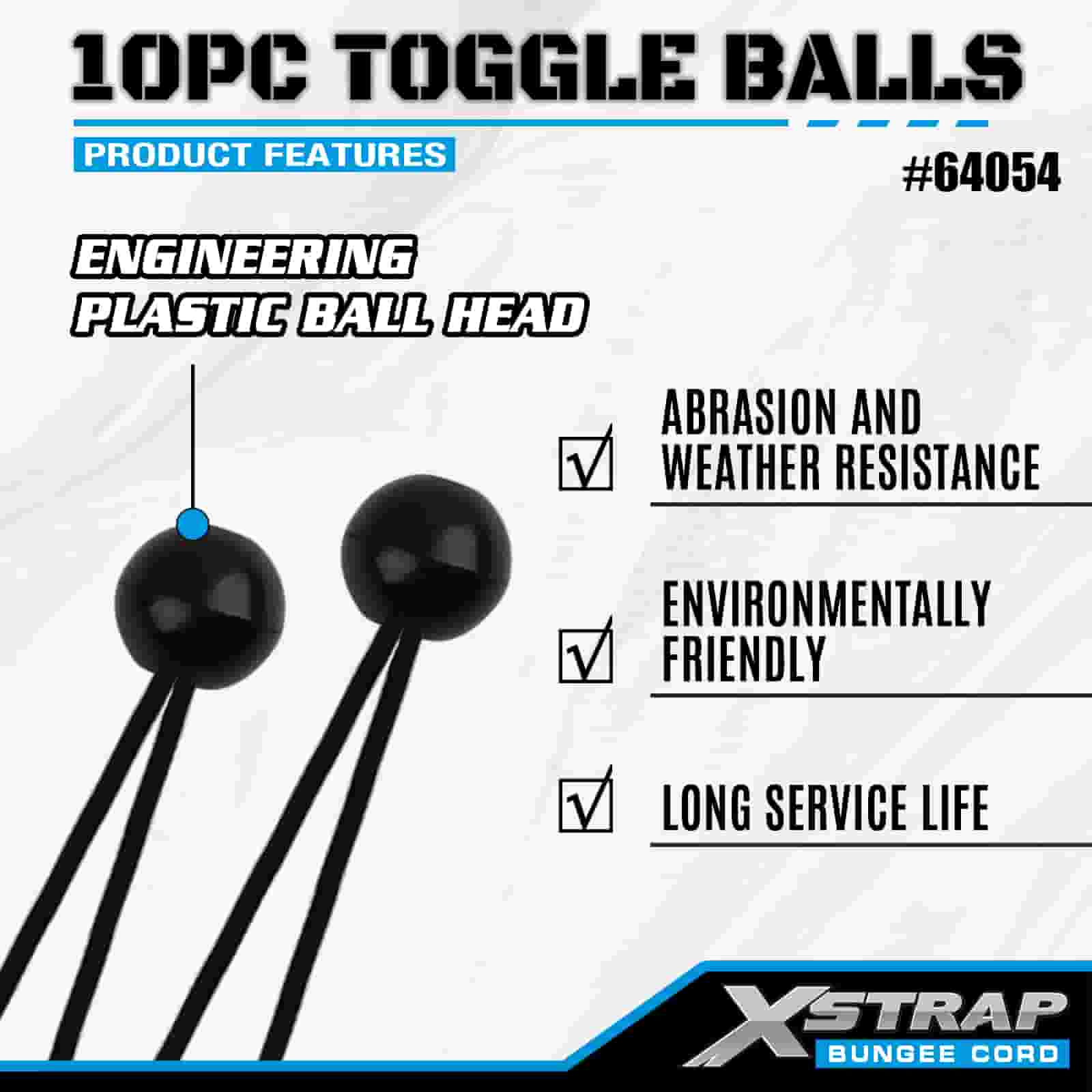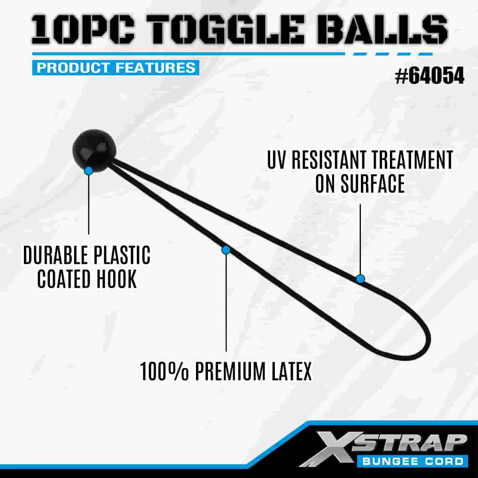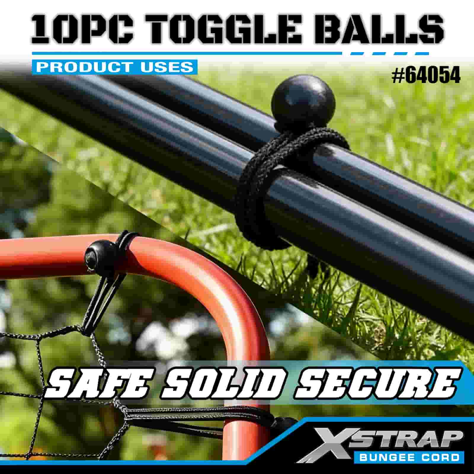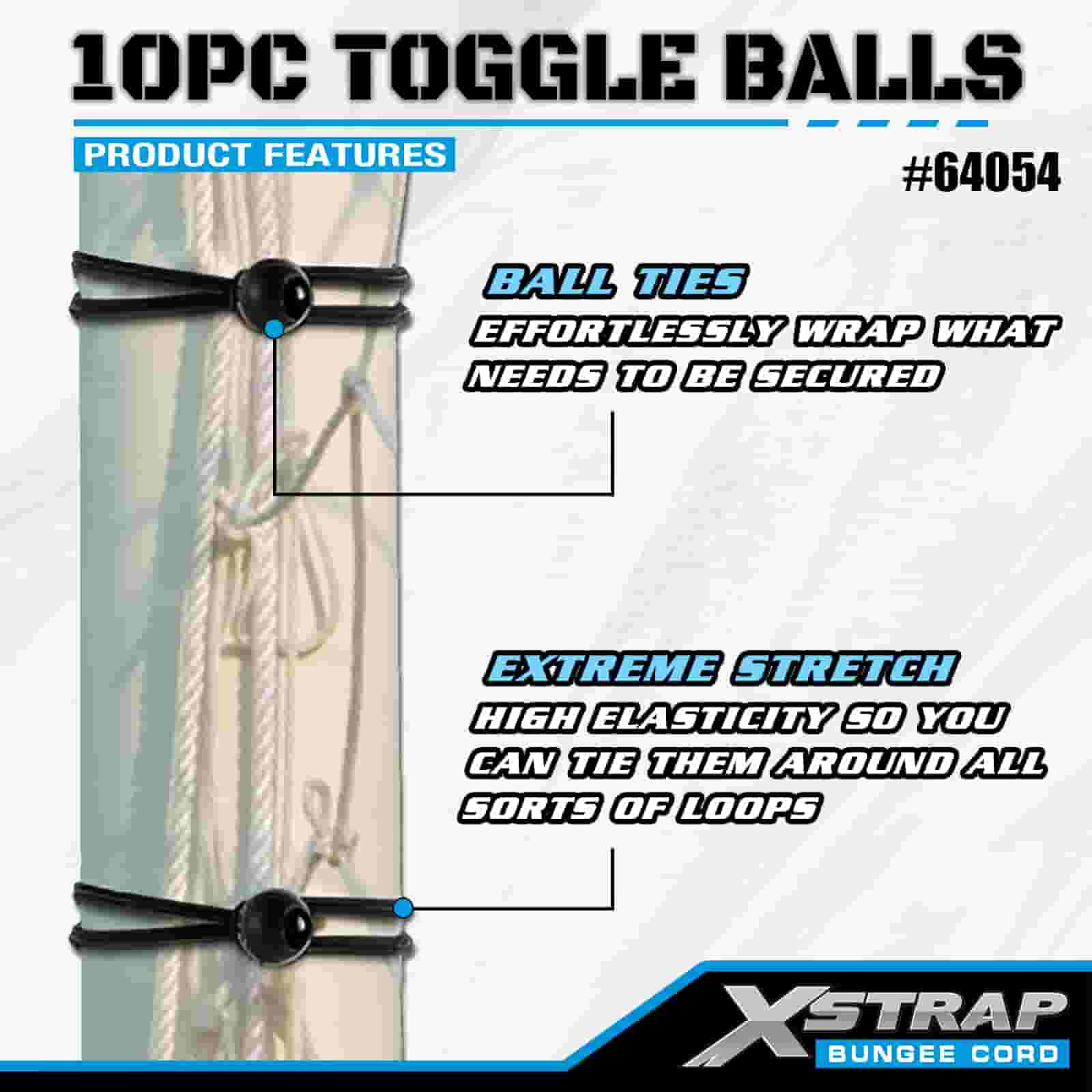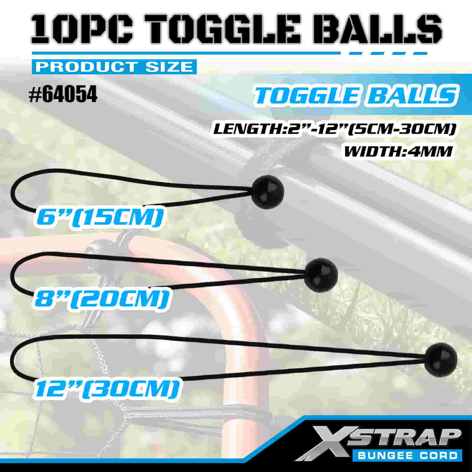 Xstrap 10PK Toggle Balls 4 มม. x 2”-12”, บันจี้บอลขนาดต่างๆ สำหรับการควบคุมสินค้า