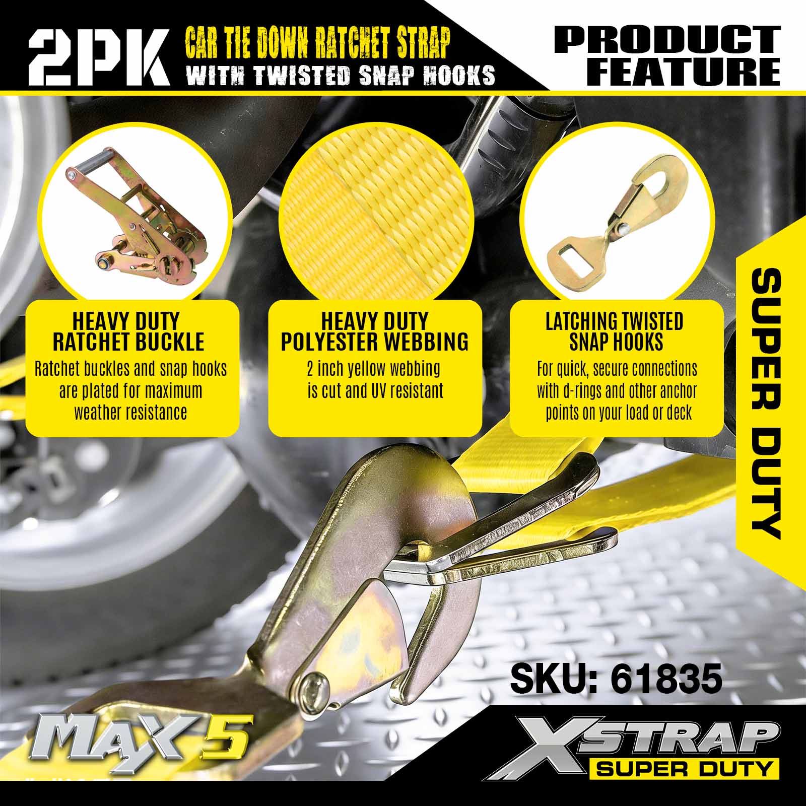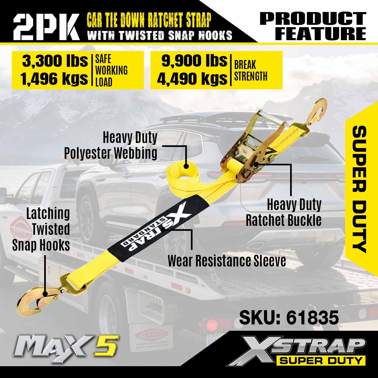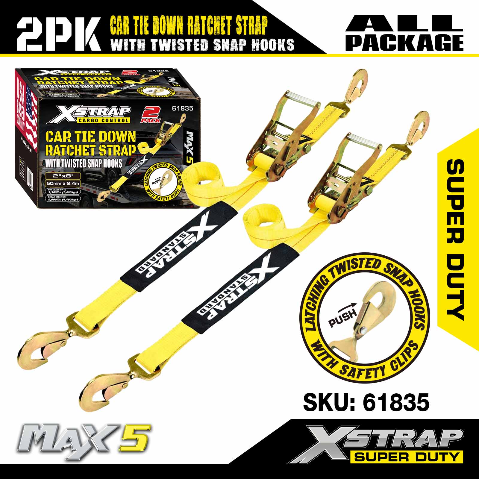 - การออกแบบแพ็ค 2 อเนกประสงค์: ชุด 2 ชิ้นสามารถใช้เพื่อยึดสิ่งของที่มีขนาดเล็ก (เช่น เพลาเดียวของยานพาหนะ) หรือเสริมชุดสายรัดทั้งชุดเพื่อความมั่นคงเป็นพิเศษ สายรัดแต่ละเส้นมีน้ำหนักเบาและพับง่าย พร้อมบรรจุภัณฑ์ขนาดกะทัดรัดที่พอดีกับช่องเก็บสัมภาระหรือกล่องเครื่องมือของรถพ่วง