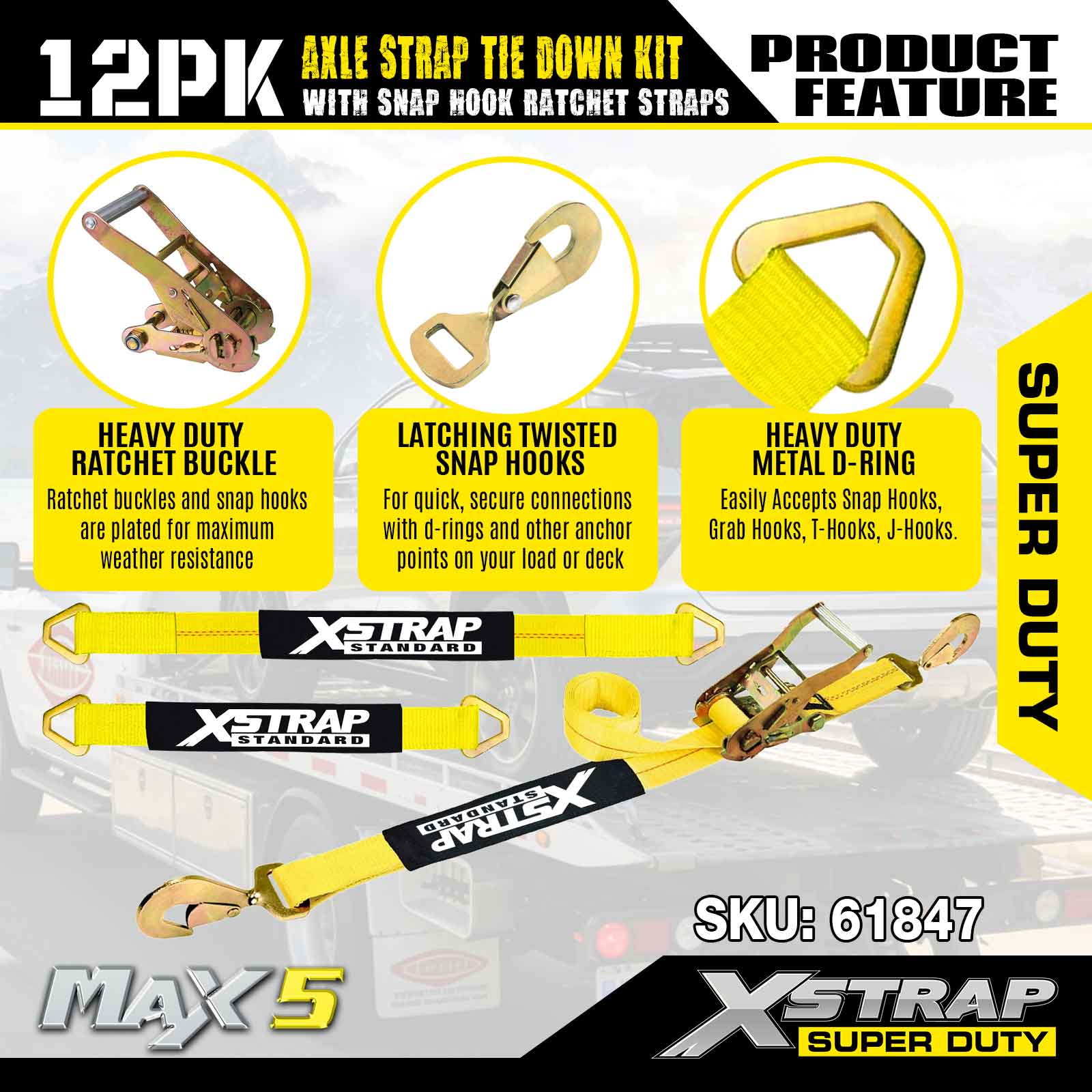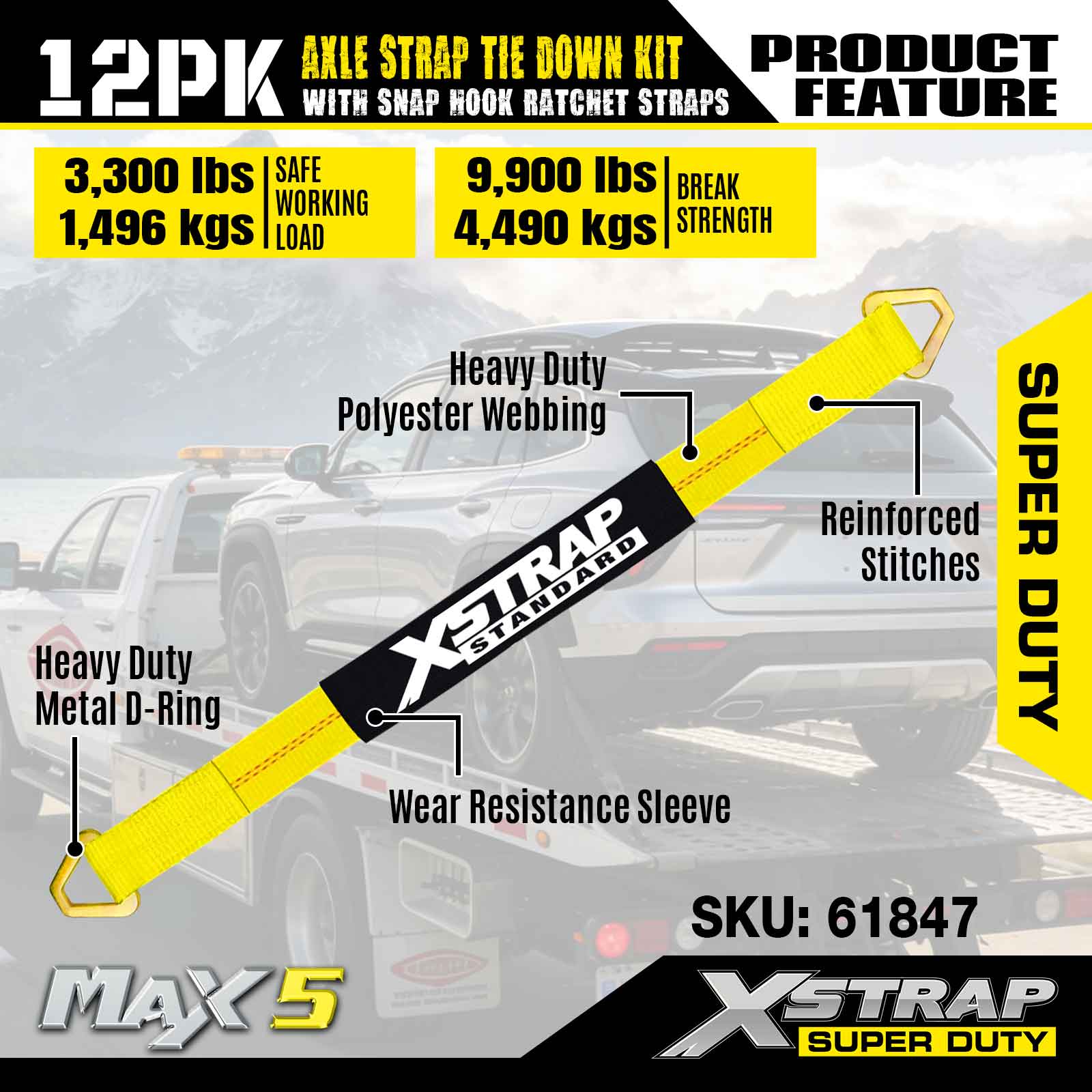 ชุดรัดสายรัดเพลา Xstrap 12PK (พร้อมสายรัดแบบตะขอเกี่ยว) – Super Duty มีภาระการทำงานที่ปลอดภัย 3,300LBS (1,496KGs) และความต้านทานการแตกหัก 10,000LBS (4,490KGs)