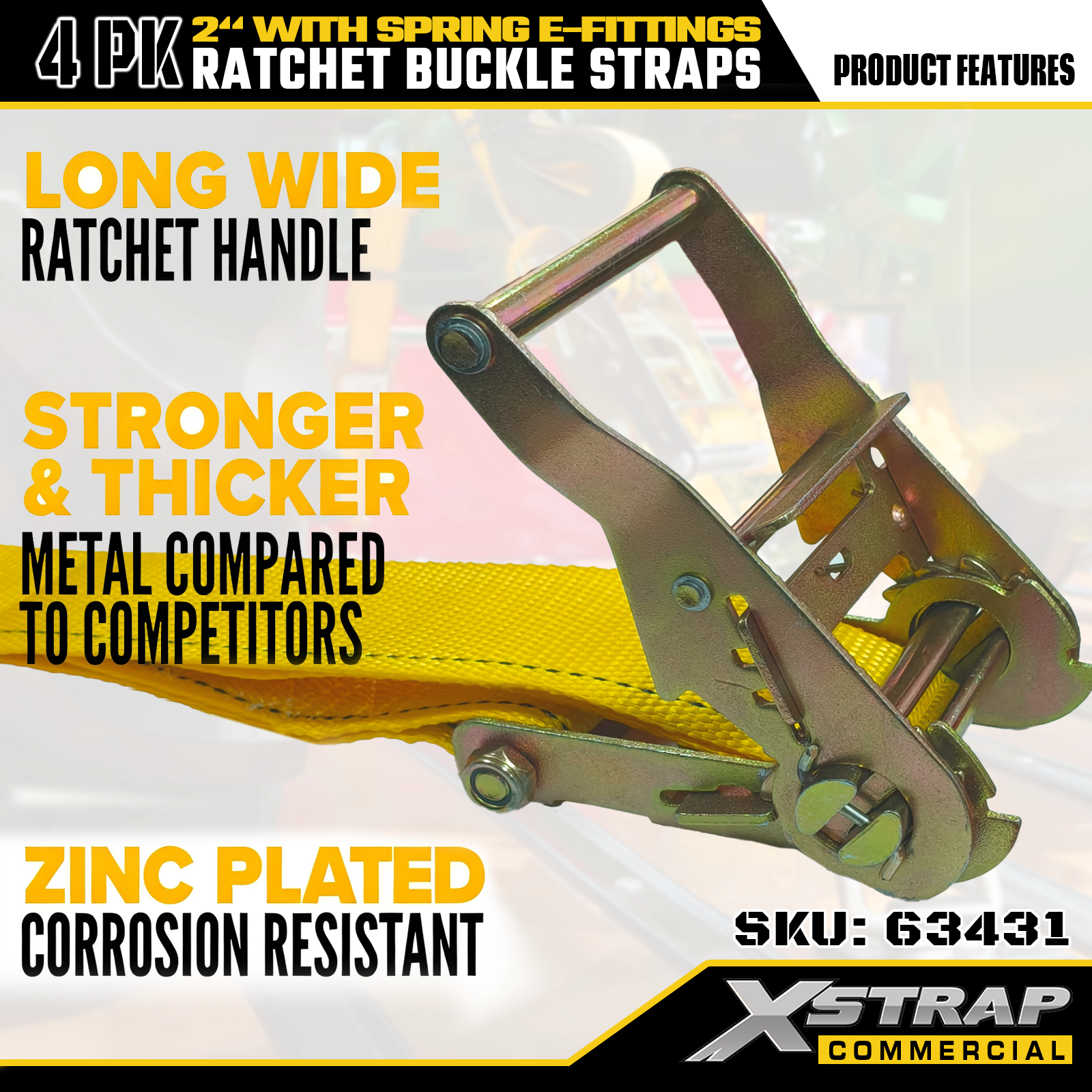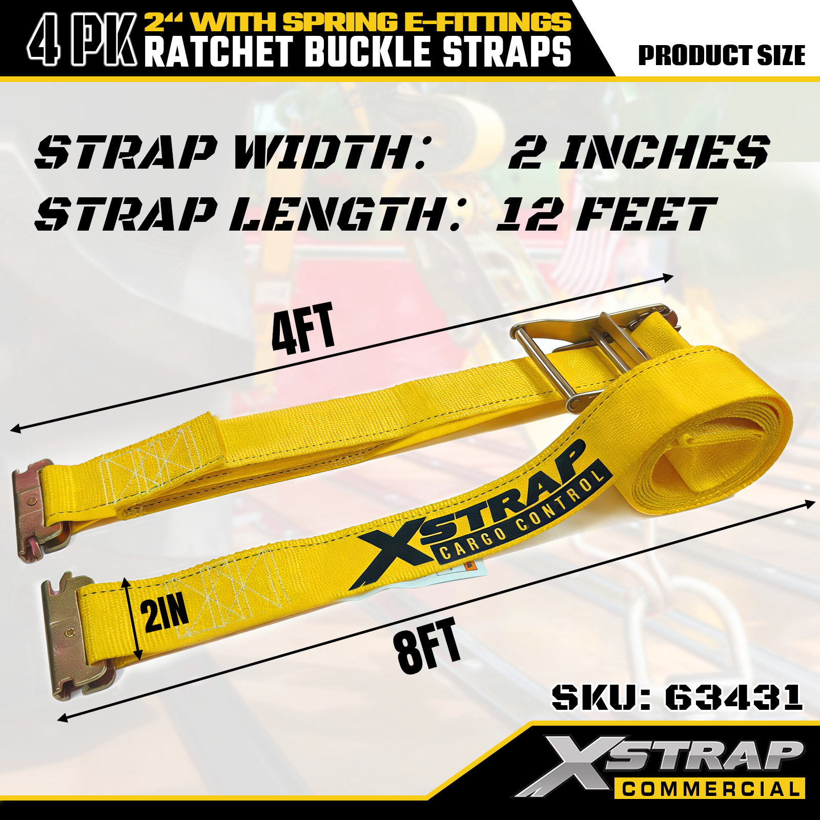 2" x 12' 4PK สายรัดหัวเข็มขัดวงล้อพร้อมสปริง E-Fittings