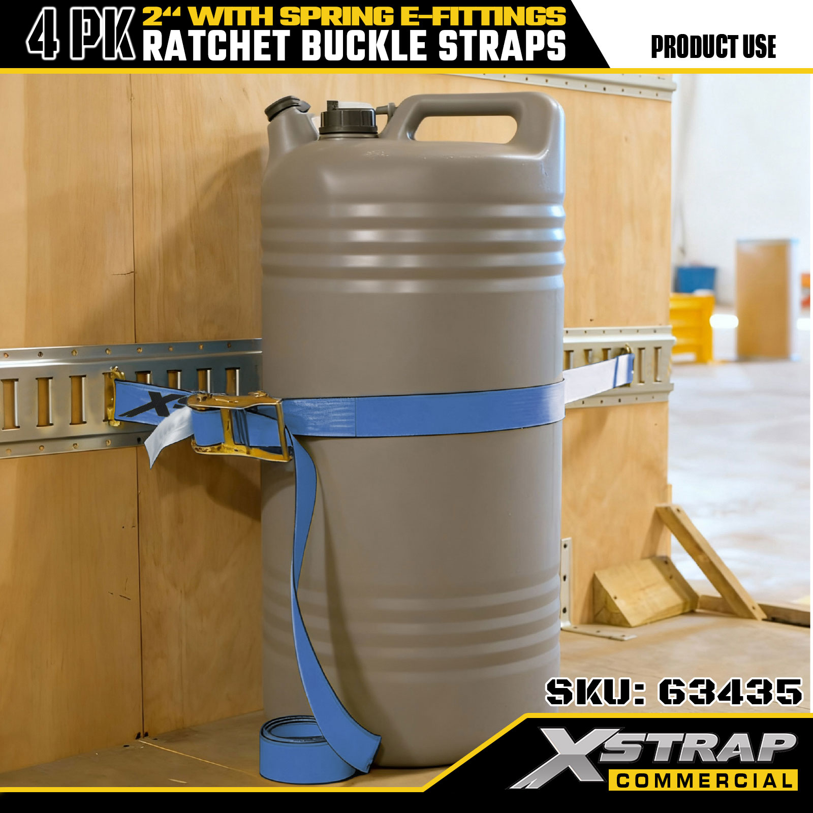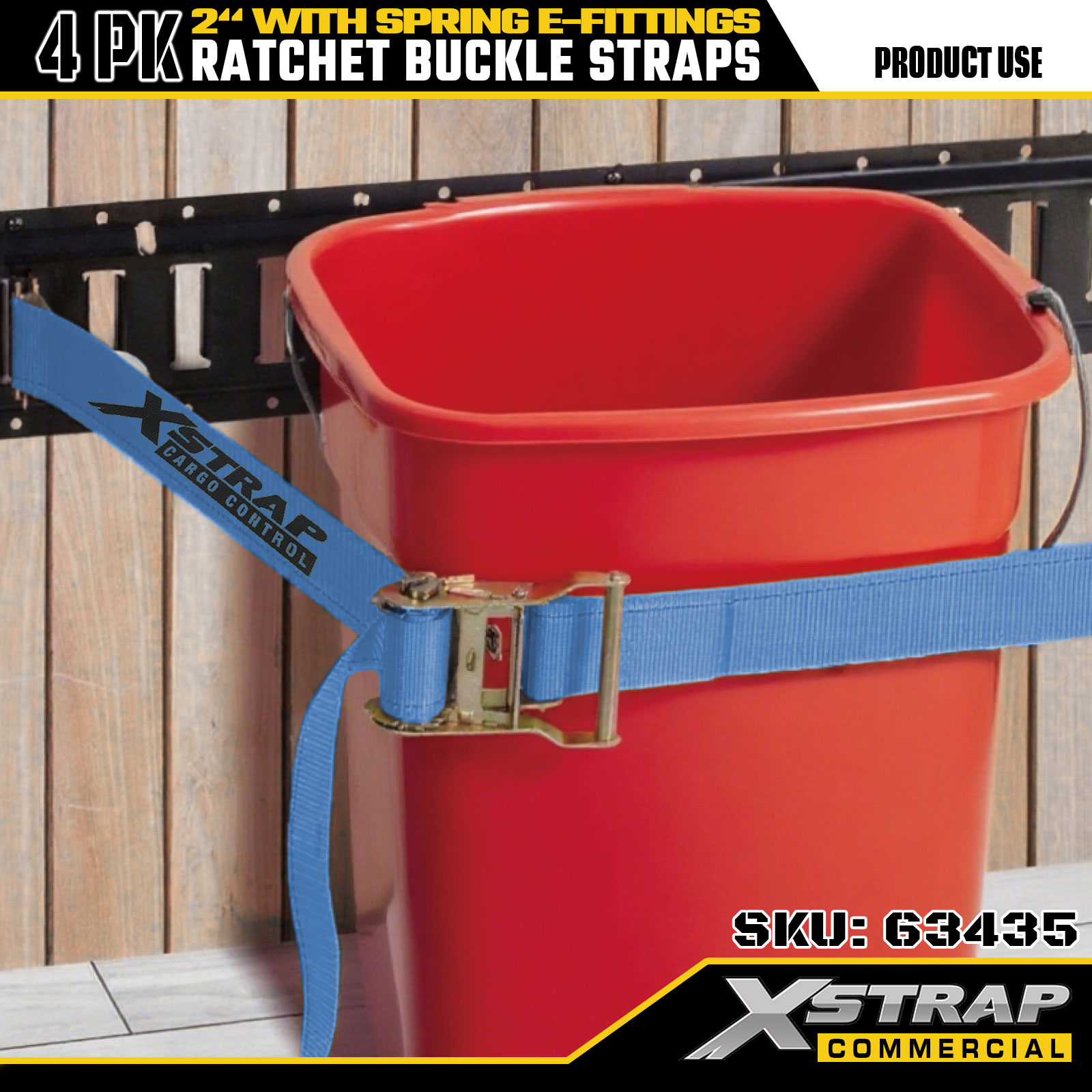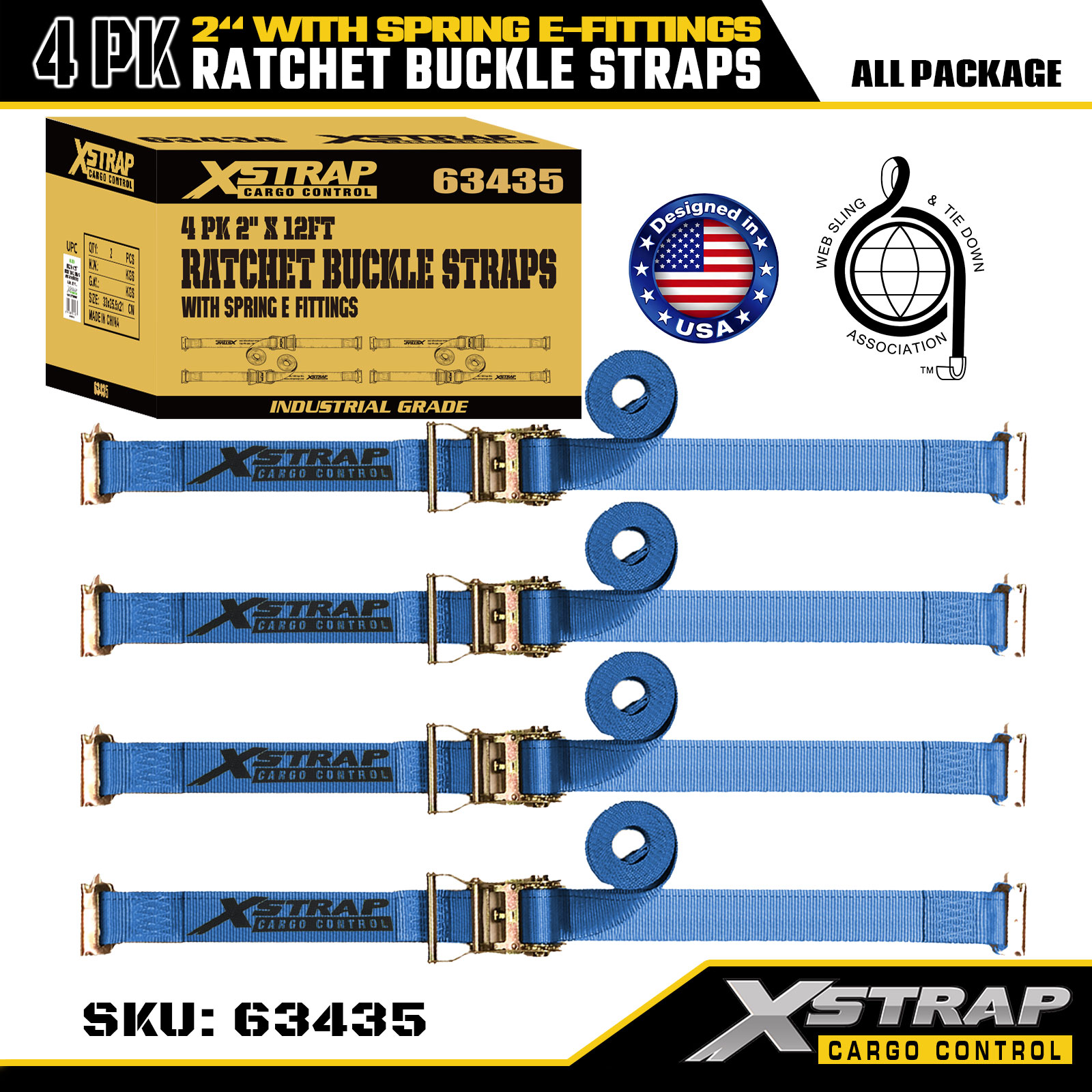 สายรัด Xstrap 4 Pack Ratchet Tie-Down, สายรัดยึดสินค้าโพลีเอสเตอร์ขนาด 2" x 12' พร้อมฟิตติ้ง E แบบสปริง, น้ำหนักบรรทุกการทำงานที่ปลอดภัย (SWL) 1467 ปอนด์ และความแข็งแกร่งในการแตกหัก 4401 ปอนด์ สำหรับรถบรรทุก เครื่องตัดหญ้า รถ ATV