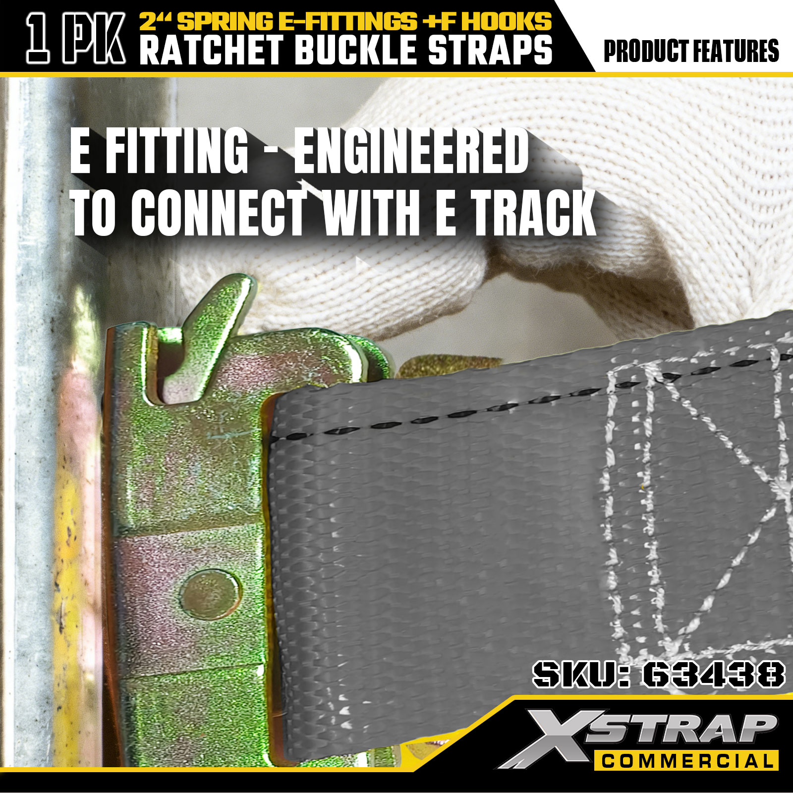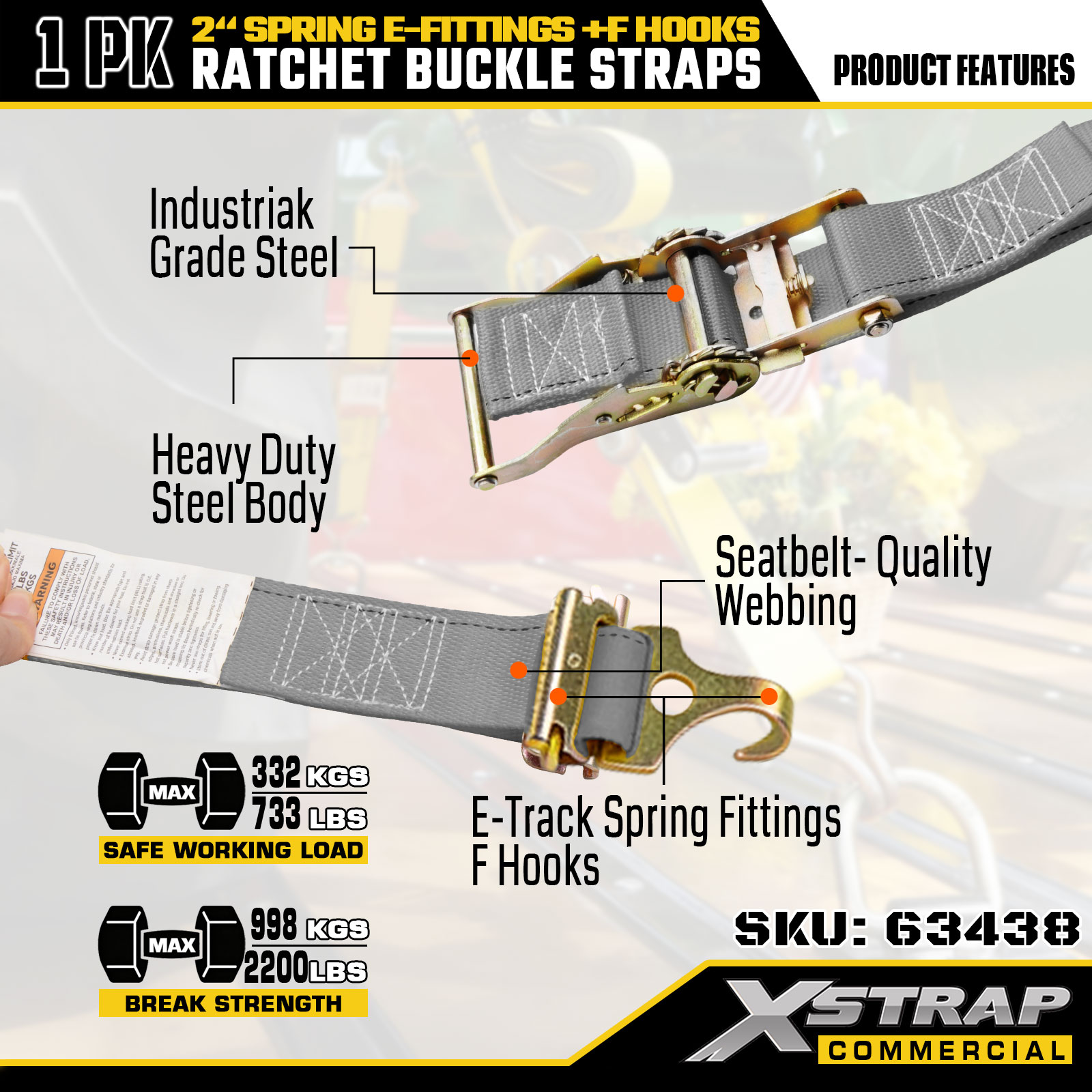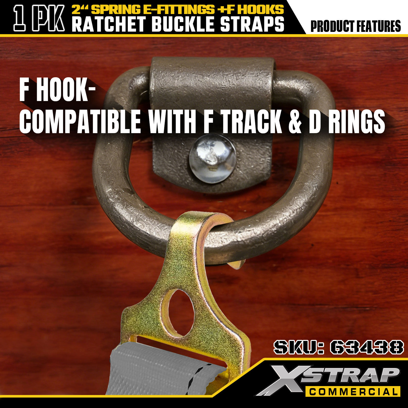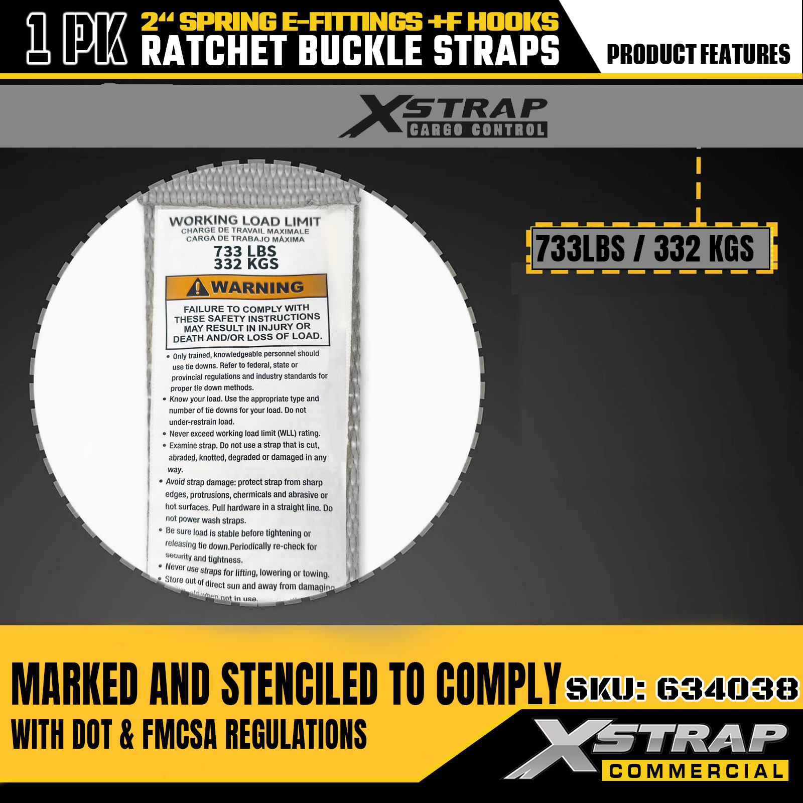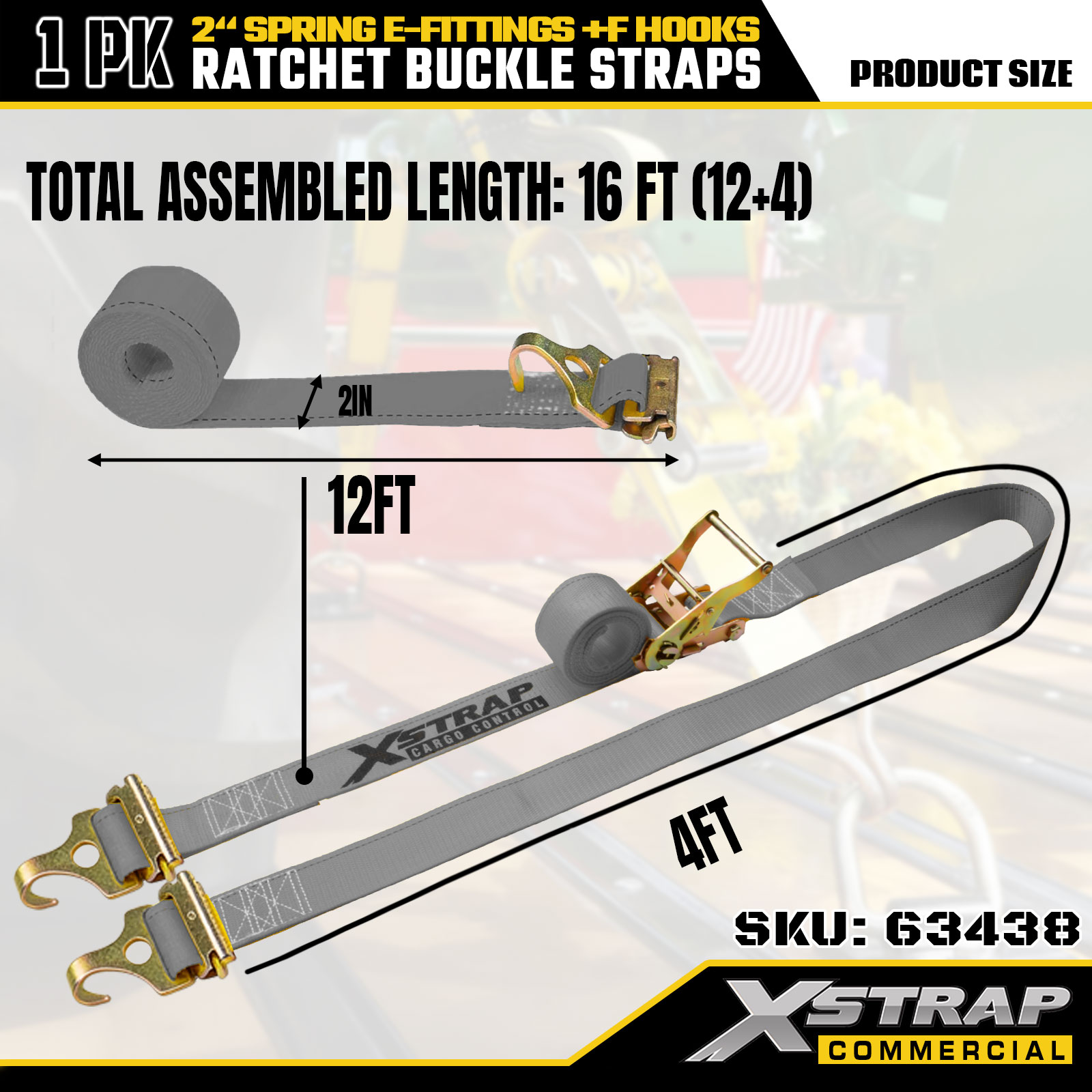 Xstrap 1 Pack สายรัดแบบผูกวงล้อ 2" x 16' โพลีเอสเตอร์พร้อมสปริง E-Fitting และตะขอ F, 733 ปอนด์ SWL และ 332 ปอนด์ ความแข็งแกร่งในการแตกหักสำหรับรถบรรทุก การเคลื่อนย้าย การขนส่งสินค้าทั่วไป