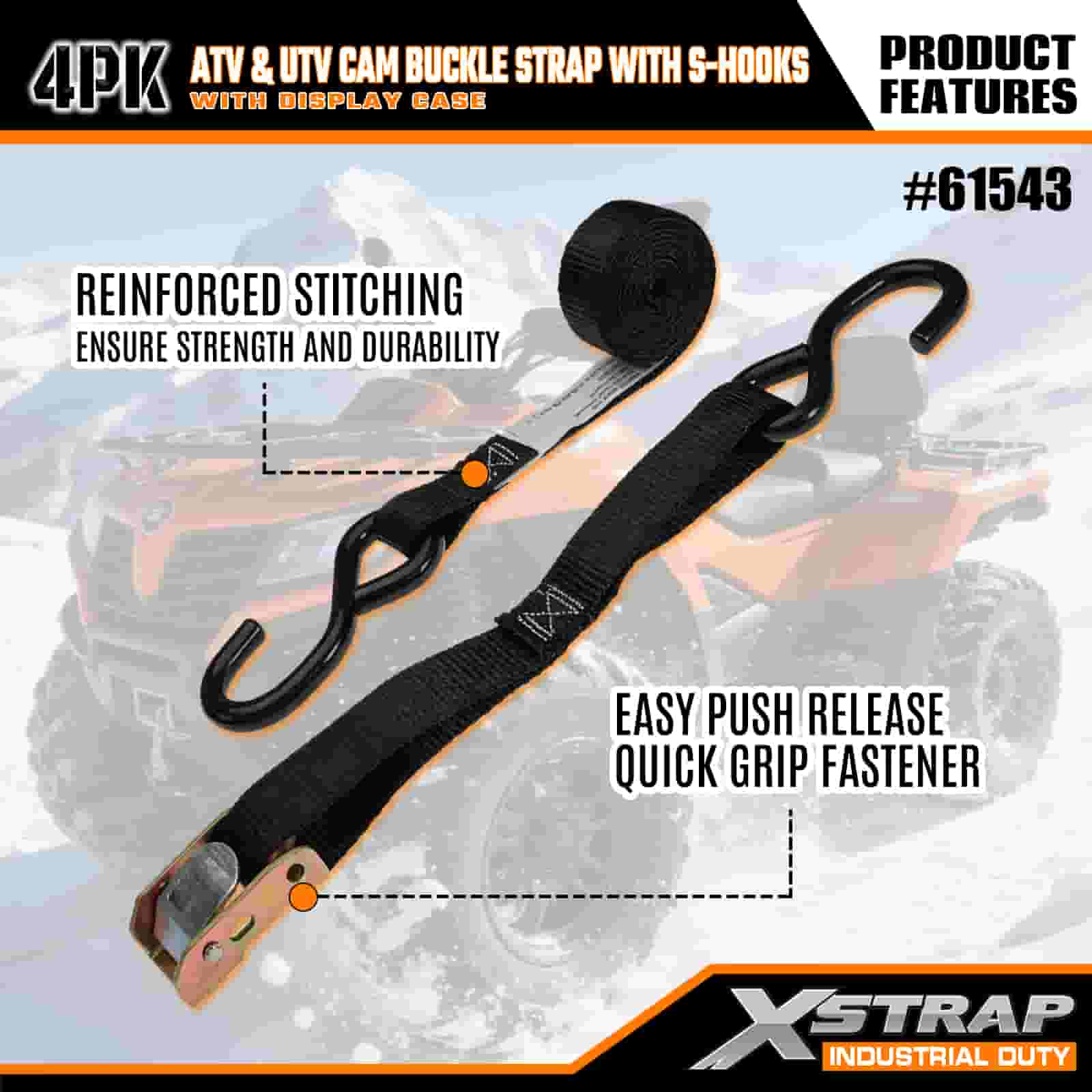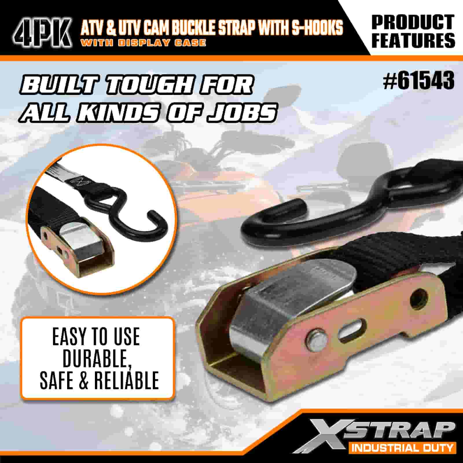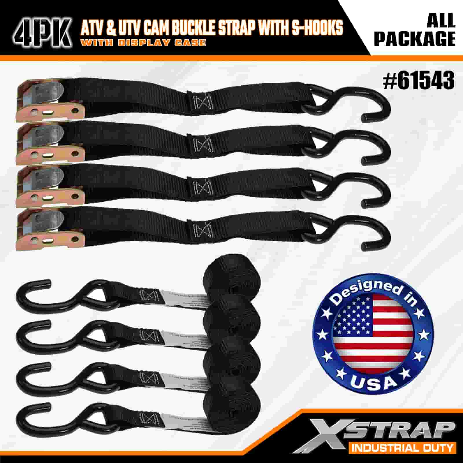 Xstrap 4PK สายรัดหัวเข็มขัด ATV และ AUV พร้อมตะขอ S, สายรัดโพลีเอสเตอร์แบบผูกขนาด 1” x 6’ สายรัดหัวเข็มขัดแบบวงล้อดึง, สายรัดยึดสายรัดบรรทุกสินค้าความจุ 400 ปอนด์พร้อมตะขอ S สำหรับมืออาชีพที่จริงจังในการรักษาความปลอดภัยของรถพ่วงบรรทุกสินค้า, รถพ่วงพื้นเรียบ, เรือสกี, รถยนต์ขนาดเล็ก