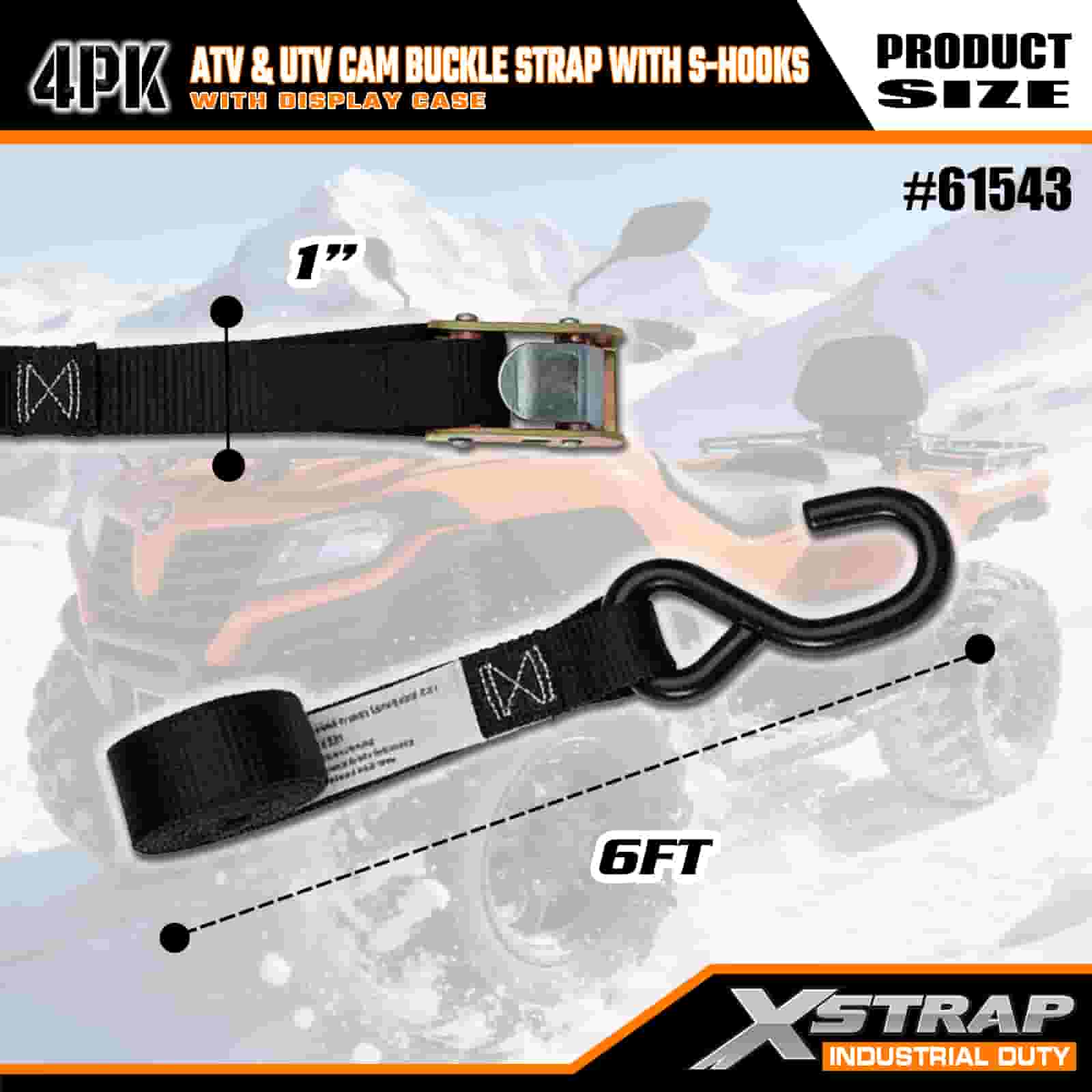 สายรัดหัวเข็มขัดแคม ATV และ AUV ขนาด 1” x 6’ 4PK พร้อมตะขอรูปตัว S