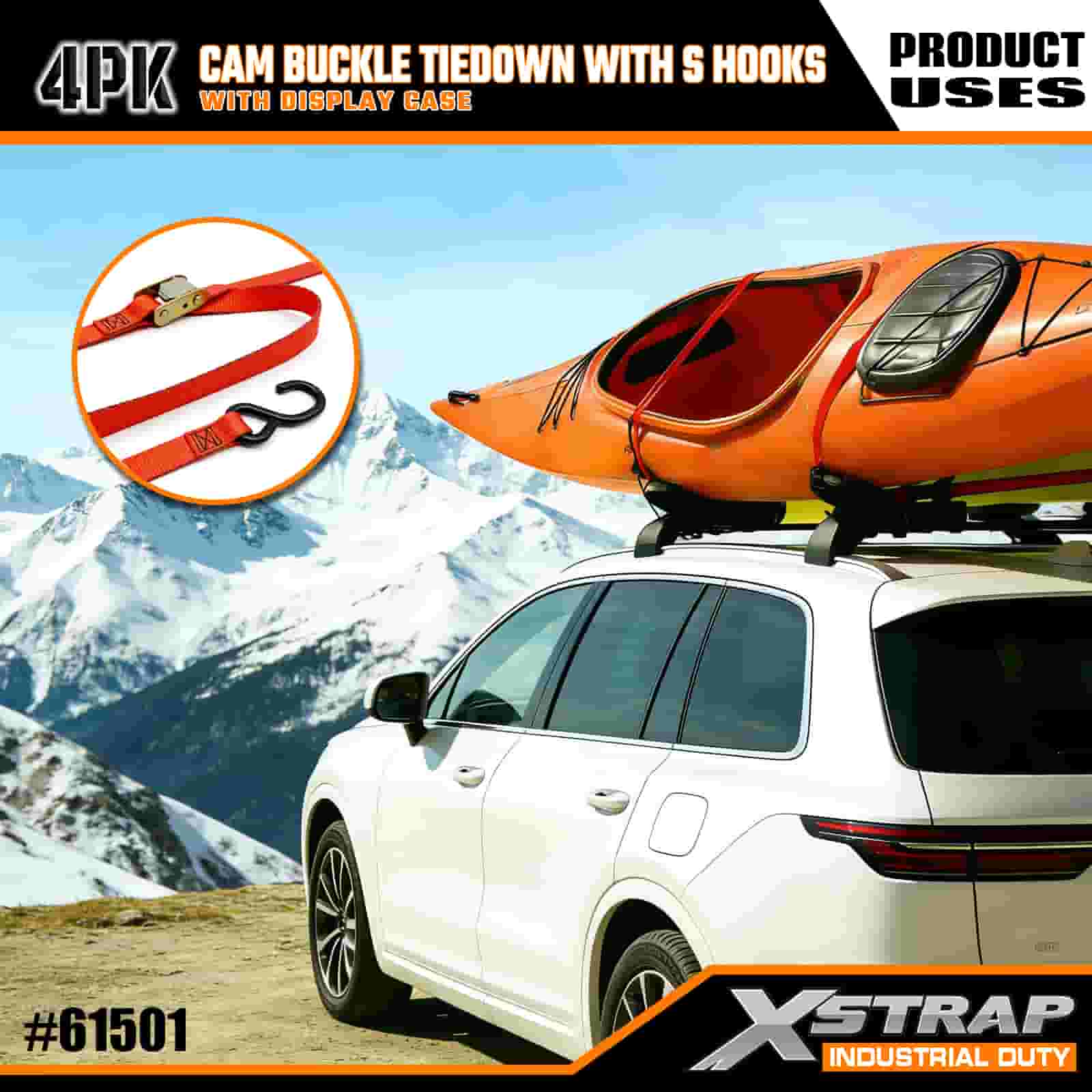 - แพ็ค 4 ชิ้นที่ใช้งานได้จริงพร้อมกล่องใส่จอแสดงผล: ขายเป็นชุด 4 ชิ้น (พร้อมบรรจุภัณฑ์สำหรับใส่จอแสดงผล) สำหรับการใช้งานเป็นชุด และสายรัดแต่ละเส้นมีขนาดกว้าง 2 นิ้ว × ยาว 6 ฟุต ซึ่งเหมาะสำหรับการยึดสิ่งของต่างๆ เช่น เรือคายัค อุปกรณ์กลางแจ้ง หรือสินค้า