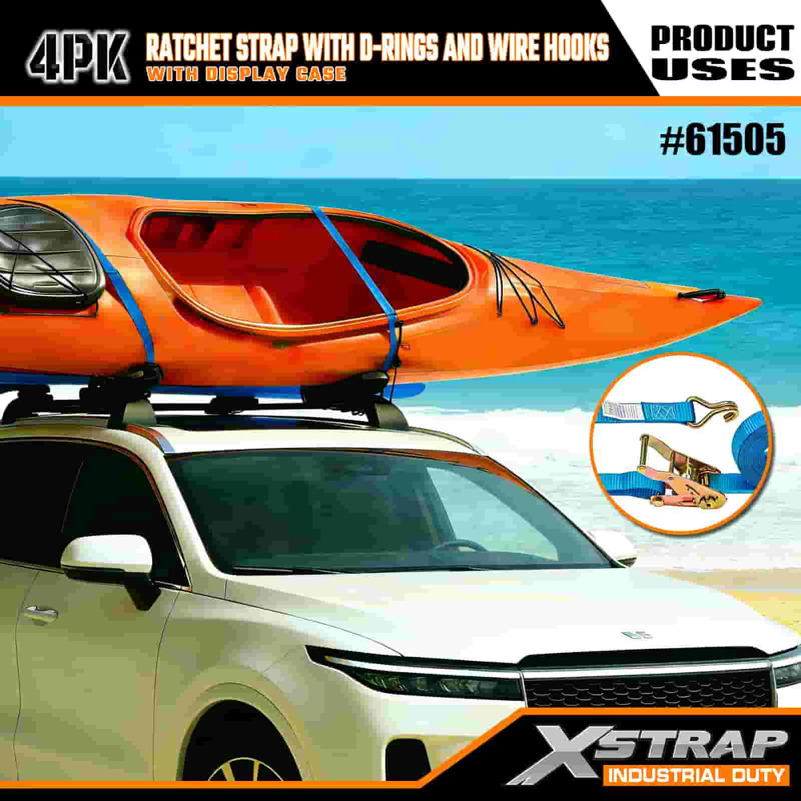 - แพ็ค 4 ชิ้นที่ใช้งานได้จริงพร้อมกล่องใส่จอแสดงผล: ขายเป็นชุด 4 ชิ้น (พร้อมบรรจุภัณฑ์สำหรับใส่จอแสดงผล) สำหรับการใช้งานเป็นชุด และสายรัดแต่ละเส้นมีขนาดกว้าง 1 นิ้ว × ยาว 15 ฟุต ซึ่งเหมาะสำหรับการยึดสิ่งของต่างๆ เช่น เรือคายัค อุปกรณ์กลางแจ้ง หรือสินค้าหนัก