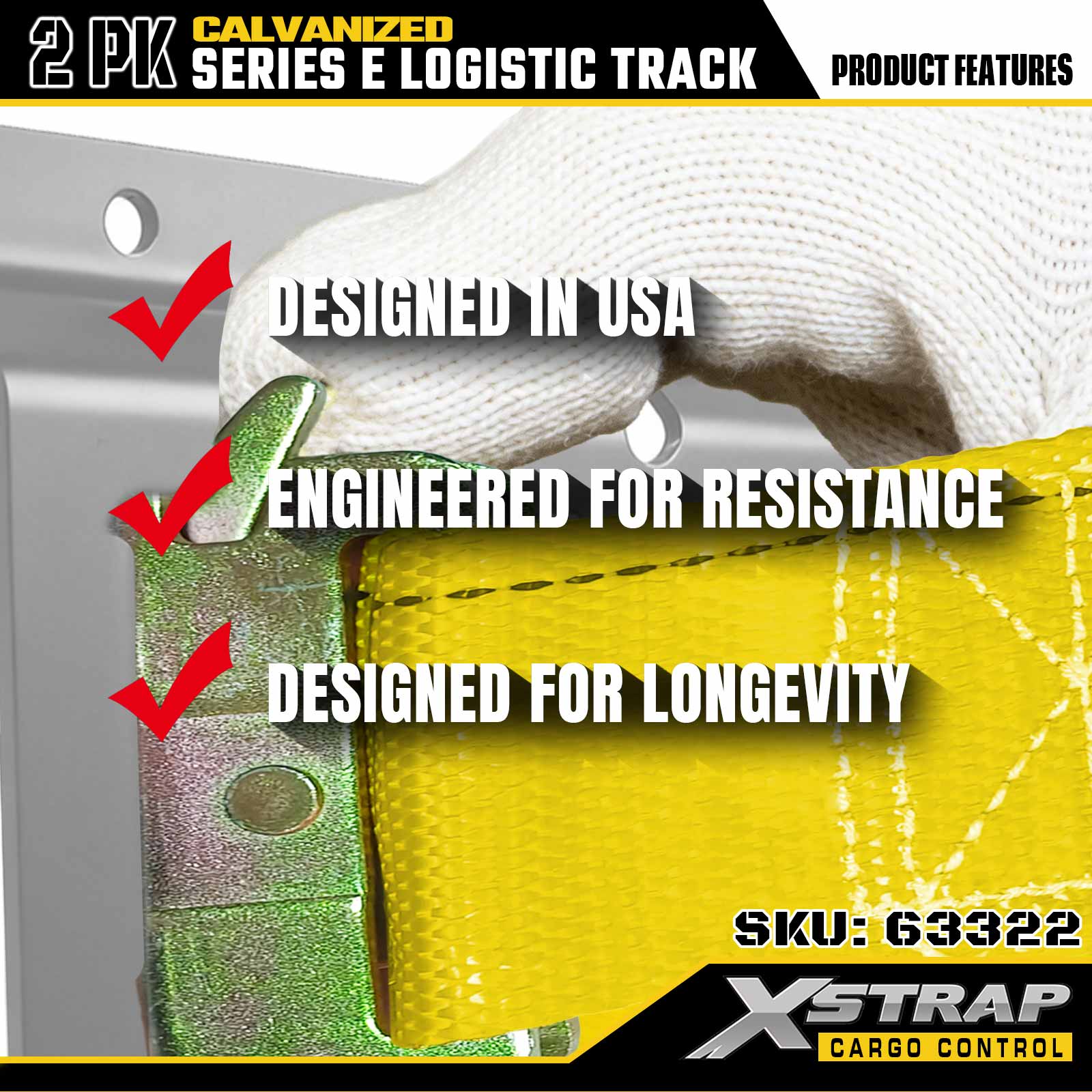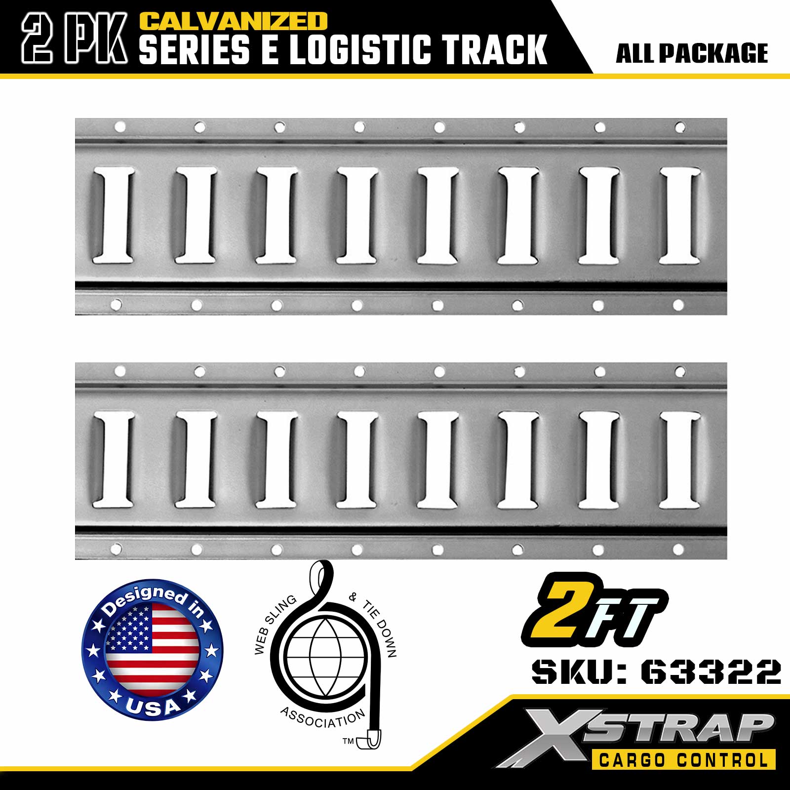 Xstrap 63322 รางสินค้า E-Type สีเงินชุบไฟฟ้า 2 ฟุต - เหล็ก 12 เกจเคลือบสังกะสี, อัตราการโหลด 6000LBS, 2PK สำหรับ