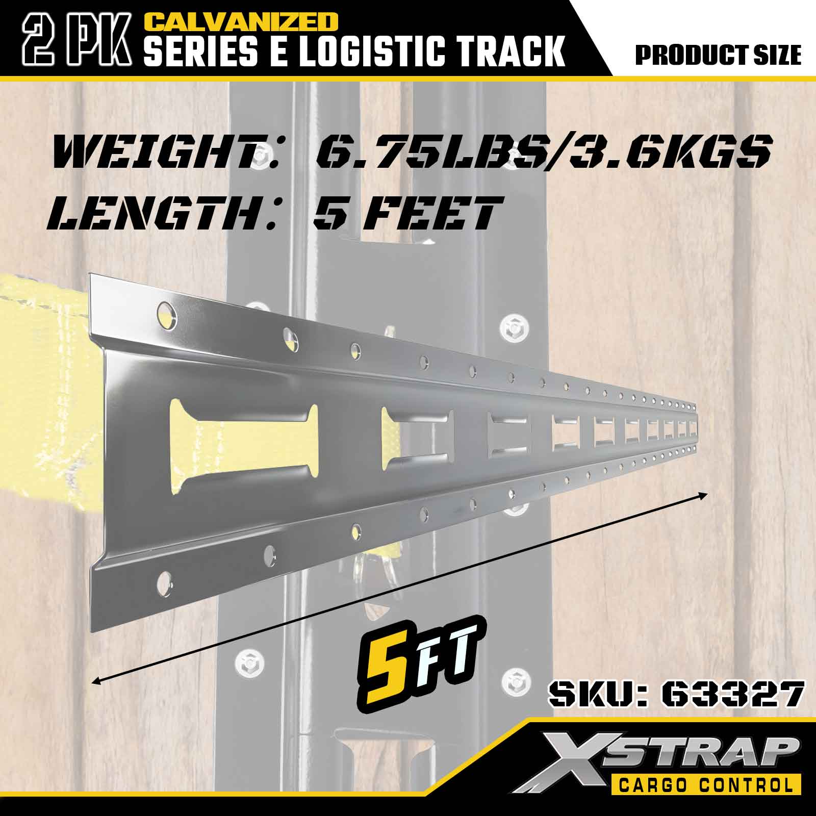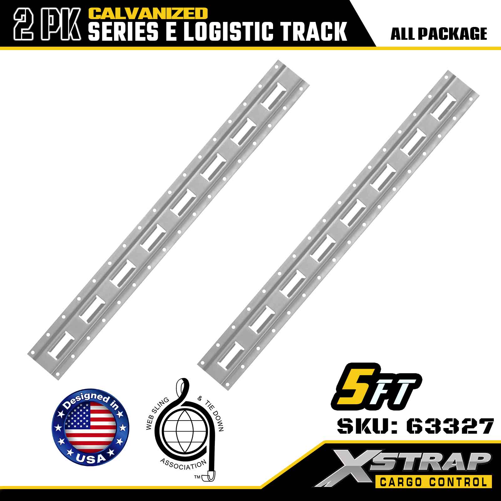 Xstrap 63327 รางผูกสินค้า E-Track Cargo ชุบเงินไฟฟ้า 5 ฟุต - เหล็ก 12 เกจพร้อมชุบสังกะสีแบบจุ่มร้อน ความจุน้ำหนัก 6000LBS แพ็ค 2 ชิ้นสำหรับการรักษาความปลอดภัยโหลด