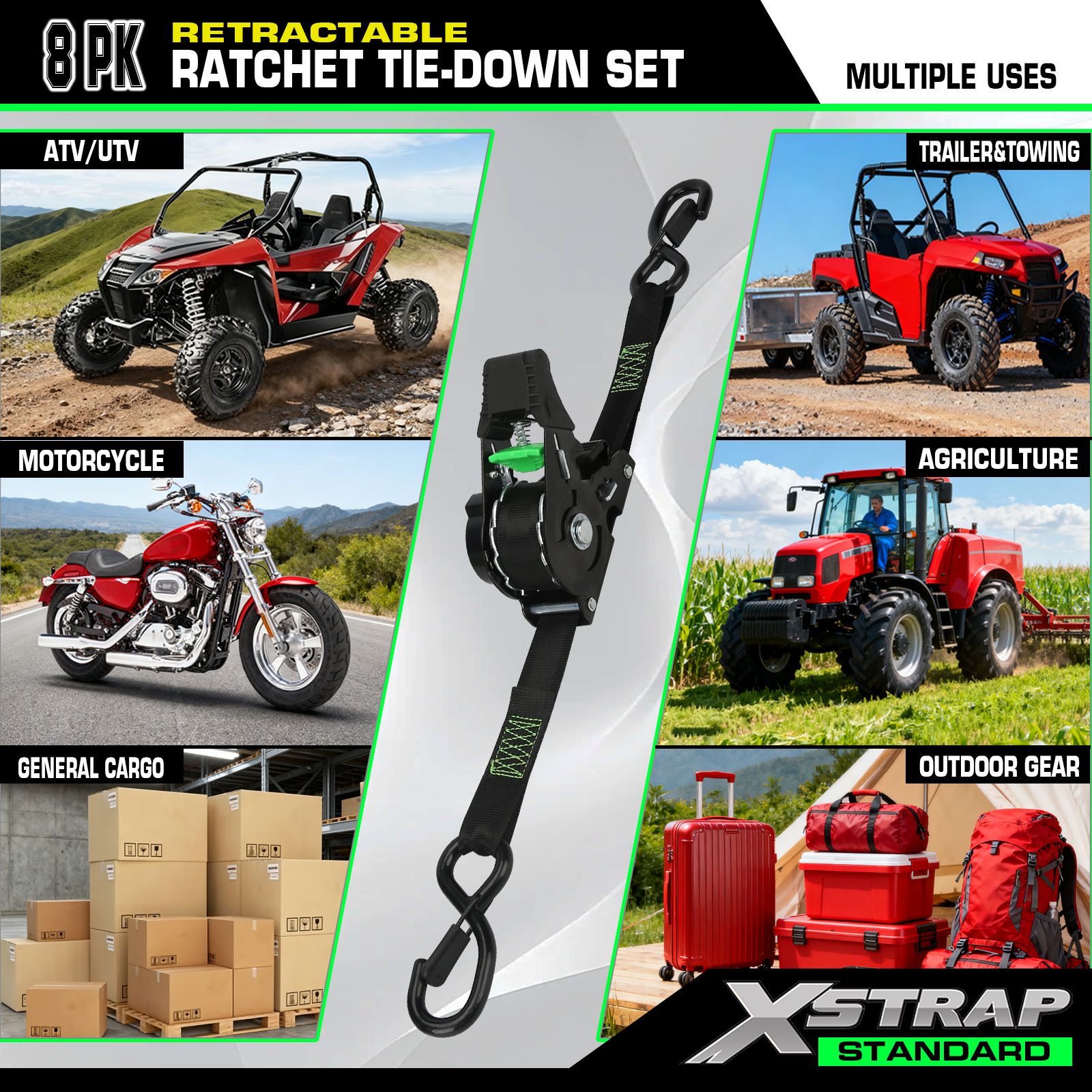 กลุ่มผลิตภัณฑ์ประกอบด้วยสายรัด สายบันจี้จัม สายพ่วง สลิงยก รอก และอุปกรณ์เสริมสำหรับรถ 4x4 ที่ใช้กันอย่างแพร่หลายในภาคการขนส่ง โลจิสติกส์ กลางแจ้ง และอุตสาหกรรม แบรนด์ภายในบริษัท XSTRAP ได้รับการยอมรับอย่างแข็งแกร่งในตลาดโลกควบคู่ไปกับความยืดหยุ่น บริการ OEM/ODM สำหรับความต้องการที่กำหนดเอง