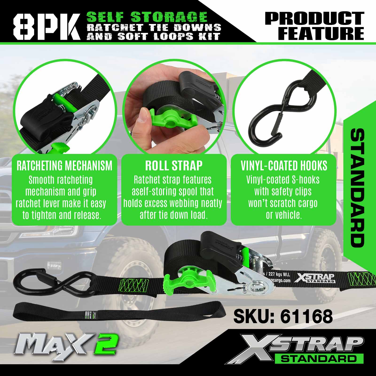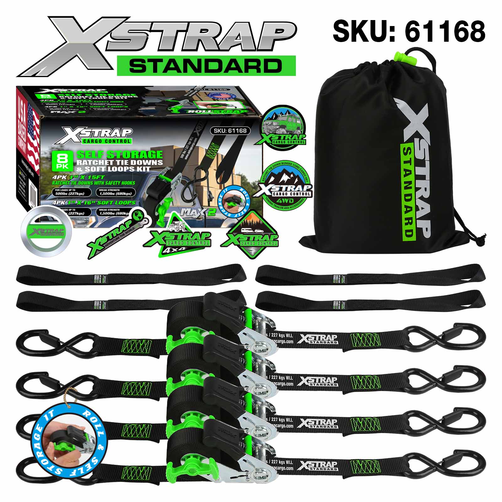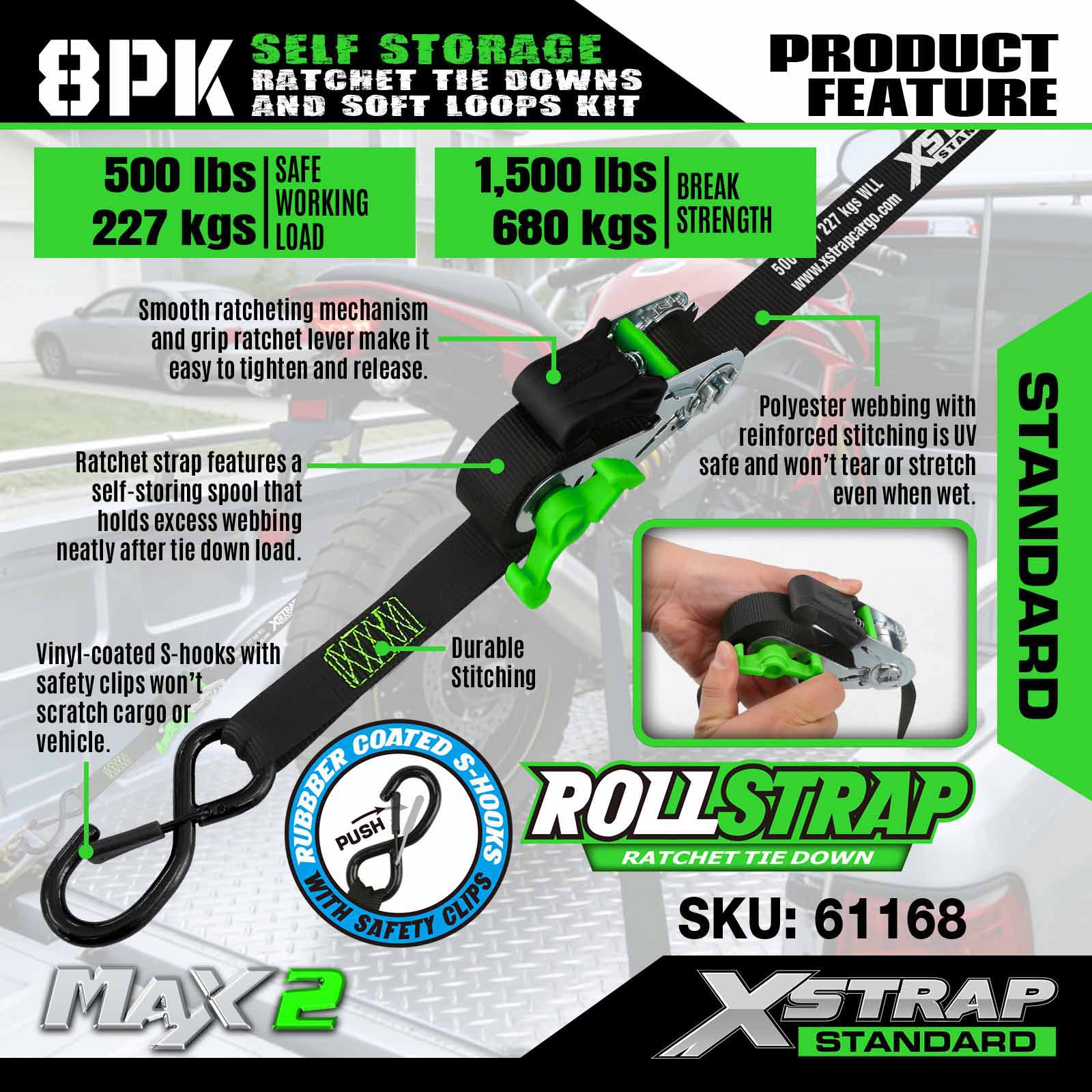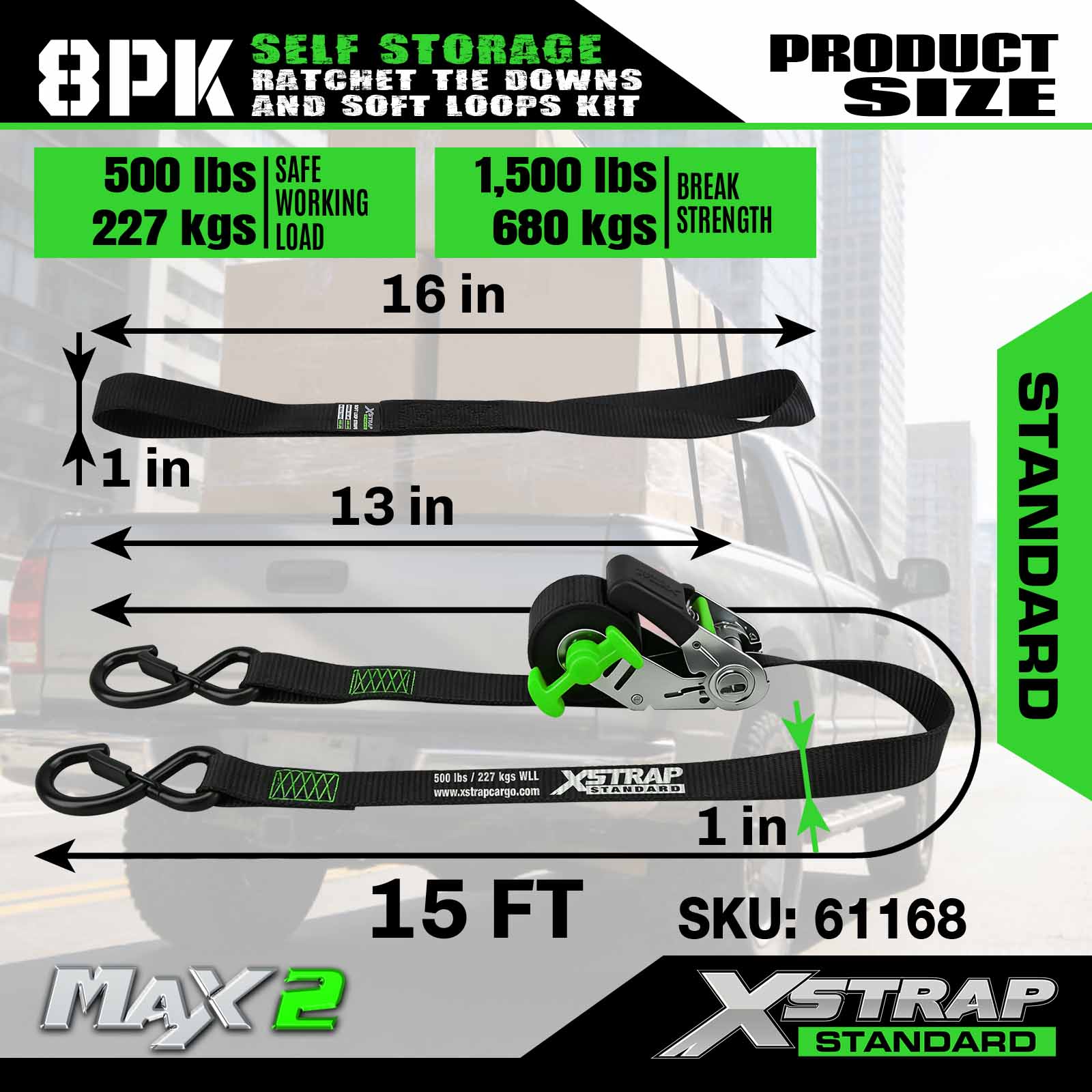 Xstrap 61168 1 นิ้ว 15ft Self Storage Ratchet Tie Downs 500LB SWL