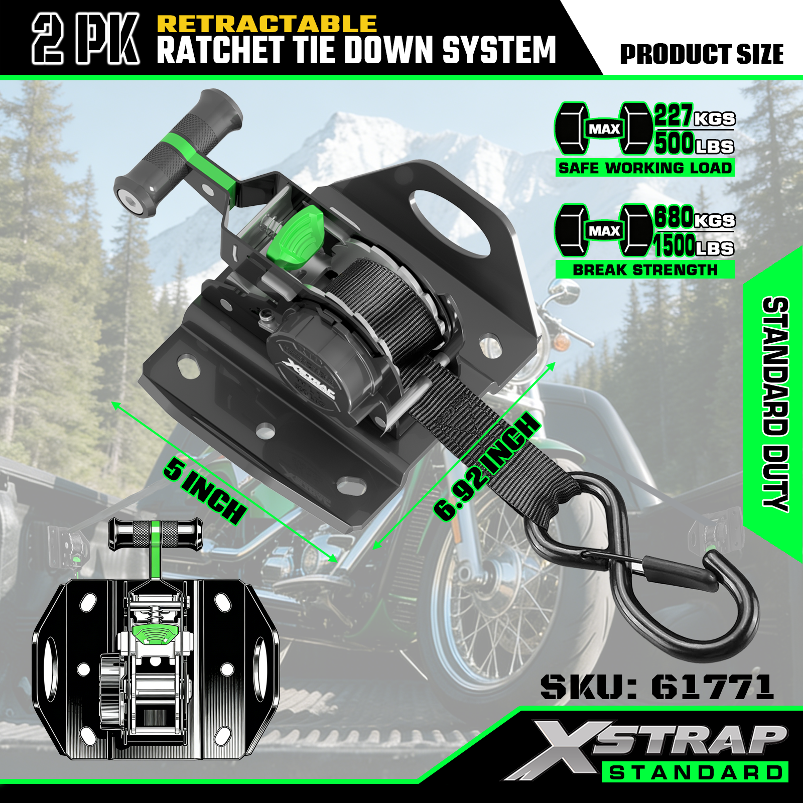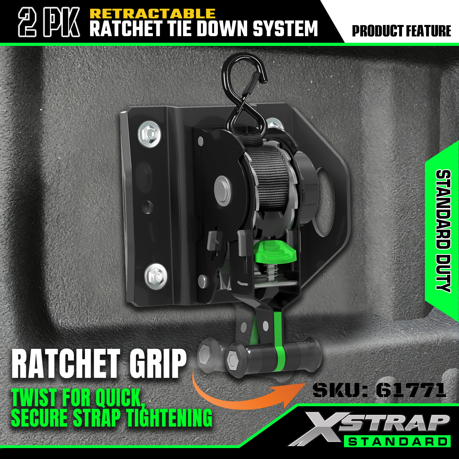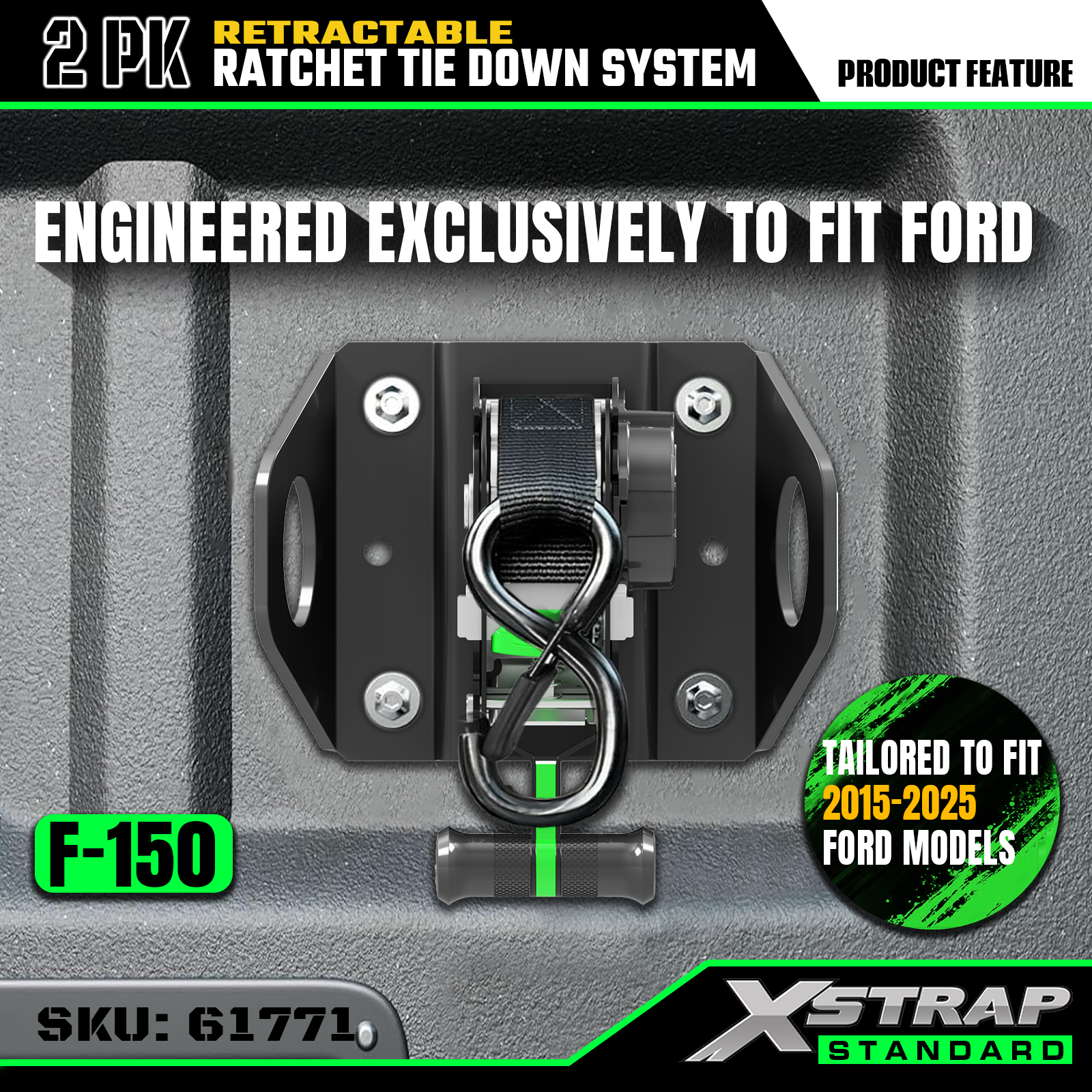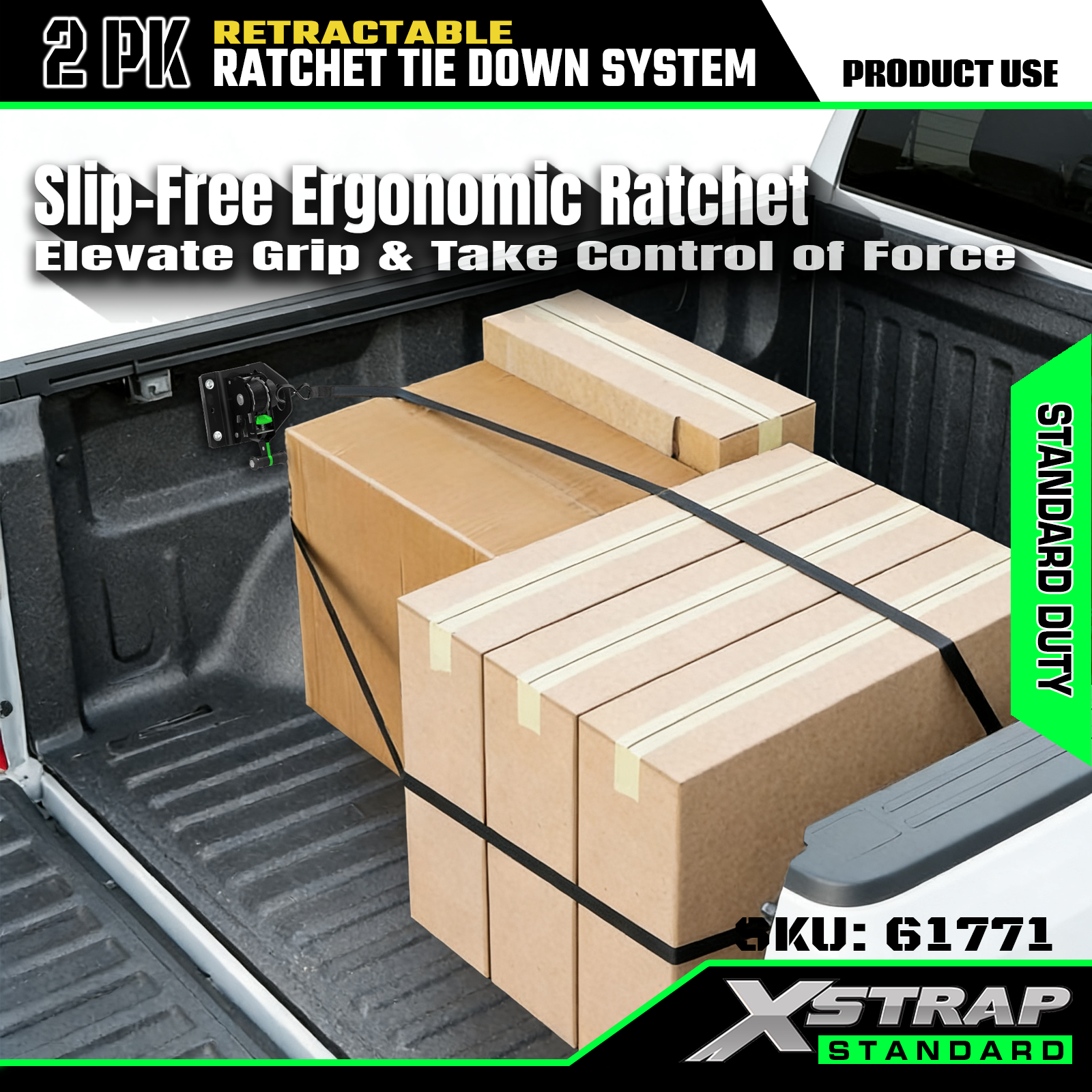 Xstrap 61771 Retractable Ratchet Straps เหมาะสำหรับ F150 รถอุปกรณ์เสริม 500LB SWL