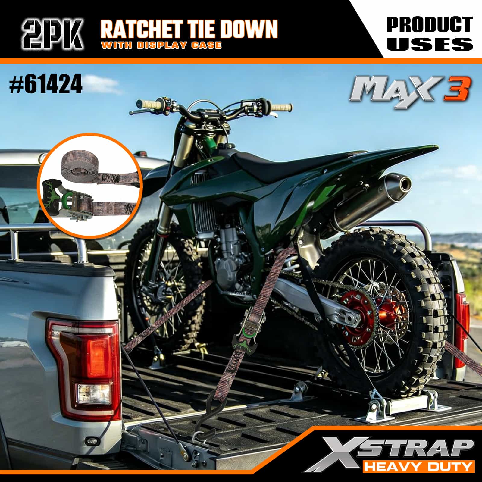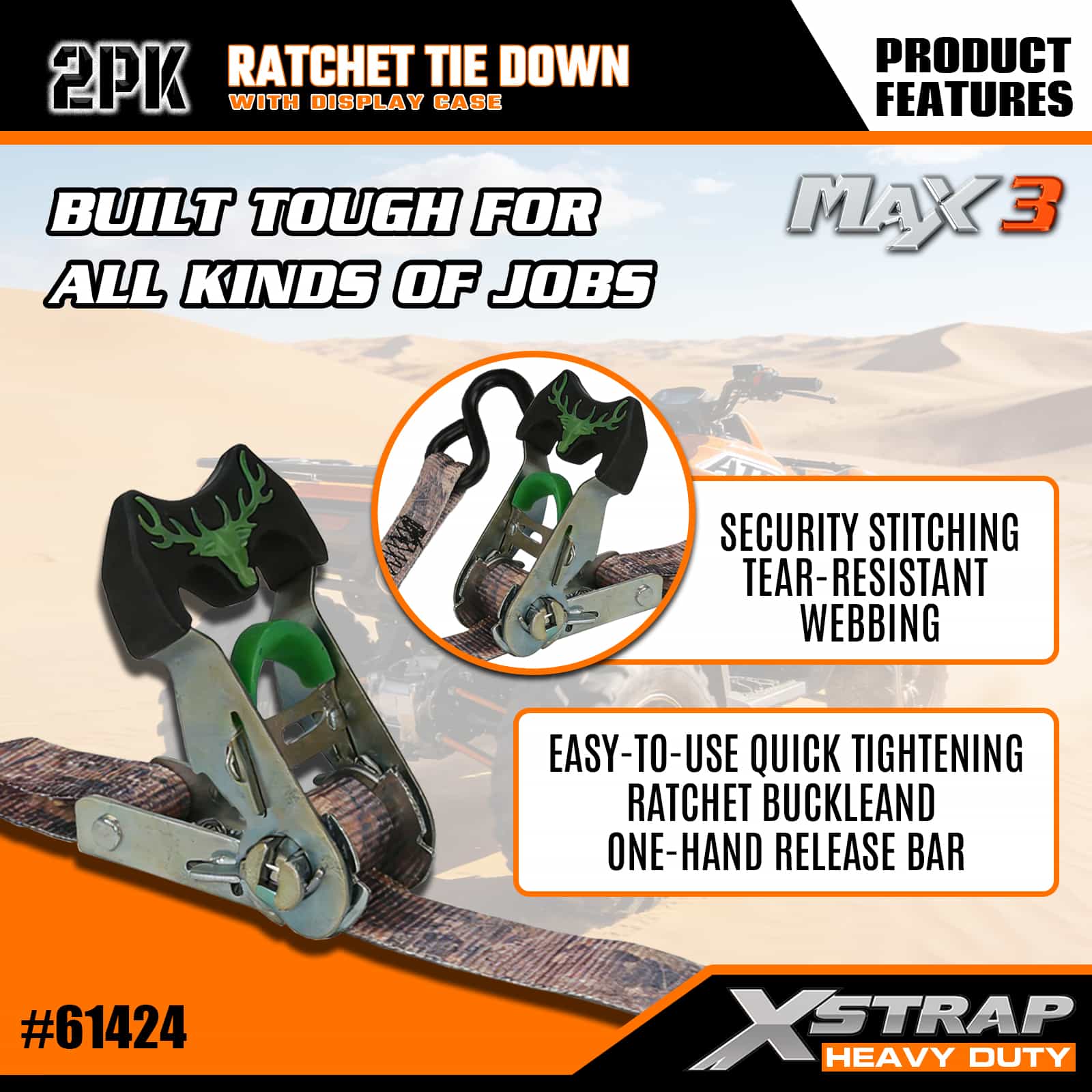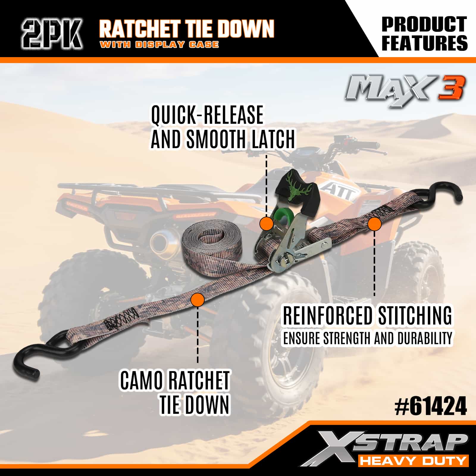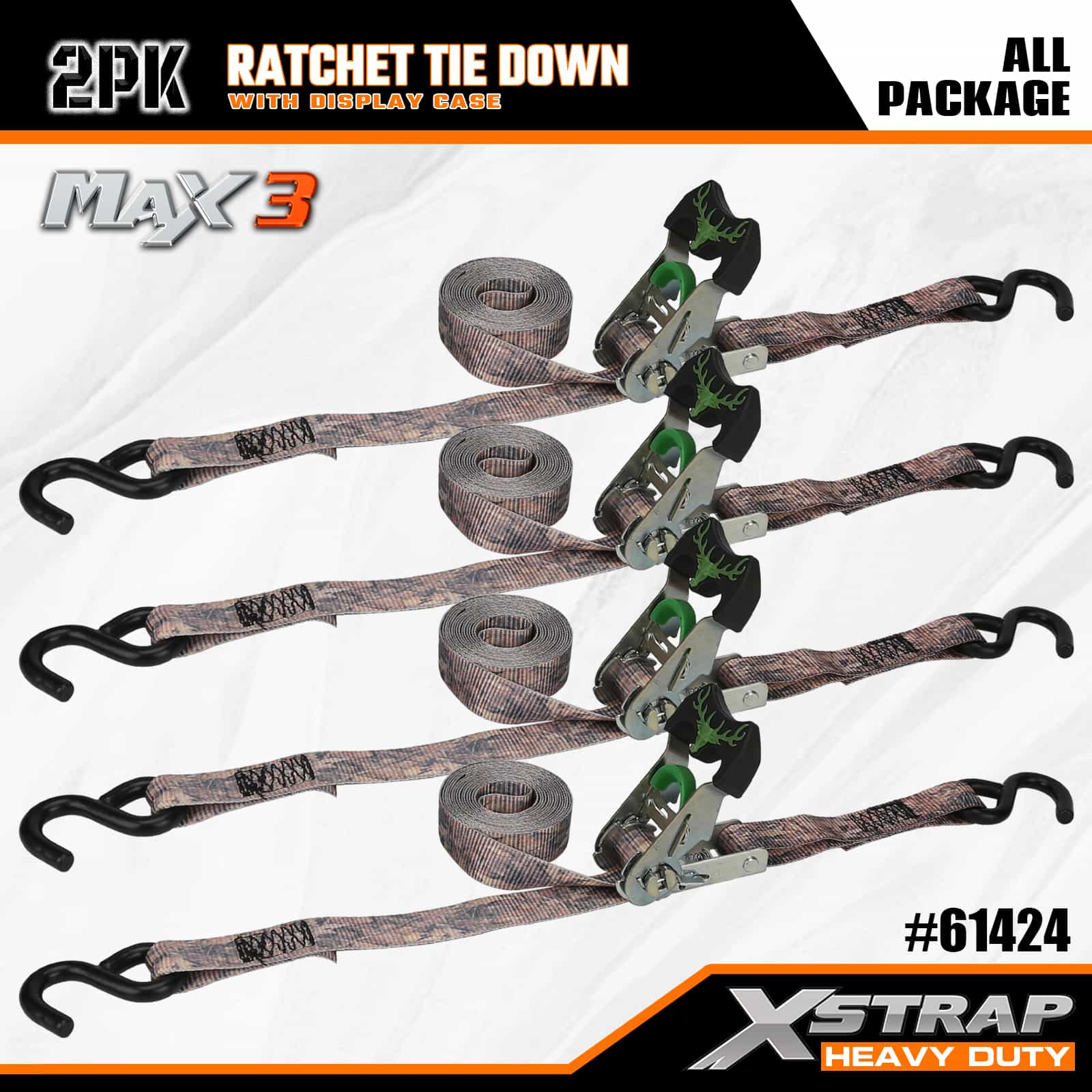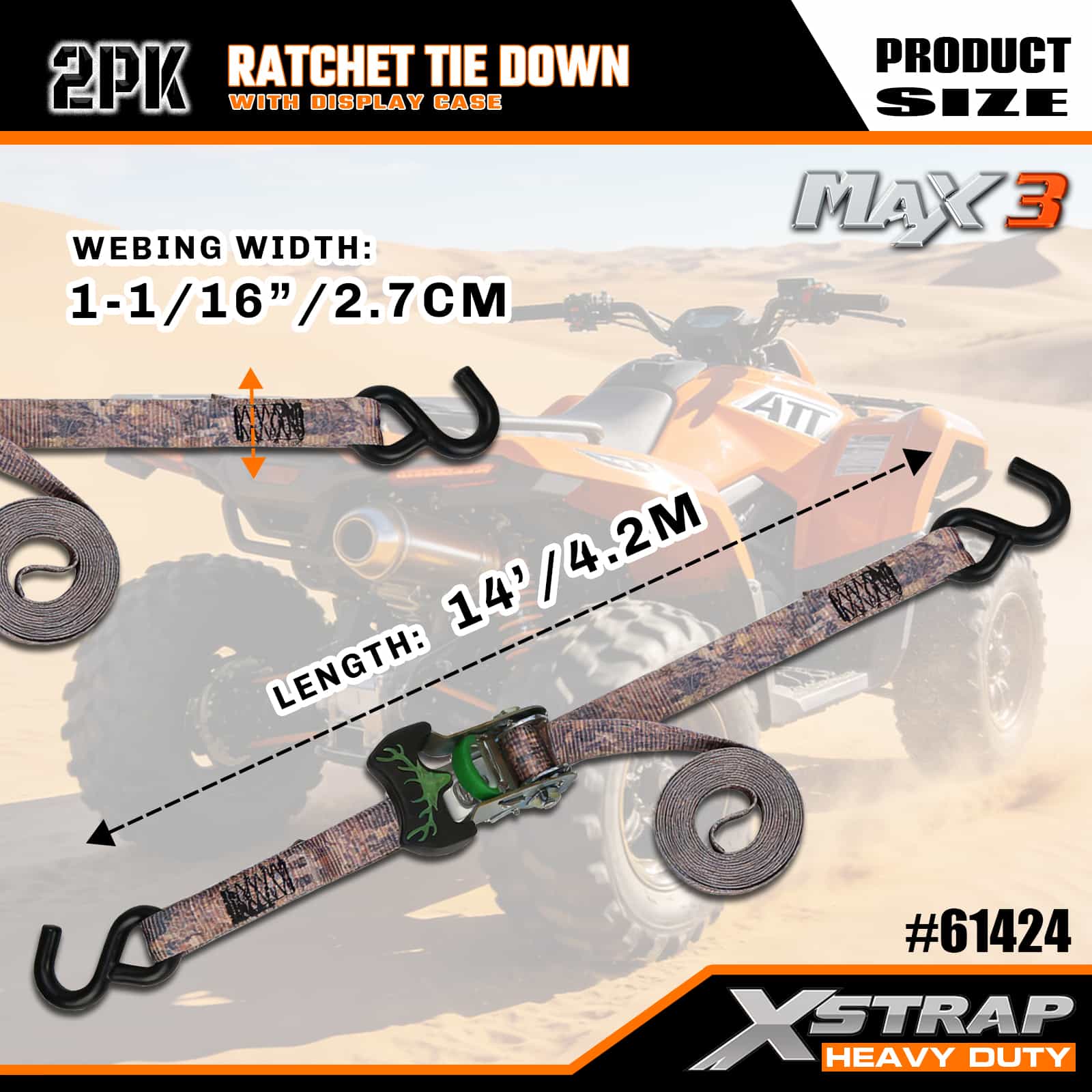 Xstrap 2 Pack Camo Ratchet Tie Down, 1-1/16 ” x 14’ สายรัดโพลีเอสเตอร์แบบดึงสายรัดวงล้อ, สายรัดยึดสายรัดบรรทุกสินค้าความจุ 1,000 ปอนด์พร้อมตะขอ S สำหรับรถกระบะ, SUV, ชั้นวางของบนรถยนต์ รถจักรยานยนต์, เรือตกปลาขนาดเล็ก, เจ็ตสกี, รถเคลื่อนบนหิมะ, รถแทรกเตอร์สนามหญ้า