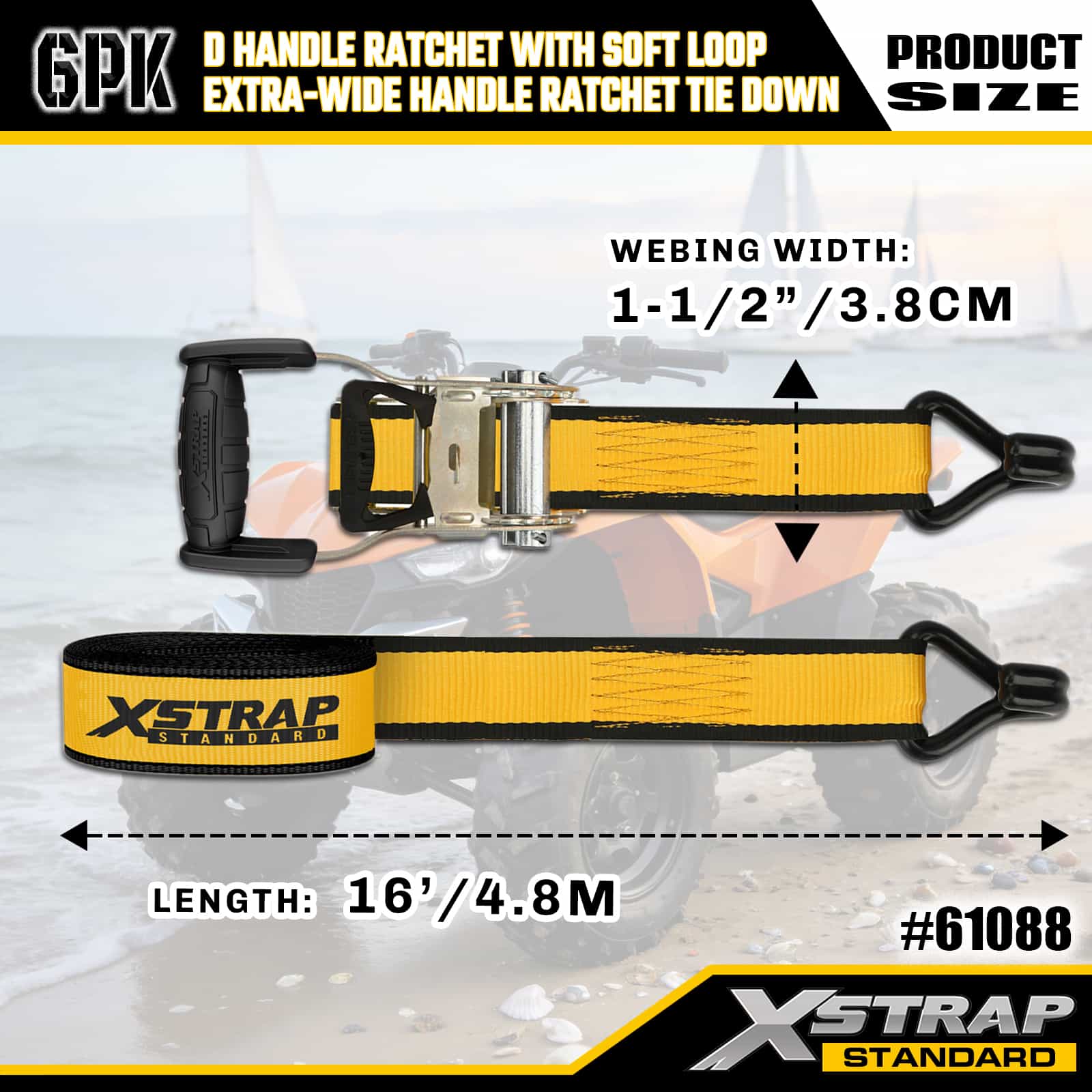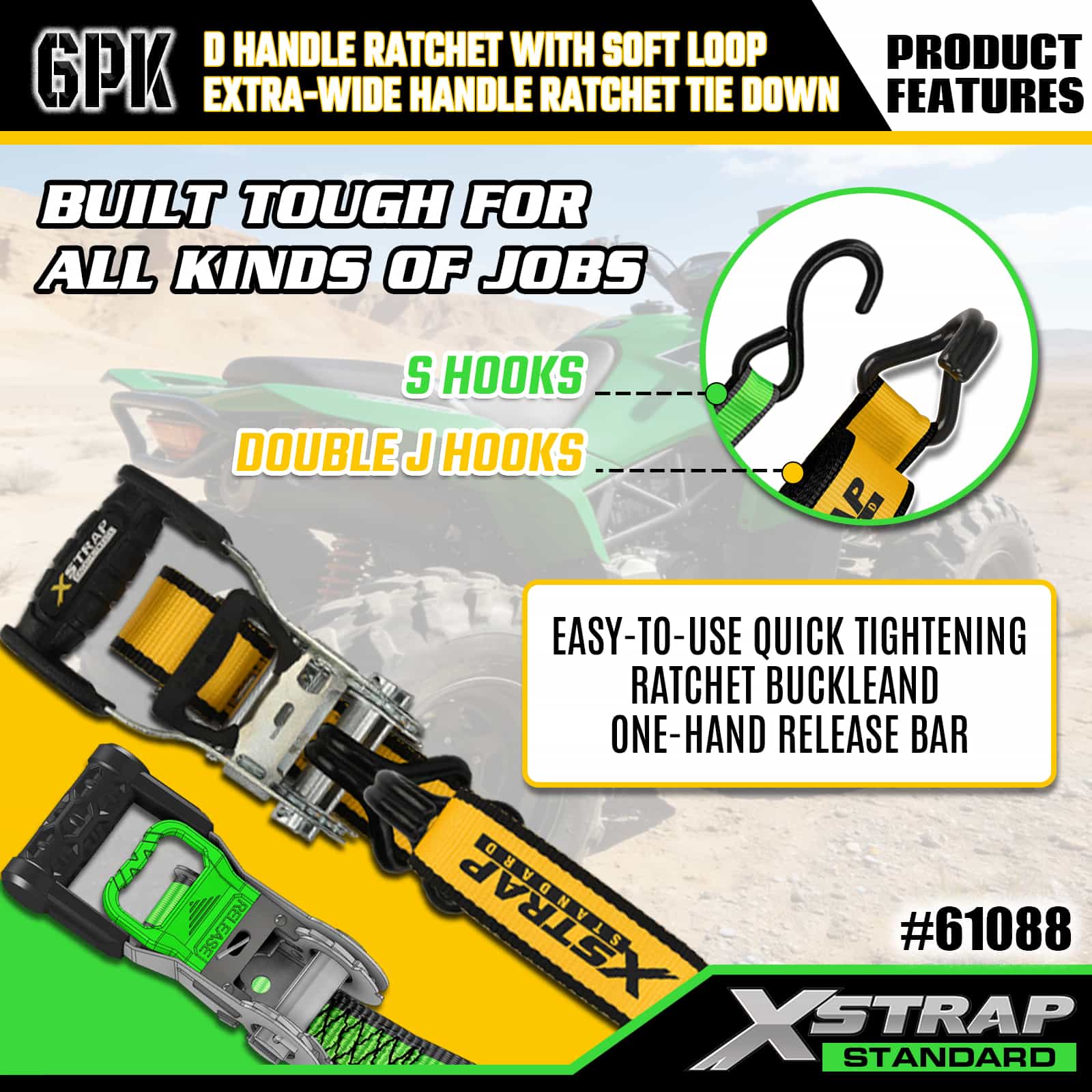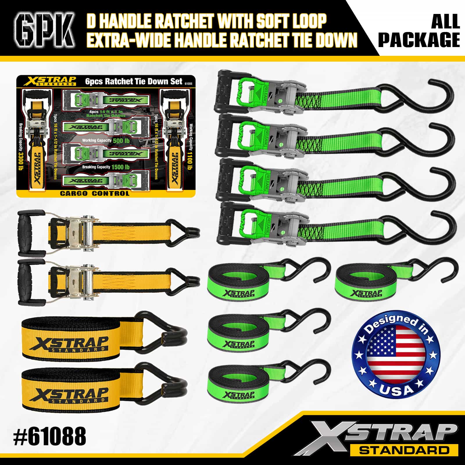 Xstrap 6 แพ็ค สายรัดวงล้ออะลูมิเนียม สายรัดยึดสายรัดโพลีเอสเตอร์ 1” x 14’ และ 1” x 16’ สายรัดแบบดึงวงล้อ น้ำหนัก 500 ปอนด์ และ 1100 ปอนด์ สายรัดยึดสายรัดสินค้าพร้อมตะขอ S และตะขอ J คู่สำหรับการควบคุมสินค้า รถกระบะ รถ SUV ชั้นวางของบนรถ รถจักรยานยนต์