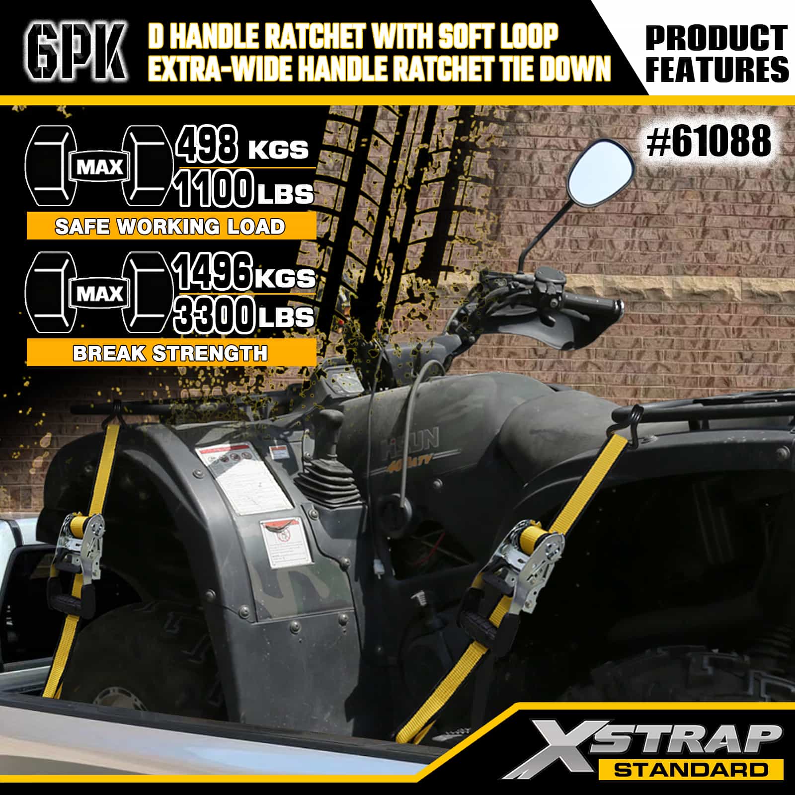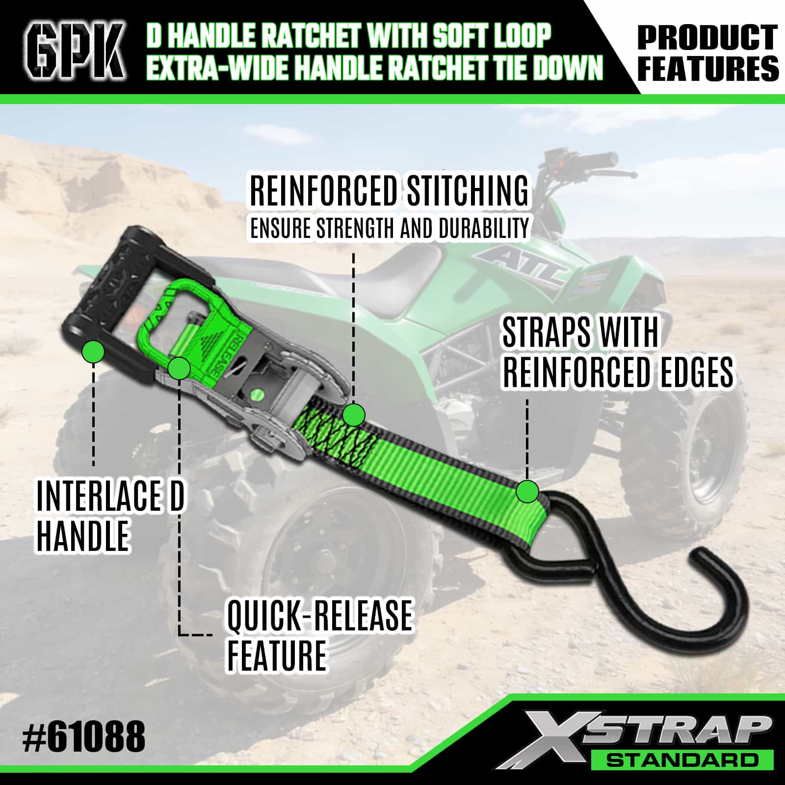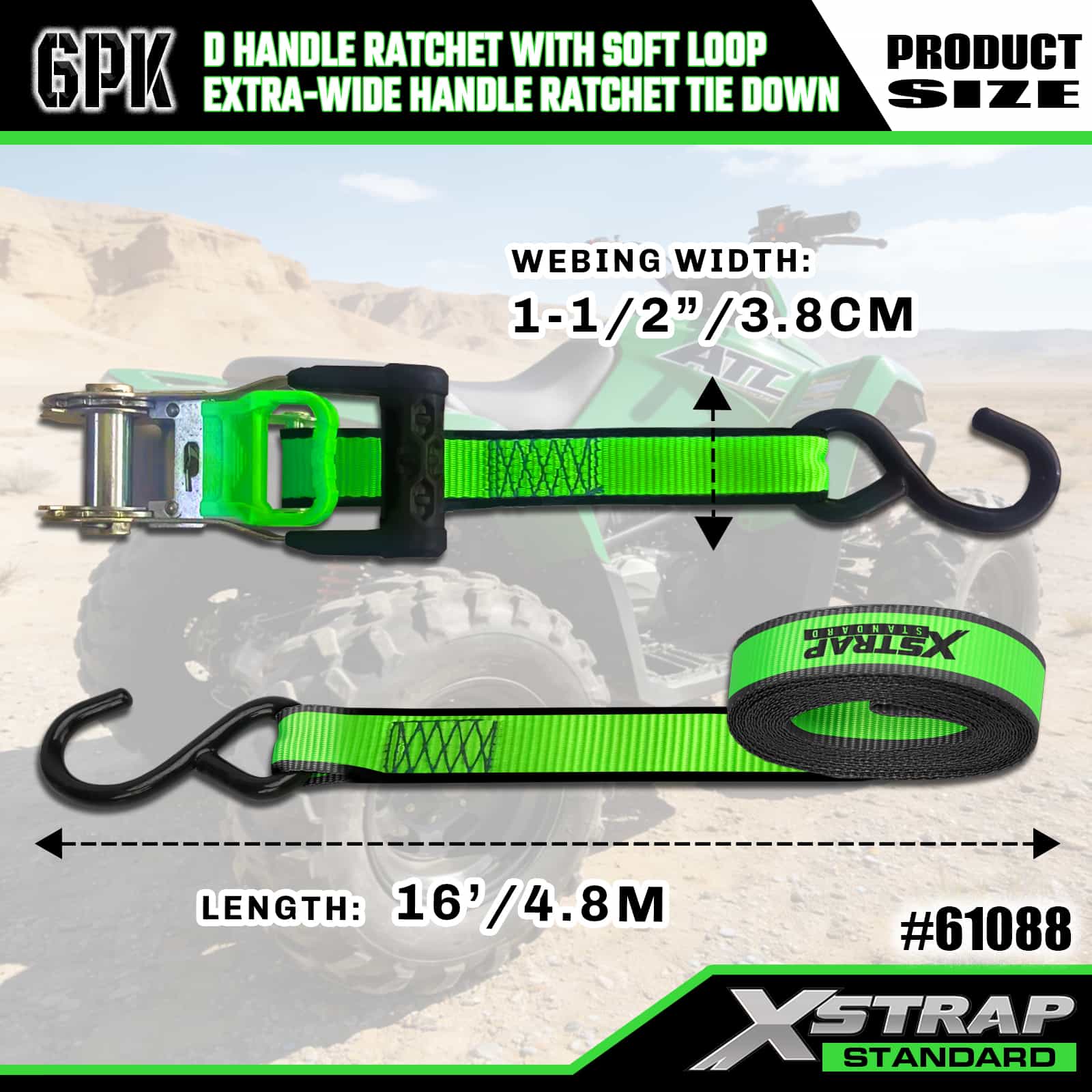 Xstrap 6 แพ็ค สายรัดวงล้ออะลูมิเนียม สายรัดยึดสายรัดโพลีเอสเตอร์ 1” x 14’ และ 1” x 16’ สายรัดแบบดึงวงล้อ น้ำหนัก 500 ปอนด์ และ 1100 ปอนด์ สายรัดยึดสายรัดสินค้าพร้อมตะขอ S และตะขอ J คู่สำหรับการควบคุมสินค้า รถกระบะ รถ SUV ชั้นวางของบนรถ รถจักรยานยนต์