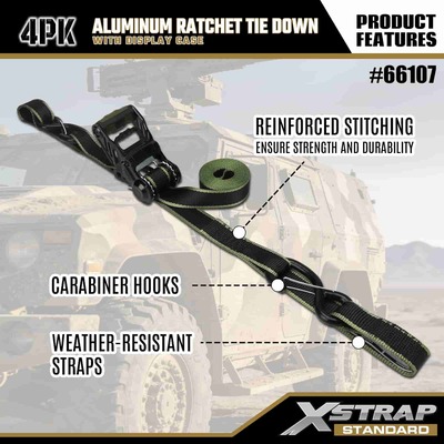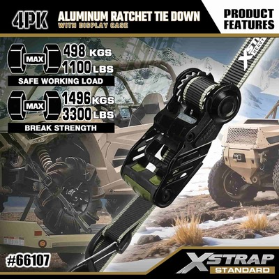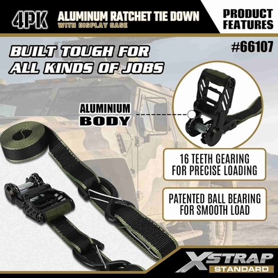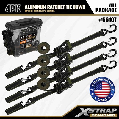 Xstrap สายรัดวงล้ออลูมิเนียมแพ็ค 4 แพ็ค, สายรัดโพลีเอสเตอร์แบบผูกลงขนาด 1-1/4” x 14' พร้อมห่วงแบบนุ่ม สายรัดแบบดึงแบบวงกว้าง สายรัดยึดสายรัดสำหรับบรรทุกสินค้าความจุ 1,000 ปอนด์พร้อมตะขอรูปตัว S เพื่อความปลอดภัยสำหรับการควบคุมสินค้า รถกระบะ รถ SUV ชั้นวางของบนรถยนต์ รถจักรยานยนต์
