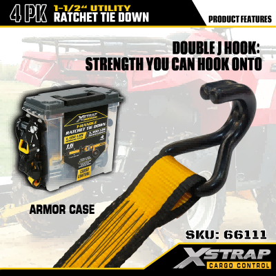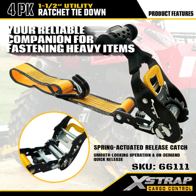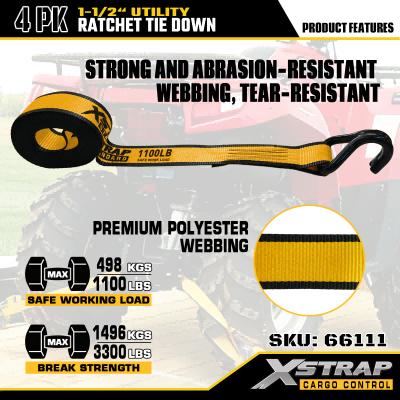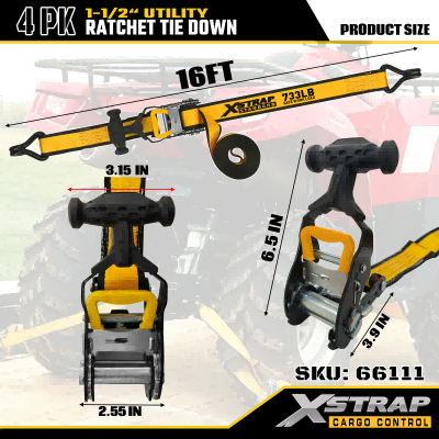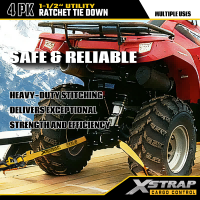 Xstrap 4 Pack T Handle Ratchet Tie Down, 1-1/2” x 16’ สายรัดโพลีเอสเตอร์แบบดึงสายรัดวงล้อ, สายรัดยึดสายรัดบรรทุกสินค้าความจุ 1100lbs พร้อมตะขอ J คู่สำหรับควบคุมสินค้า รถกระบะ, SUV, ชั้นวางของในรถยนต์ รถจักรยานยนต์,