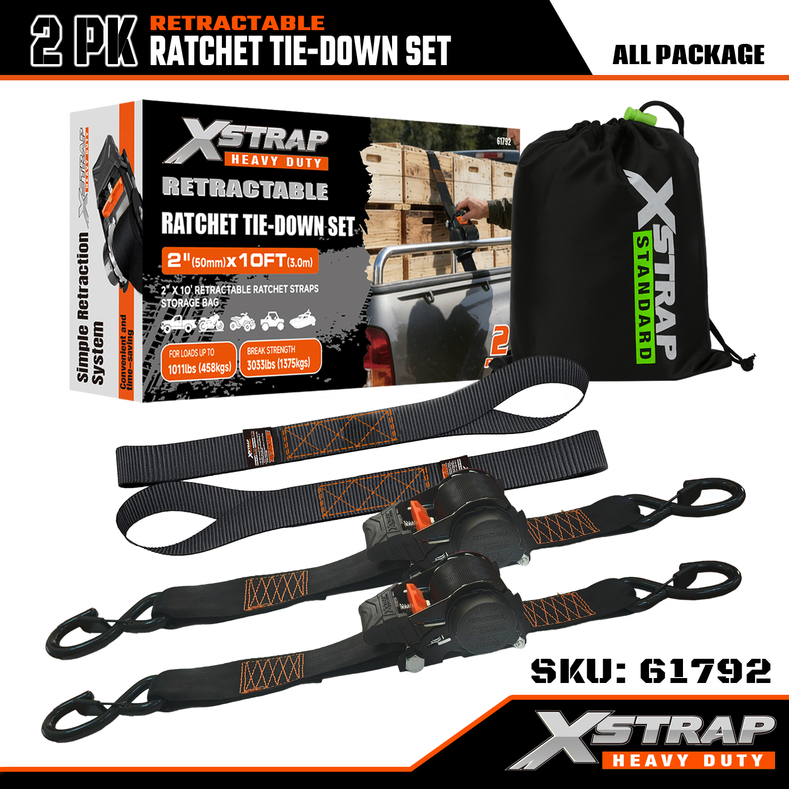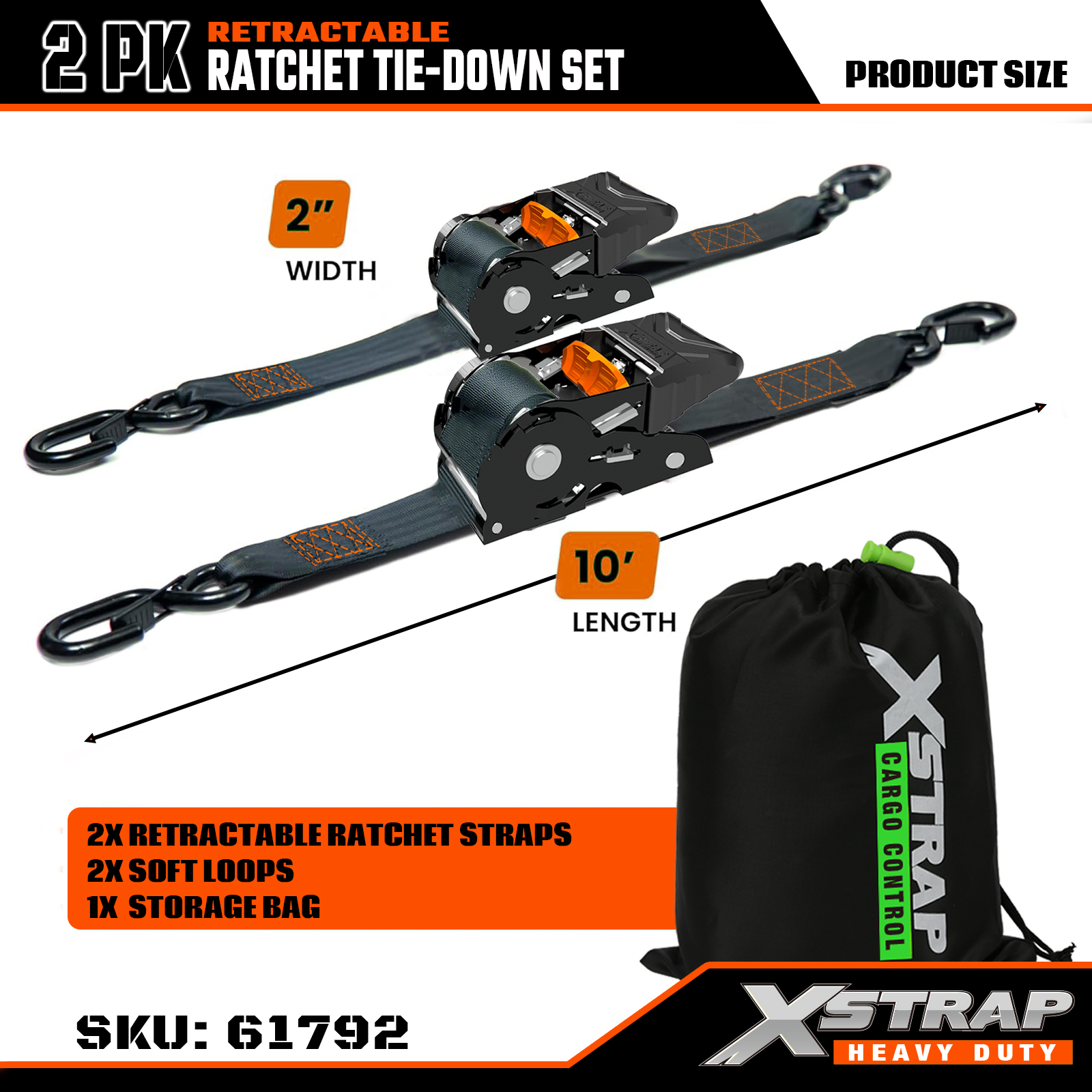 ชุดผูกวงล้อแบบยืดหดได้ Xstrap 2PK พร้อมตะขอรูปตัว S นิรภัย สายรัดโพลีเอสเตอร์แบบมีสายรัดขนาด 2” x 10 ฟุต สายรัดยึดสายรัดยึดสินค้าแบบมีความจุ 1,011 ปอนด์พร้อมตะขอรูปตัว S เพื่อความปลอดภัยสำหรับรถบรรทุก รถพ่วงบรรทุกสินค้า รถจักรยานยนต์